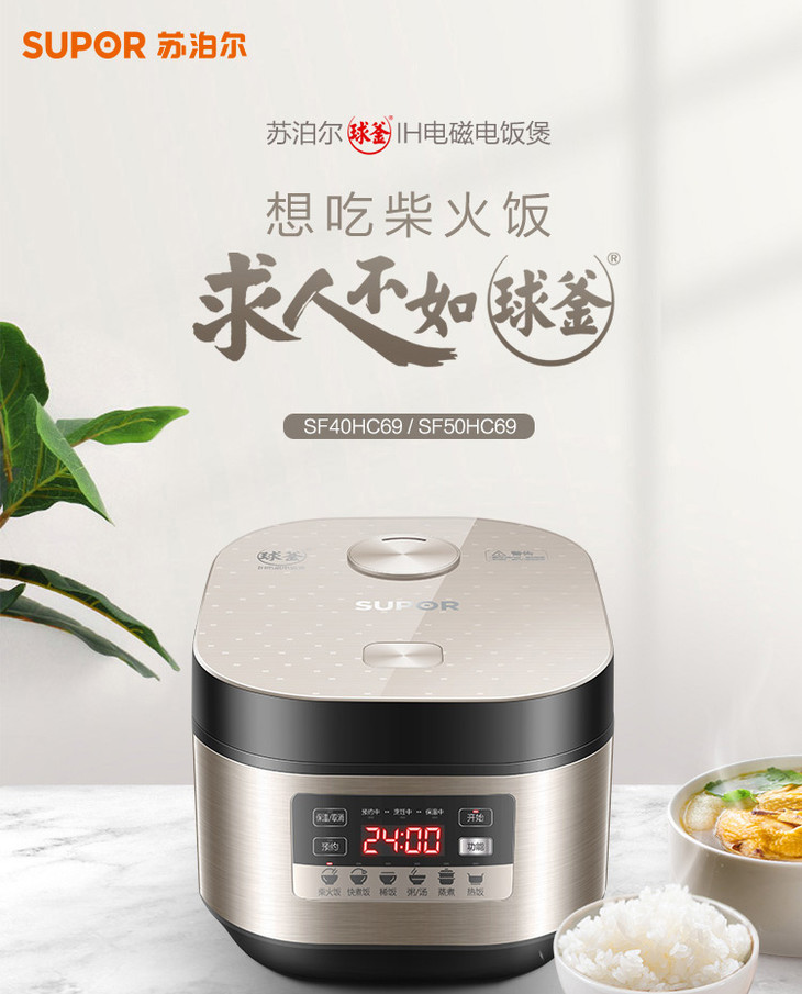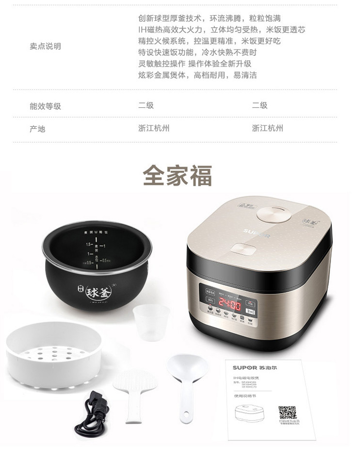 苏泊尔(509472)(SUPOR)SF40HC69电饭煲4L家用3-6人多功能IH电磁加热智能预约定时电饭锅精铁球釜内胆柴火饭