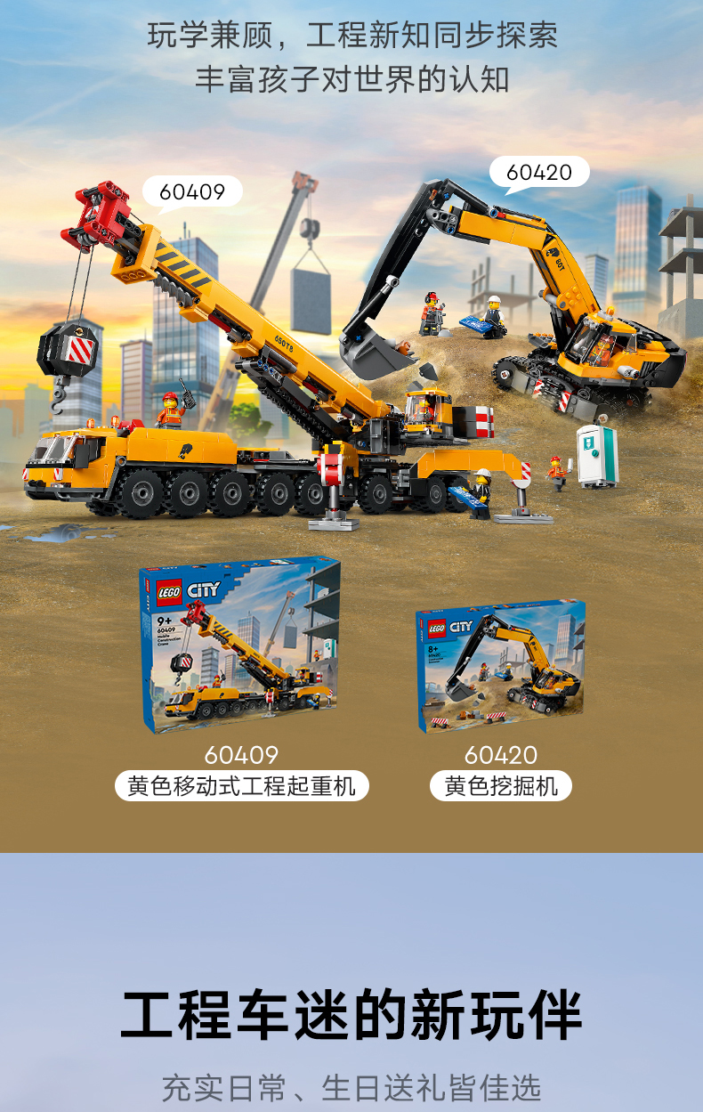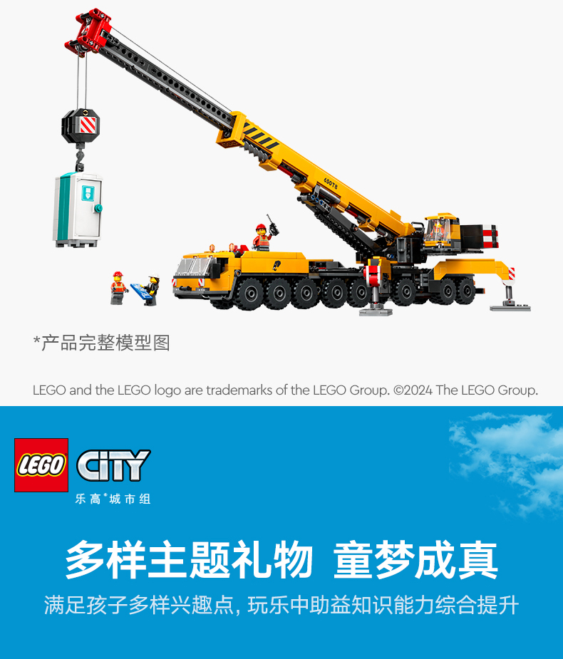 乐高LEGO 黄色移动式工程起重机LEGC60409