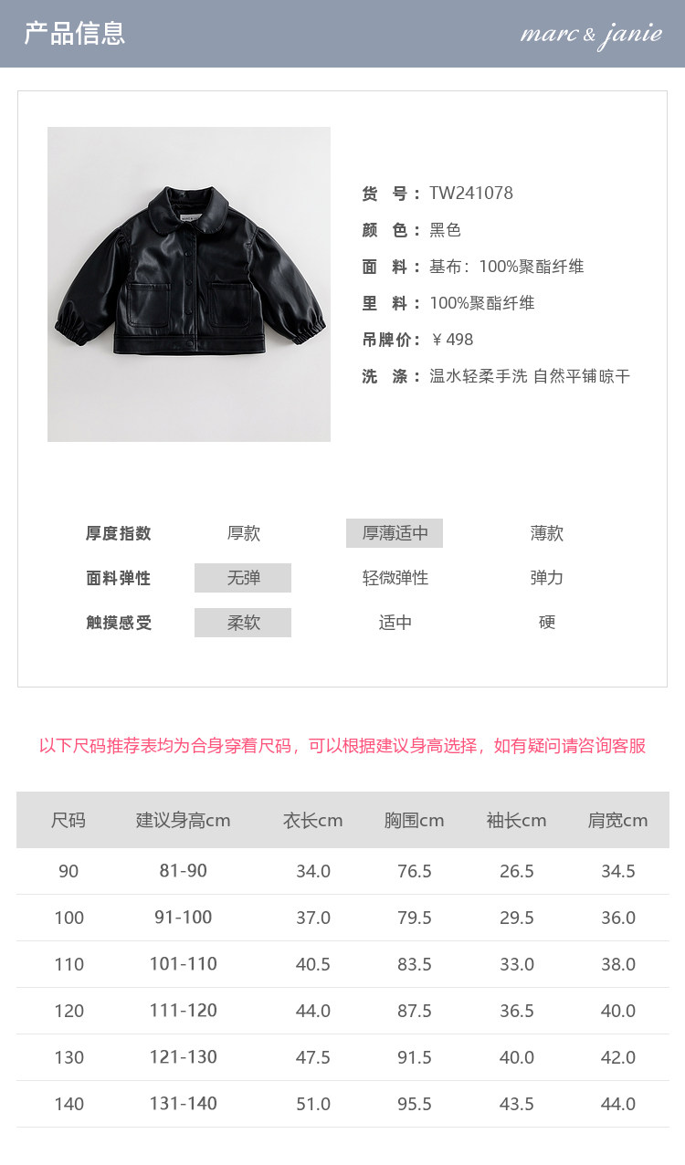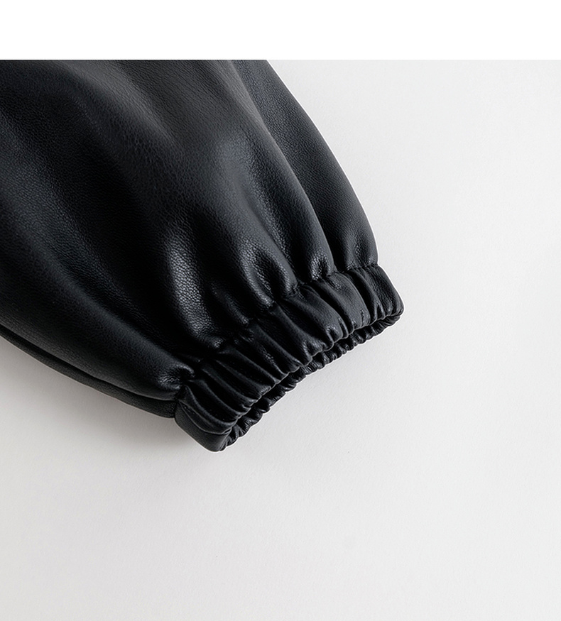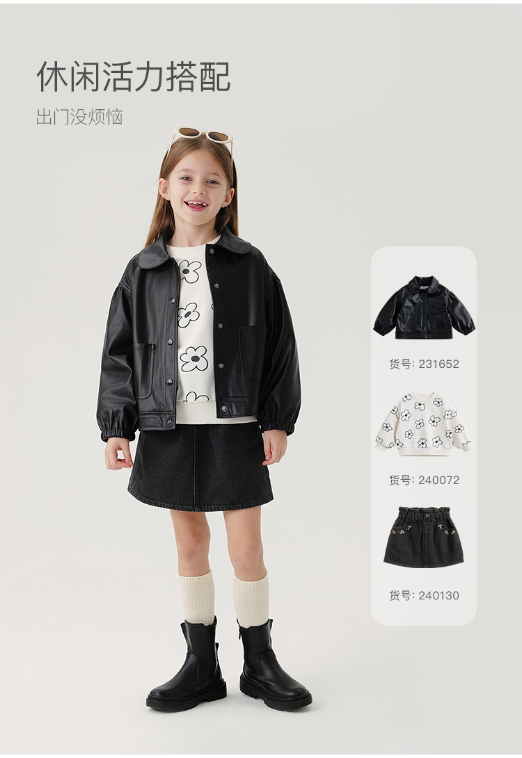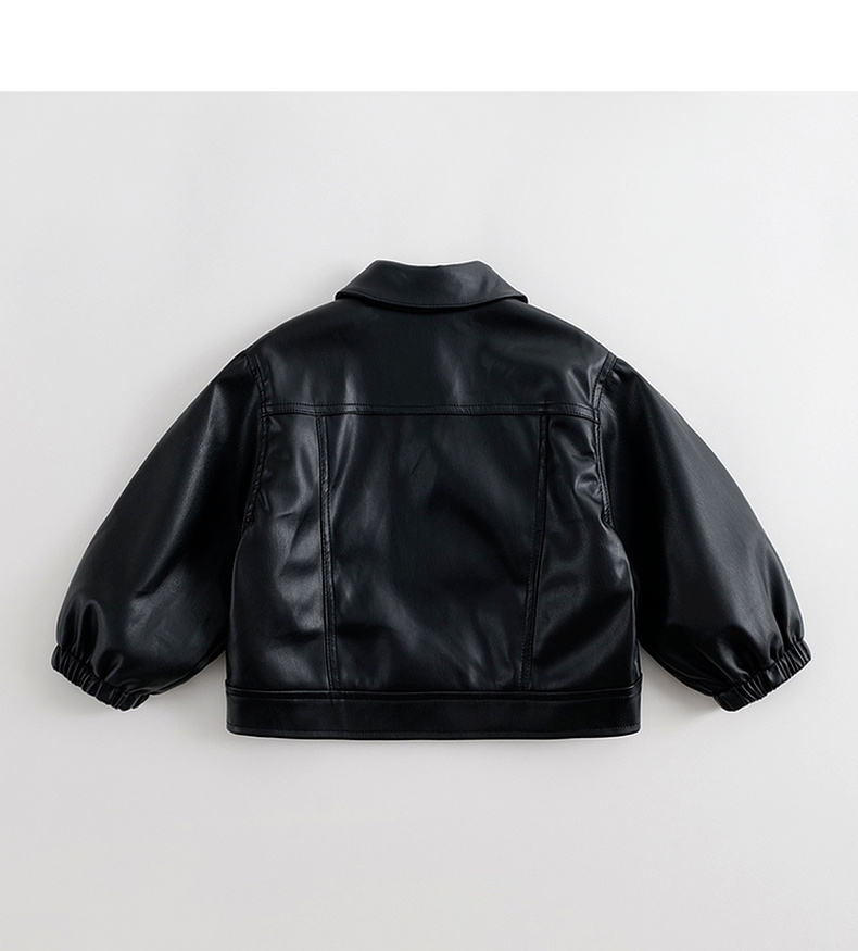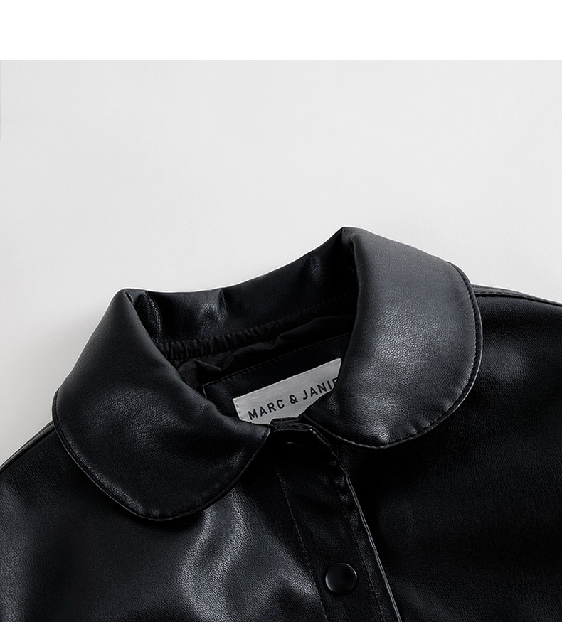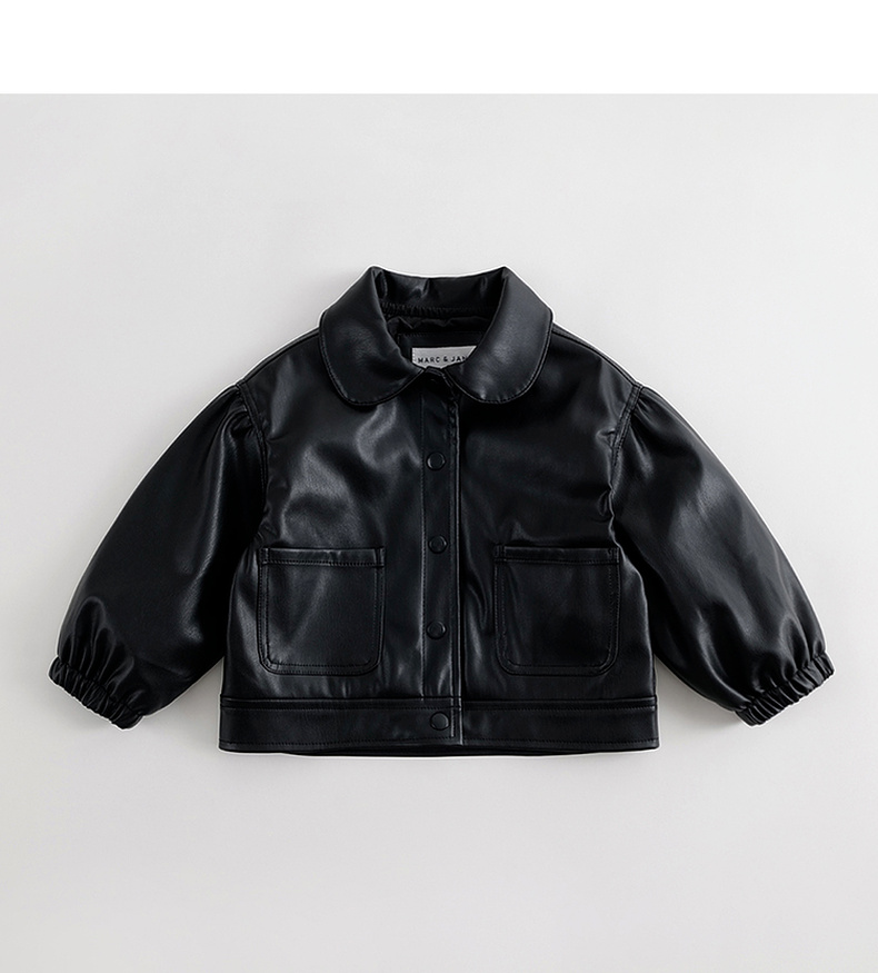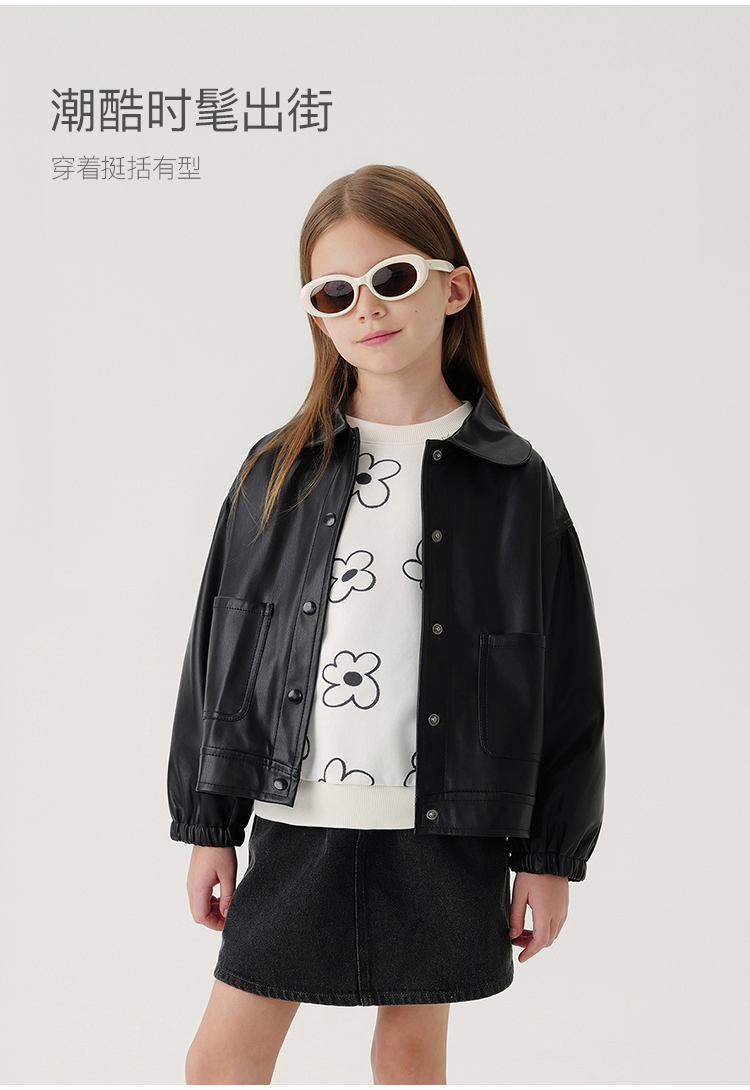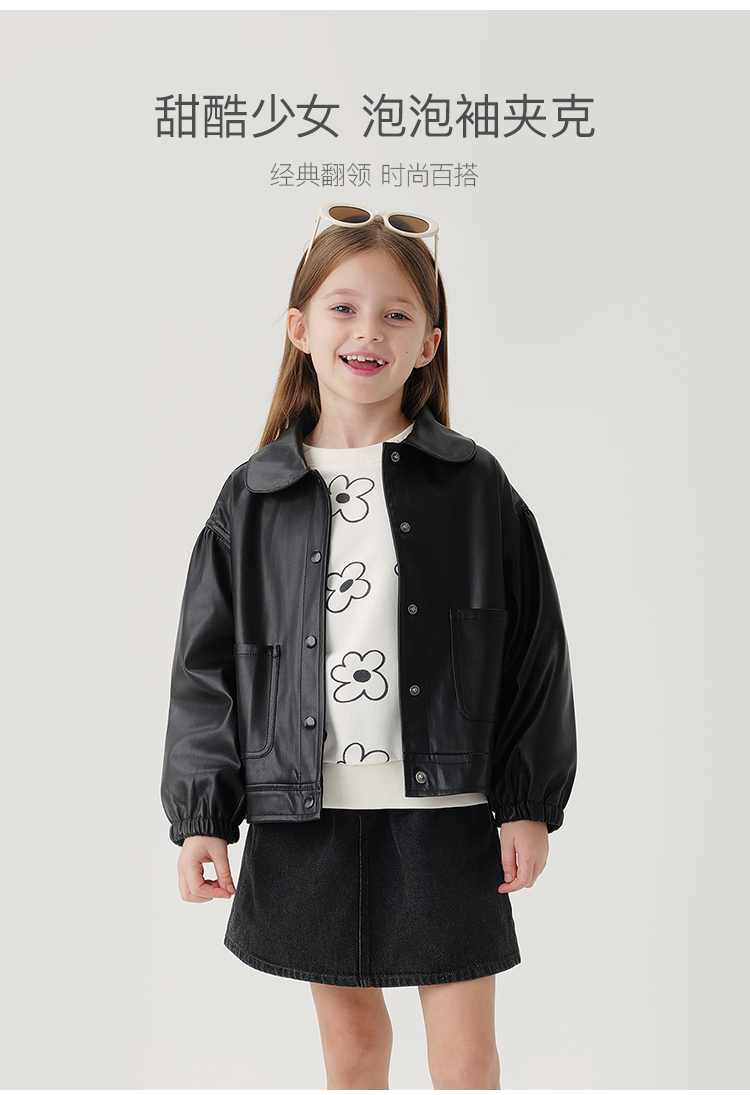 马克珍妮女童时尚泡泡袖皮衣夹克 儿童外套春秋款上衣241078
