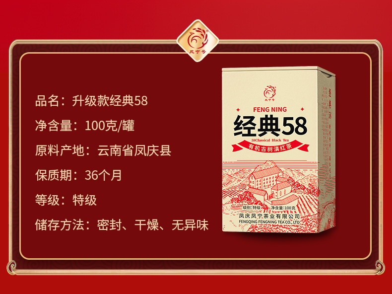 凤宁号【有机古树经典58】有机古树滇红茶 100克/盒