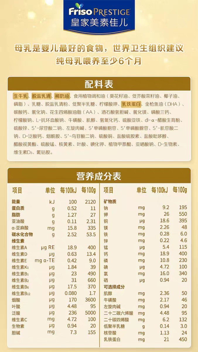 皇家美素力婴儿配方奶粉800g*6罐【0-6个月,1段】荷兰原装进口