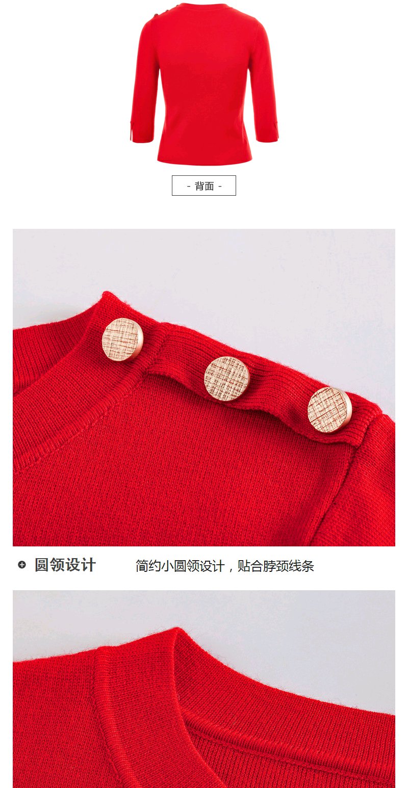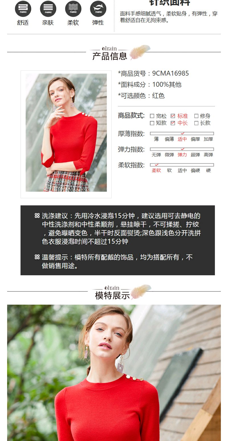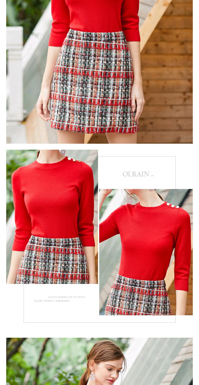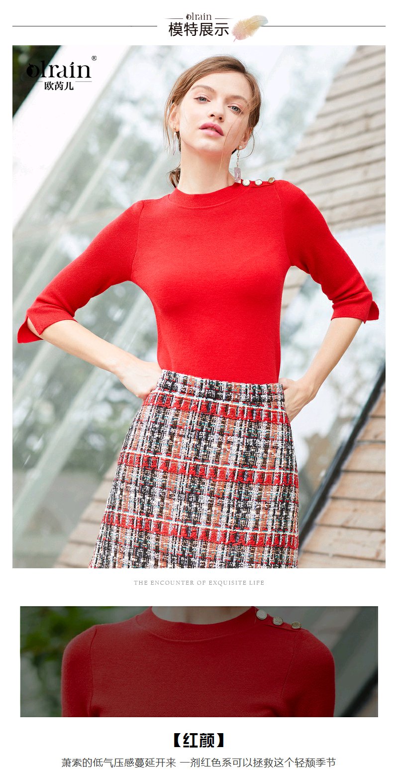 欧芮儿新年红色毛衣女春装女新款五分袖针织衫女显瘦毛衫