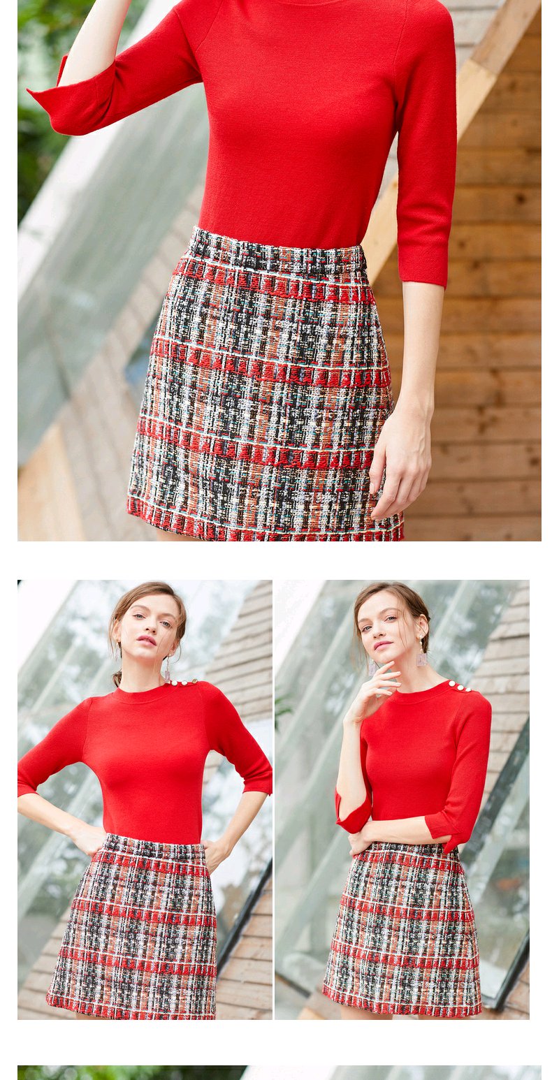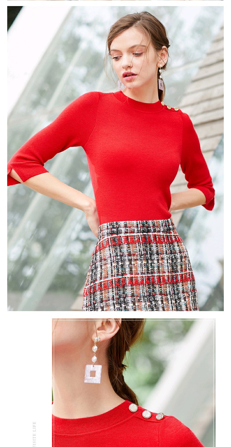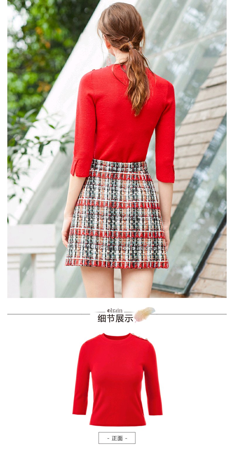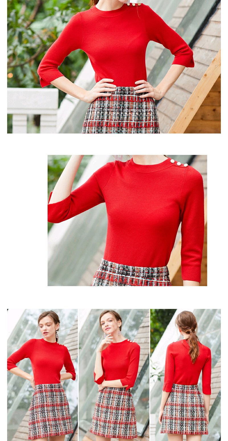 欧芮儿新年红色毛衣女春装女新款五分袖针织衫女显瘦毛衫
