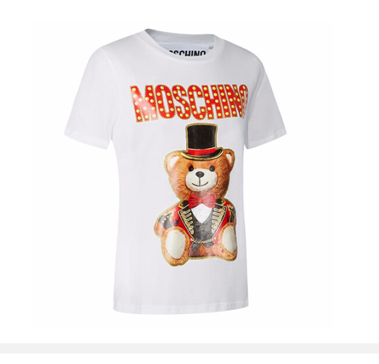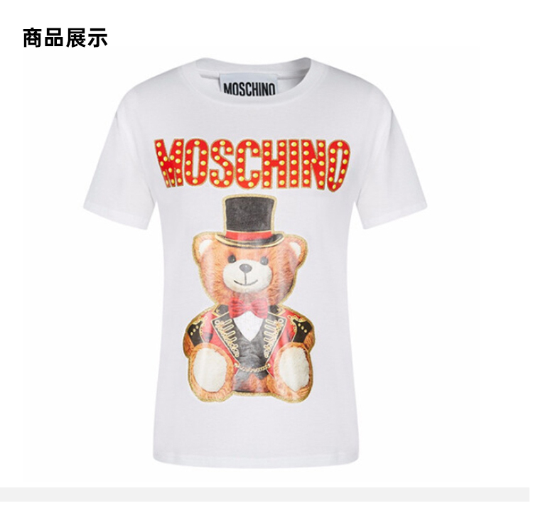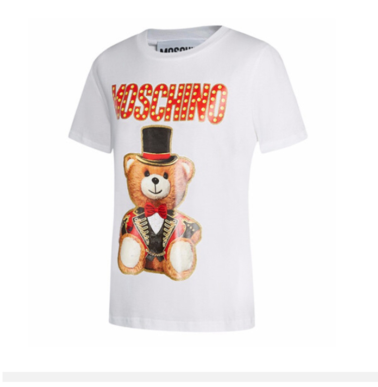 MOSCHINO 莫斯奇诺 圣诞熊 字母图案 女士棉质T恤 白色 0708 0540 3001