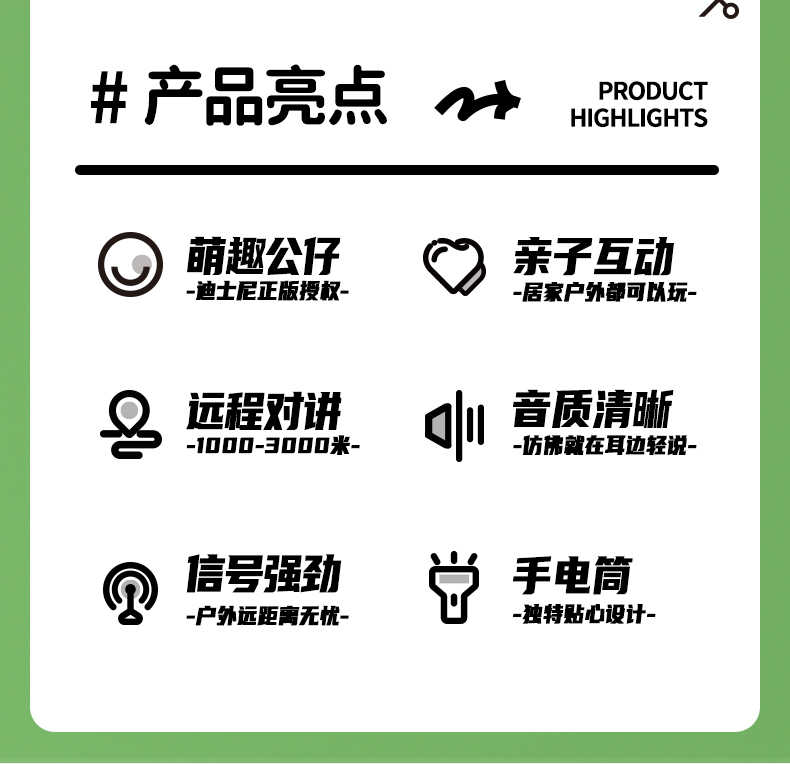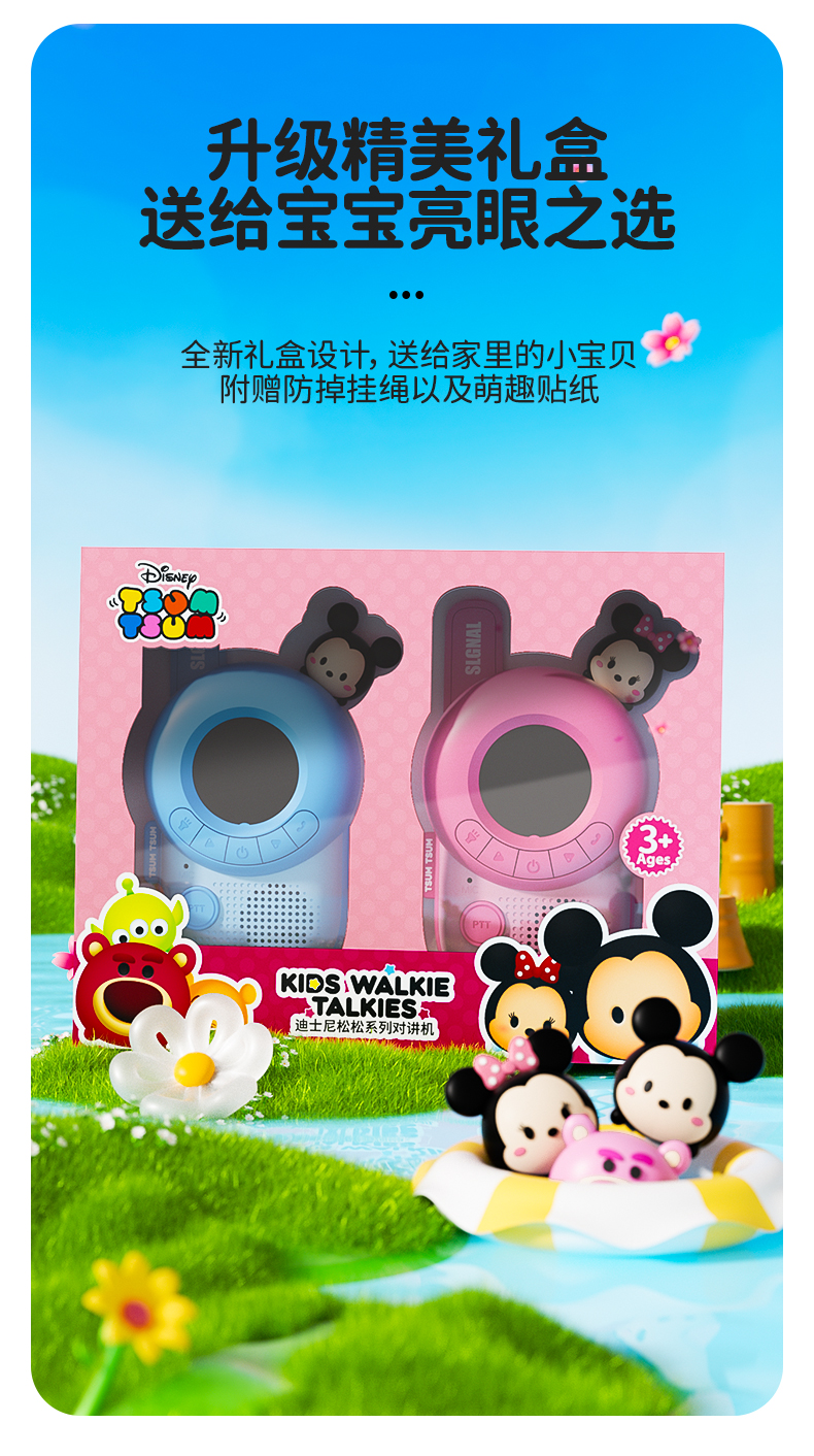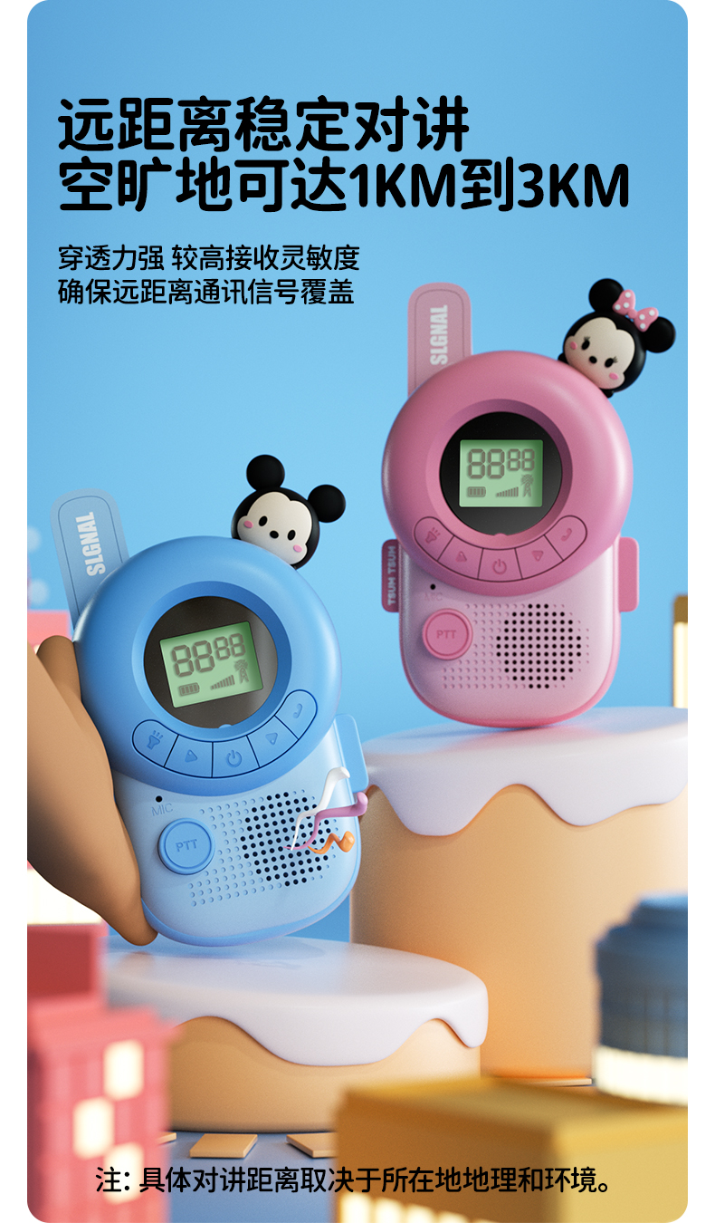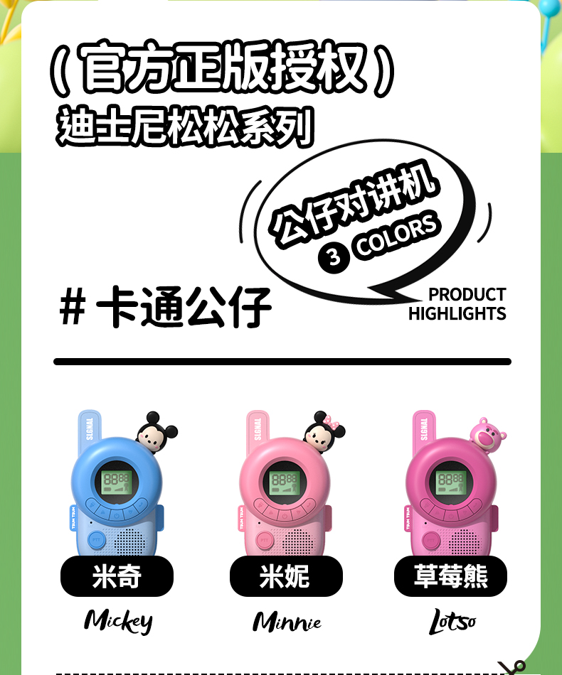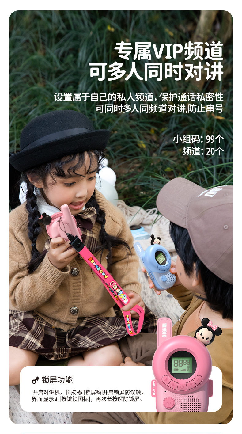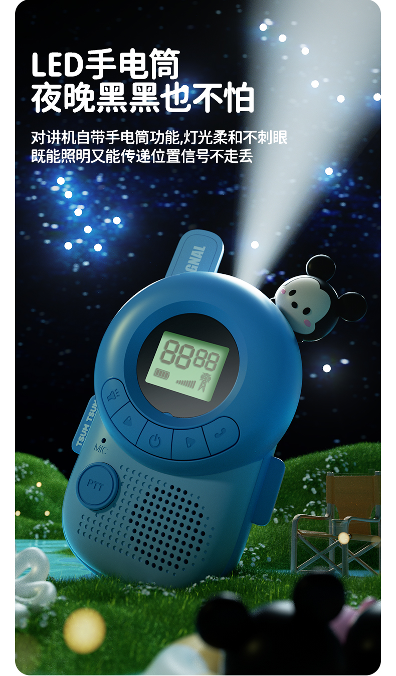 【孩子社交工具】迪士尼正版儿童对讲机 3km远距离也能稳定对讲 LED手电筒 夜晚黑黑也不怕 米奇米妮一对装