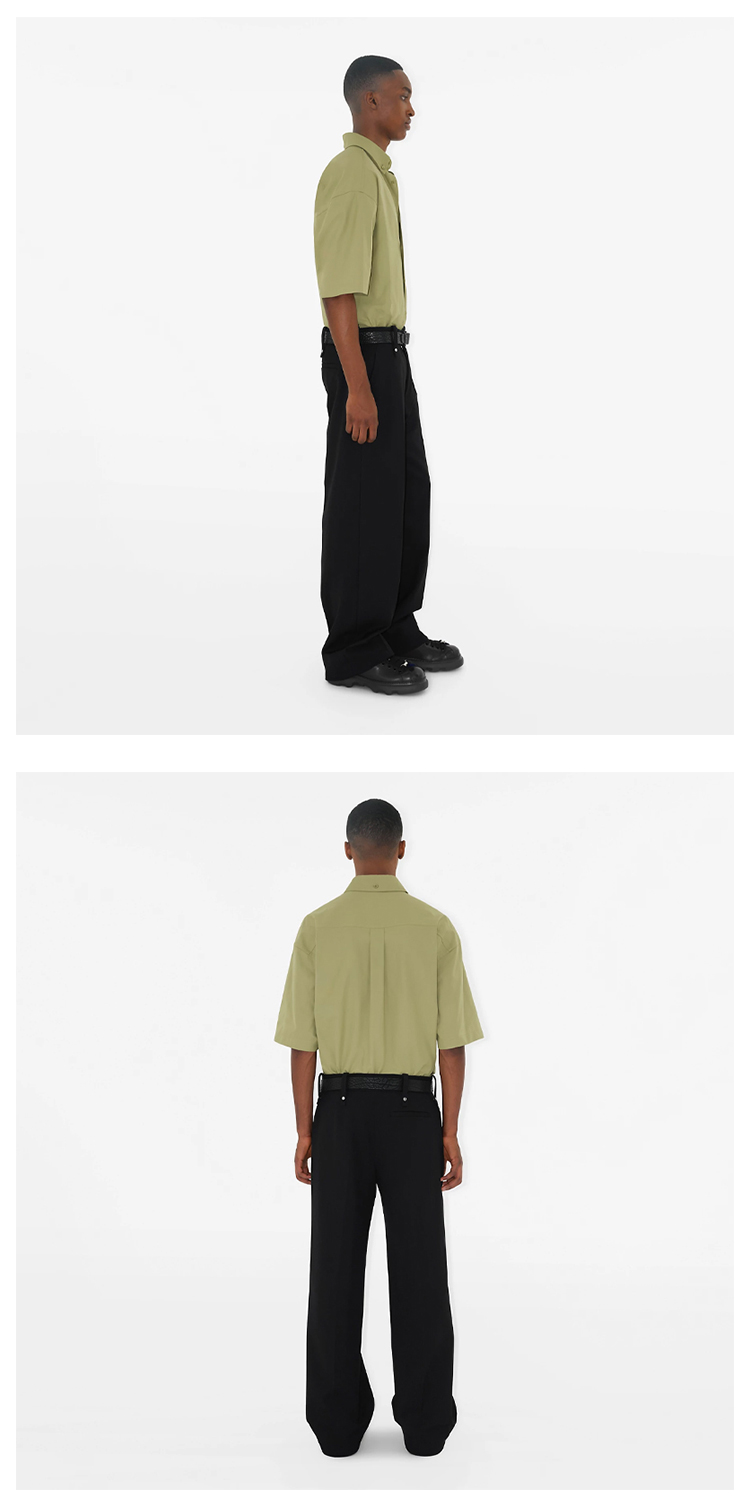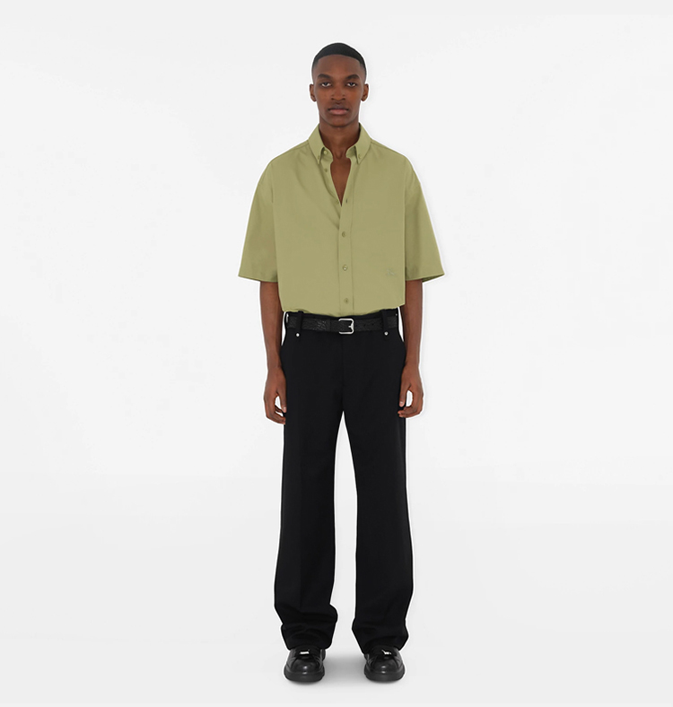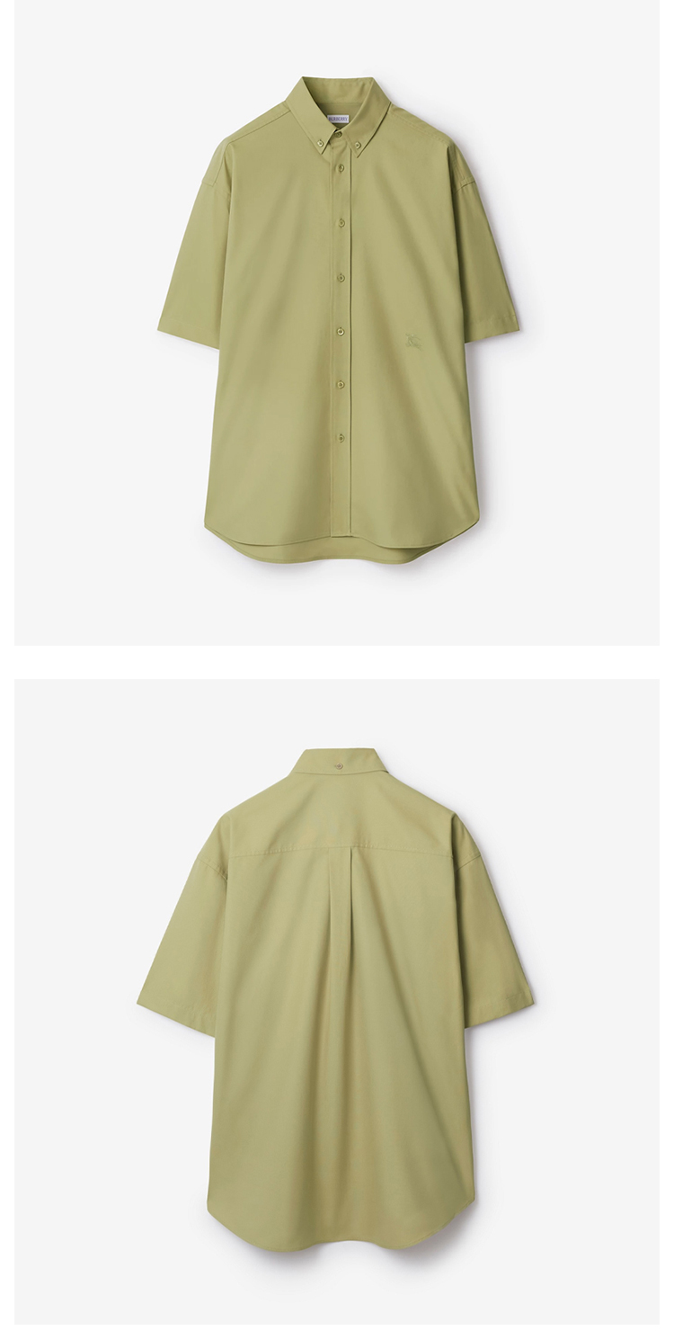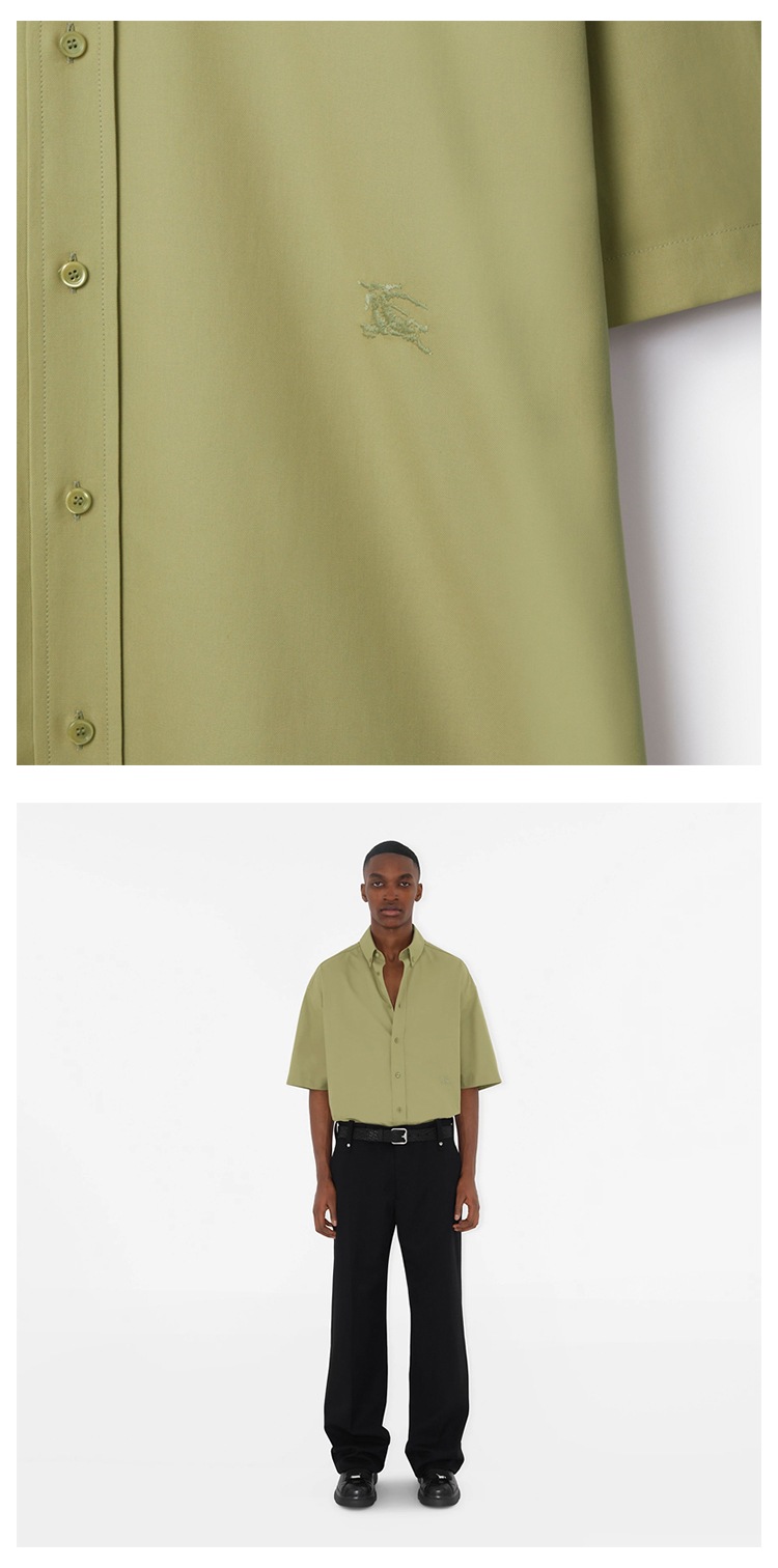 BURBERRY 巴宝莉 男士马术骑士刺绣徽标棉质牛津短袖衬衫 绿色 8081978 B7311