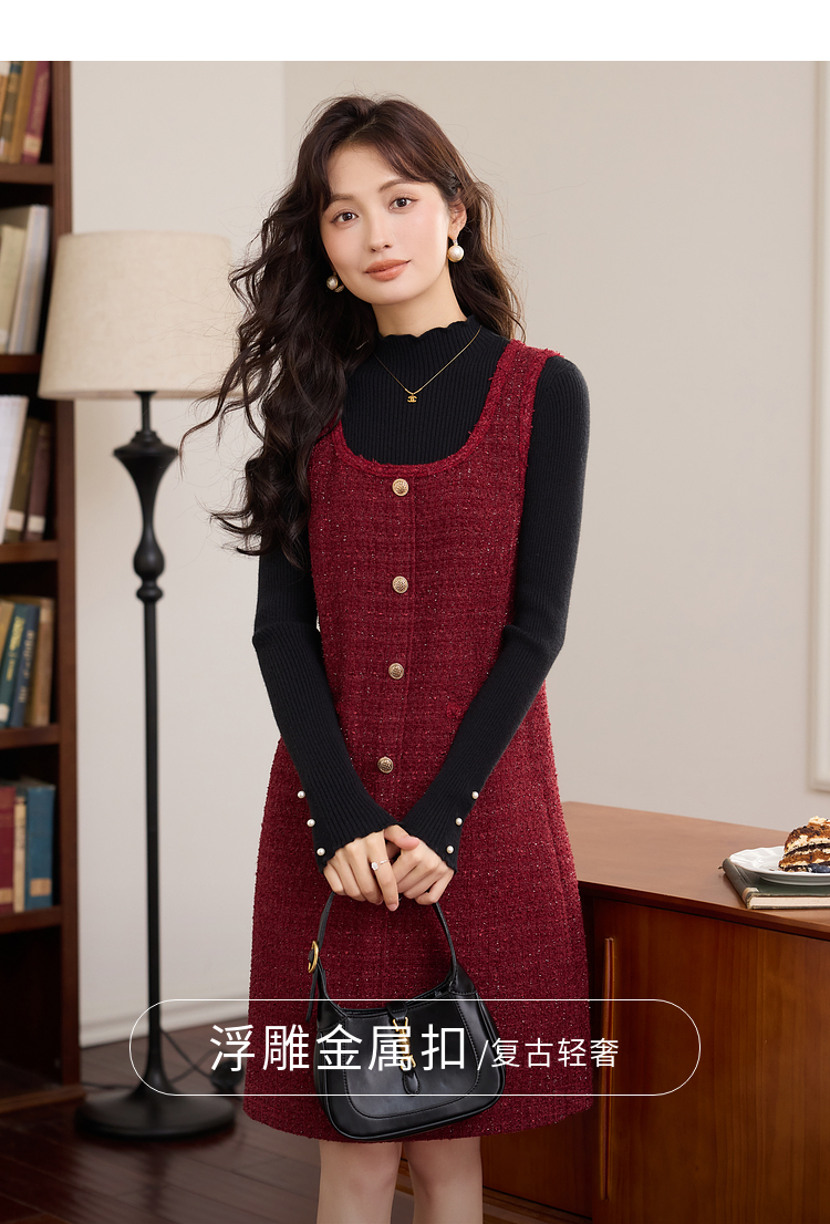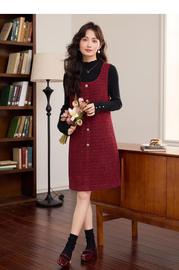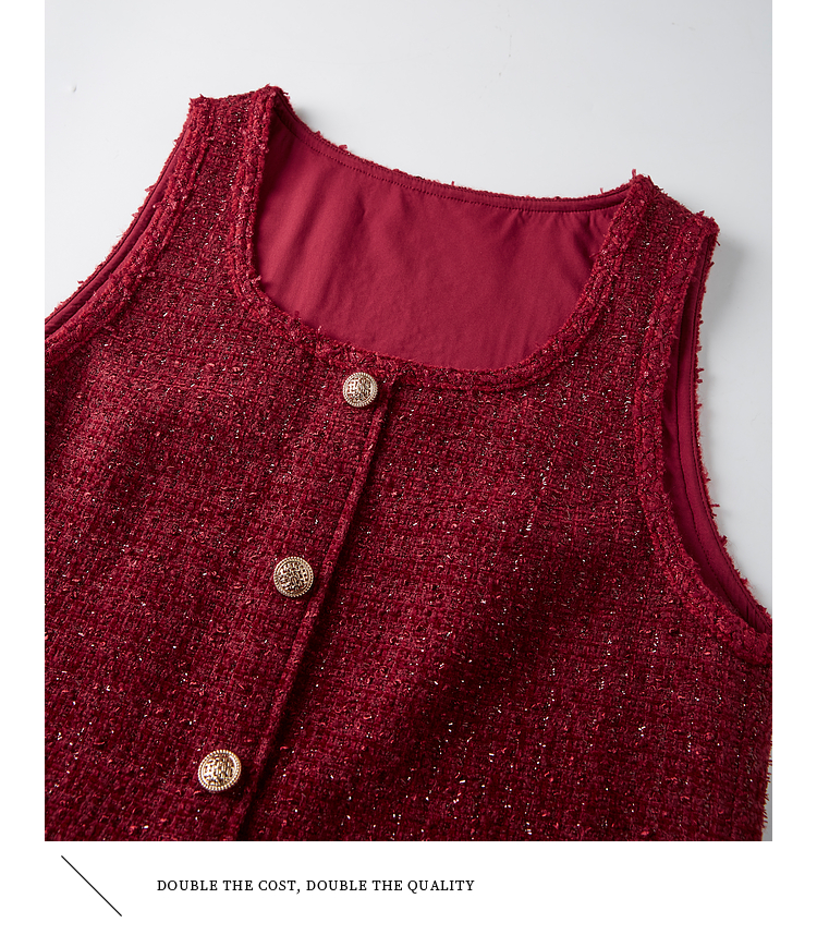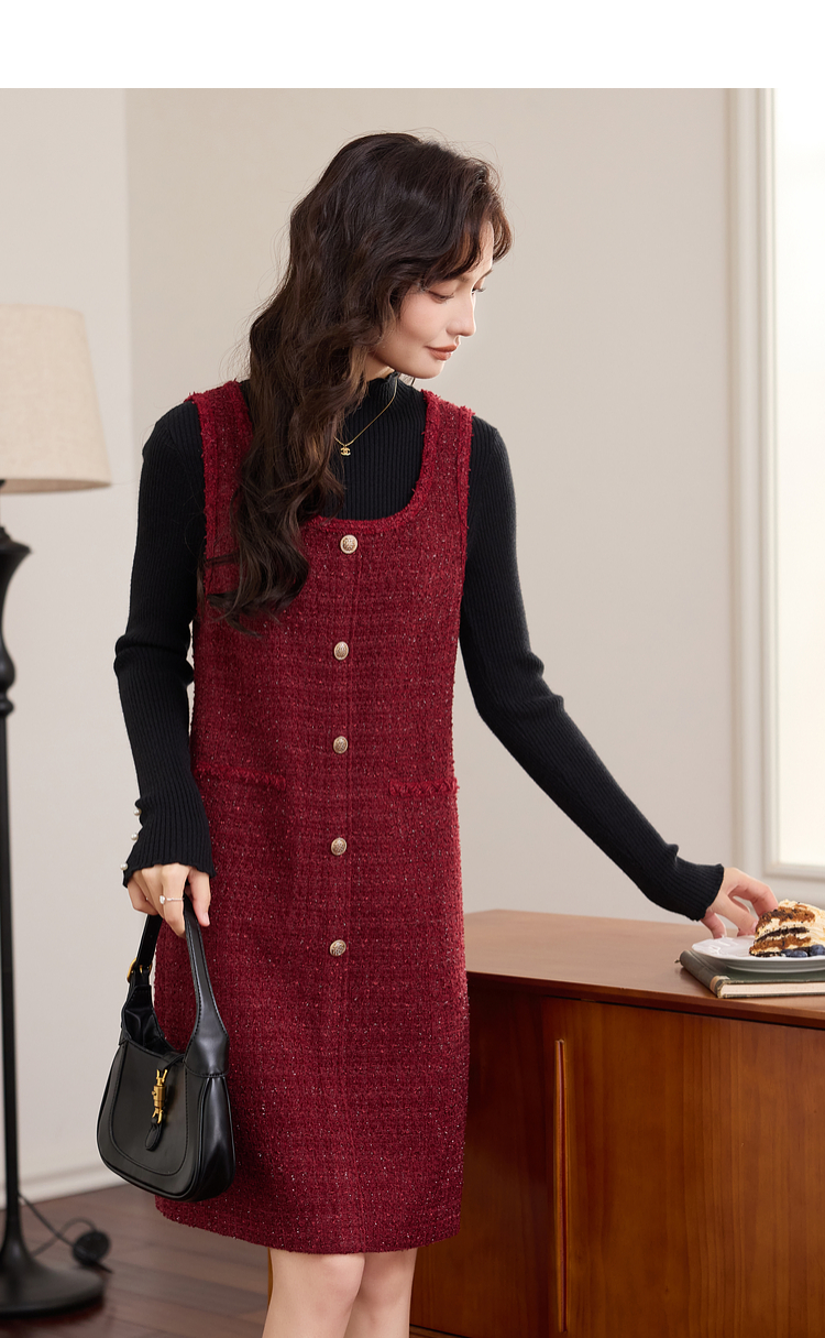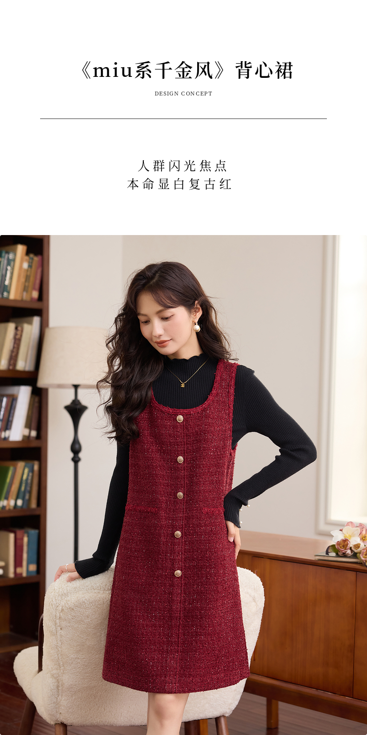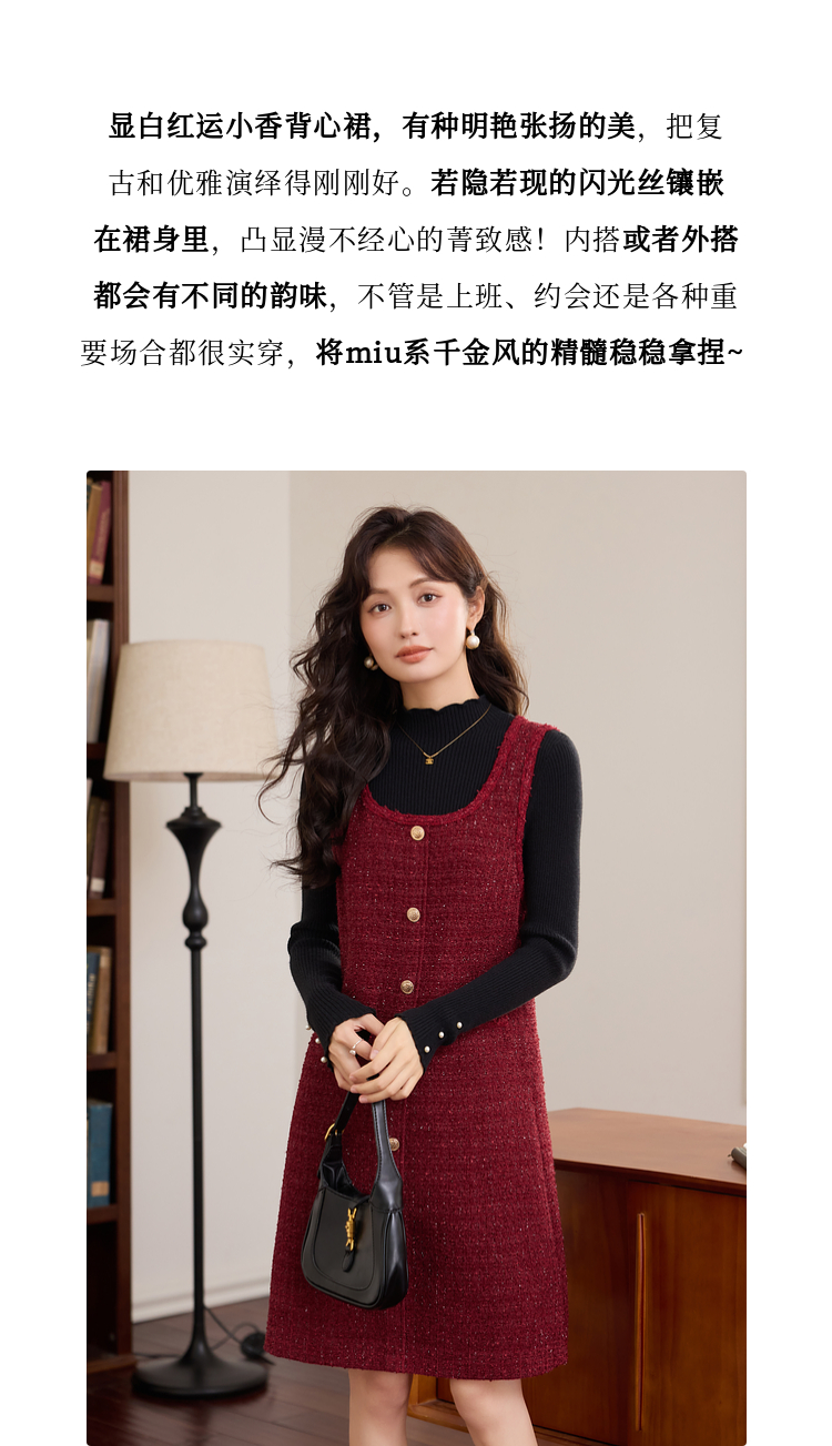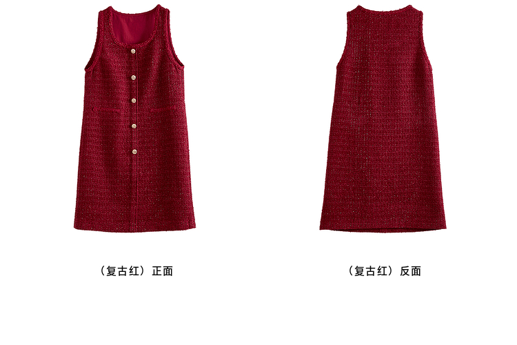 【专属特价】熙世界高级感红色千金小香风粗花呢无袖背心连衣裙女2025秋冬新款