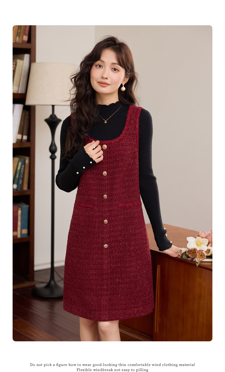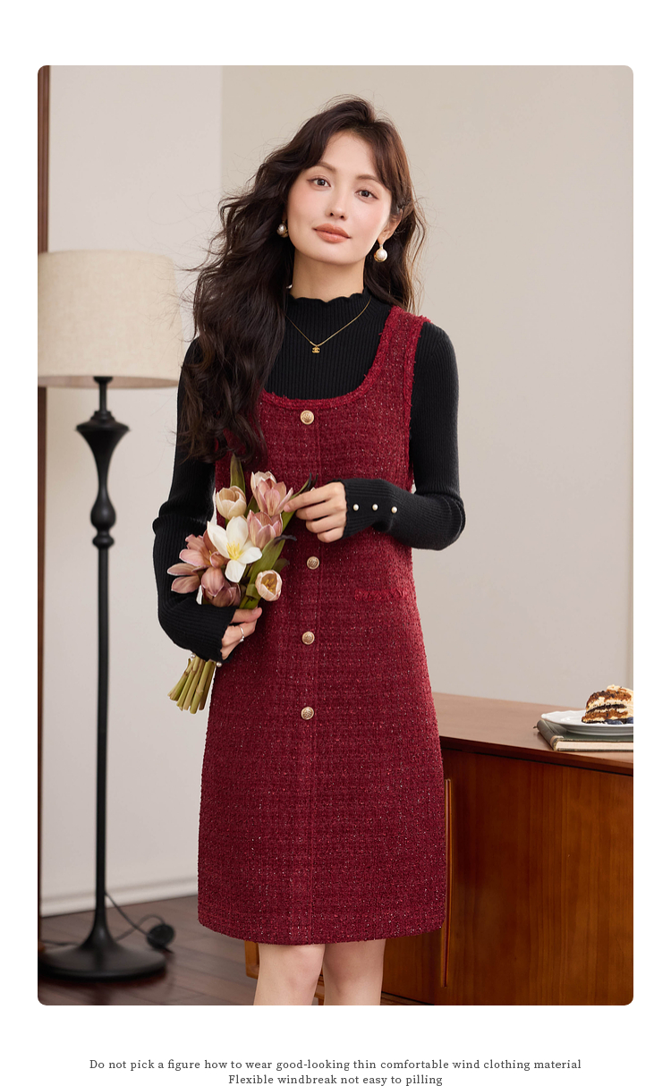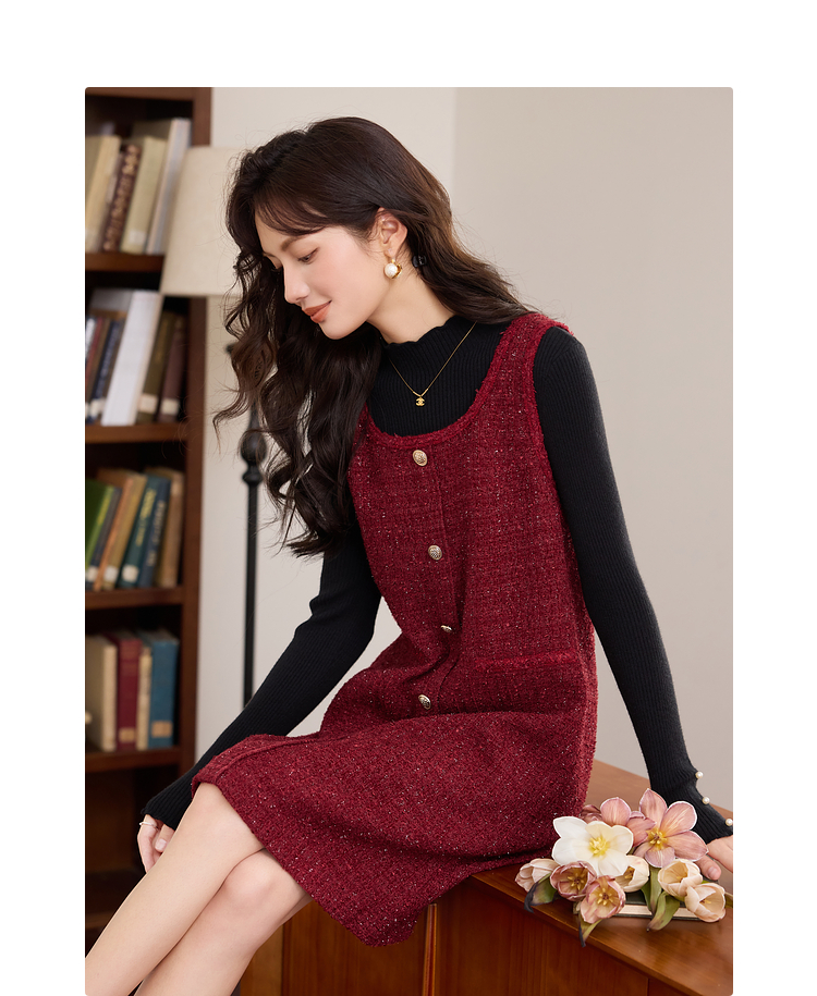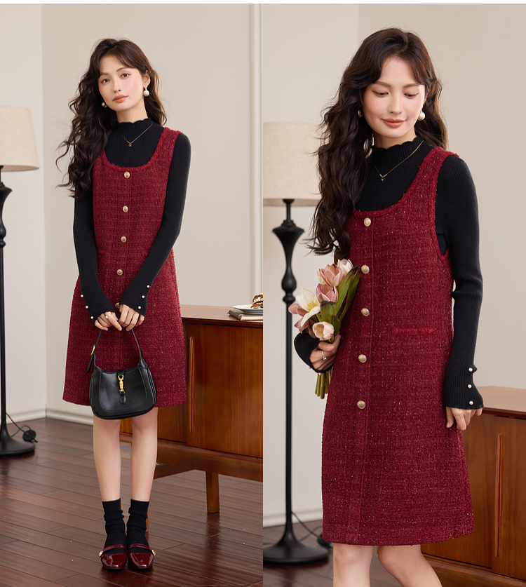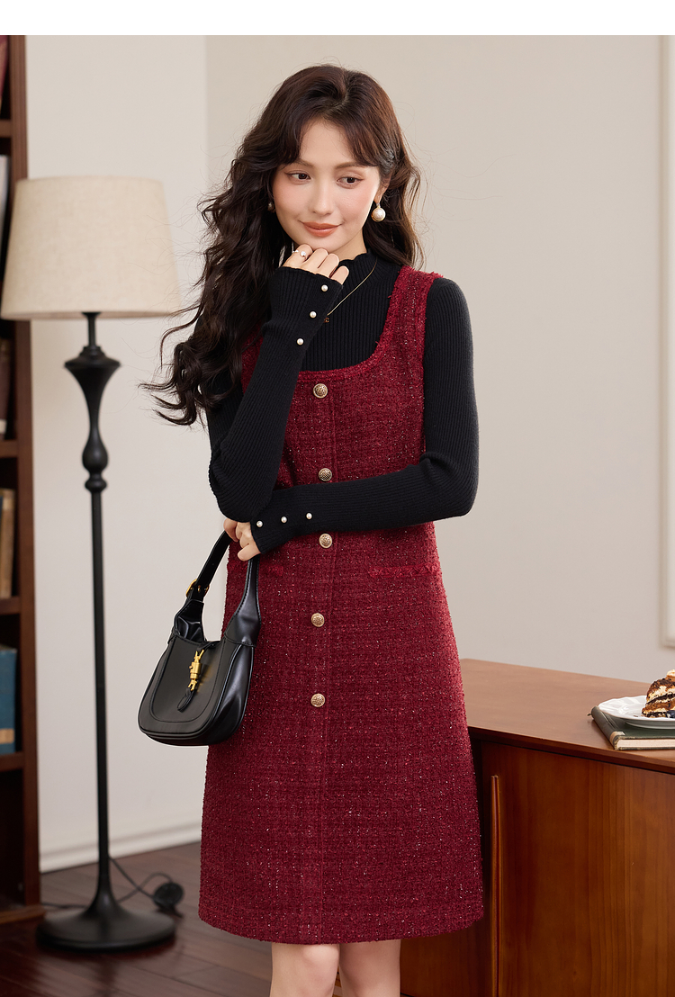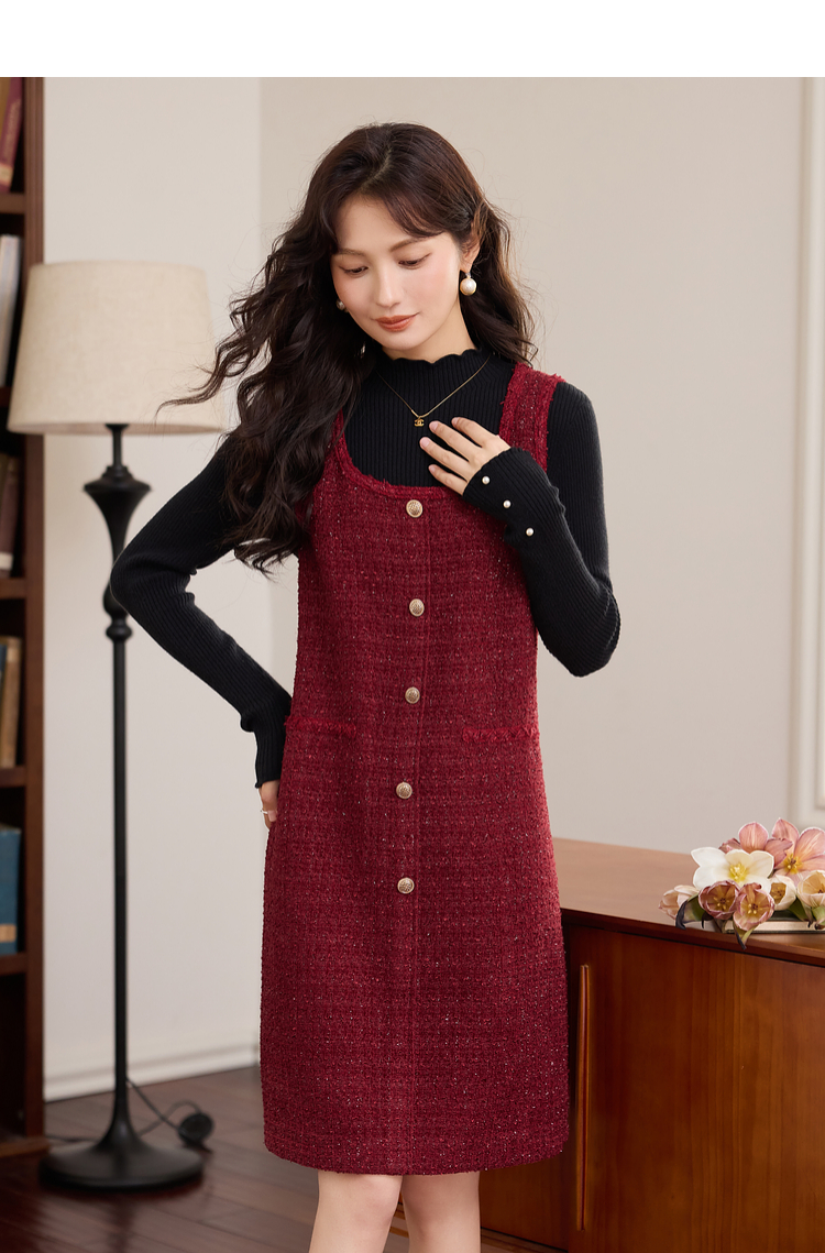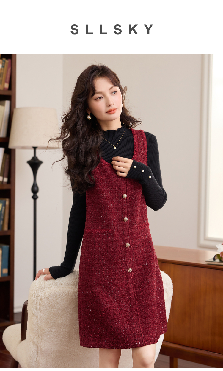 【专属特价】熙世界高级感红色千金小香风粗花呢无袖背心连衣裙女2025秋冬新款