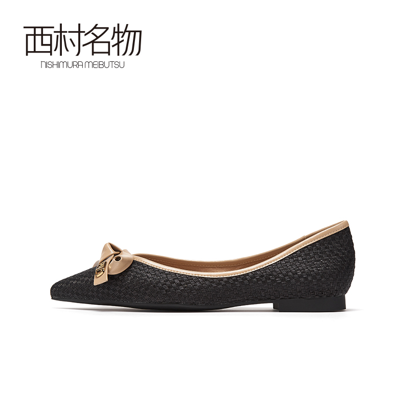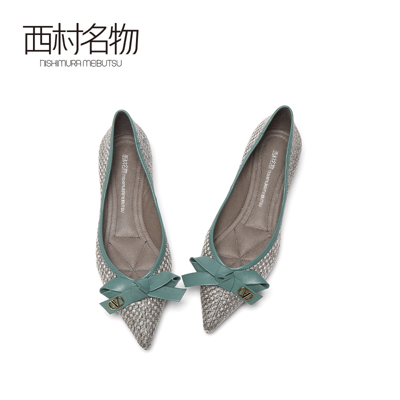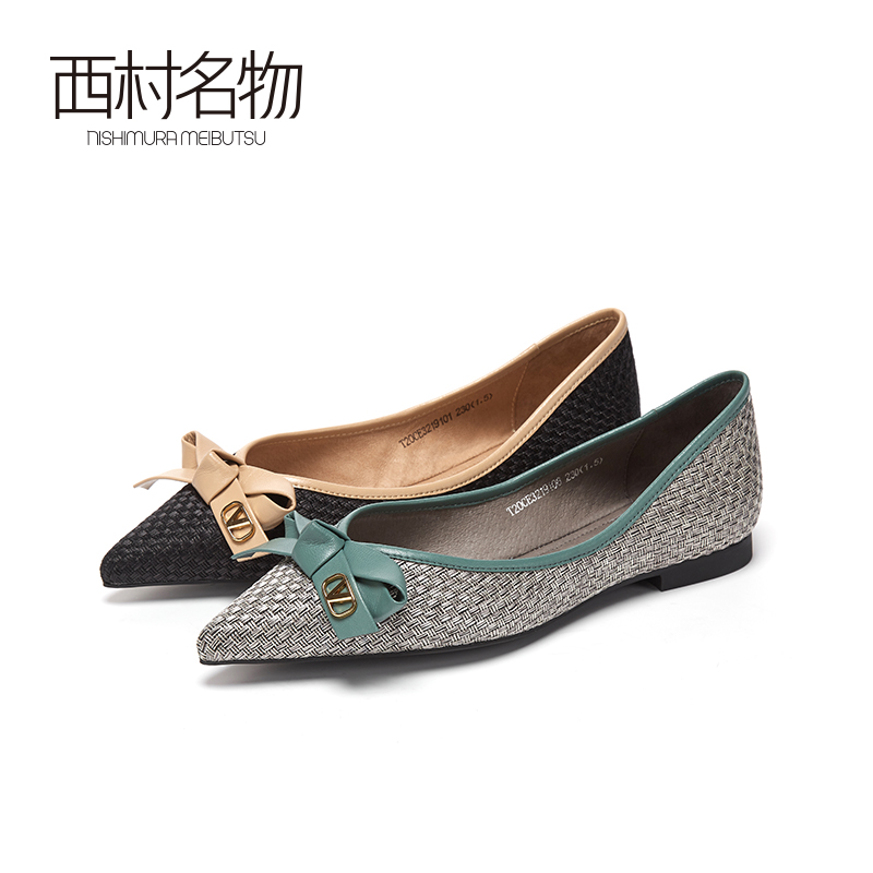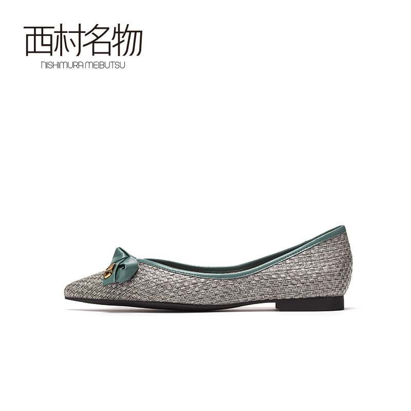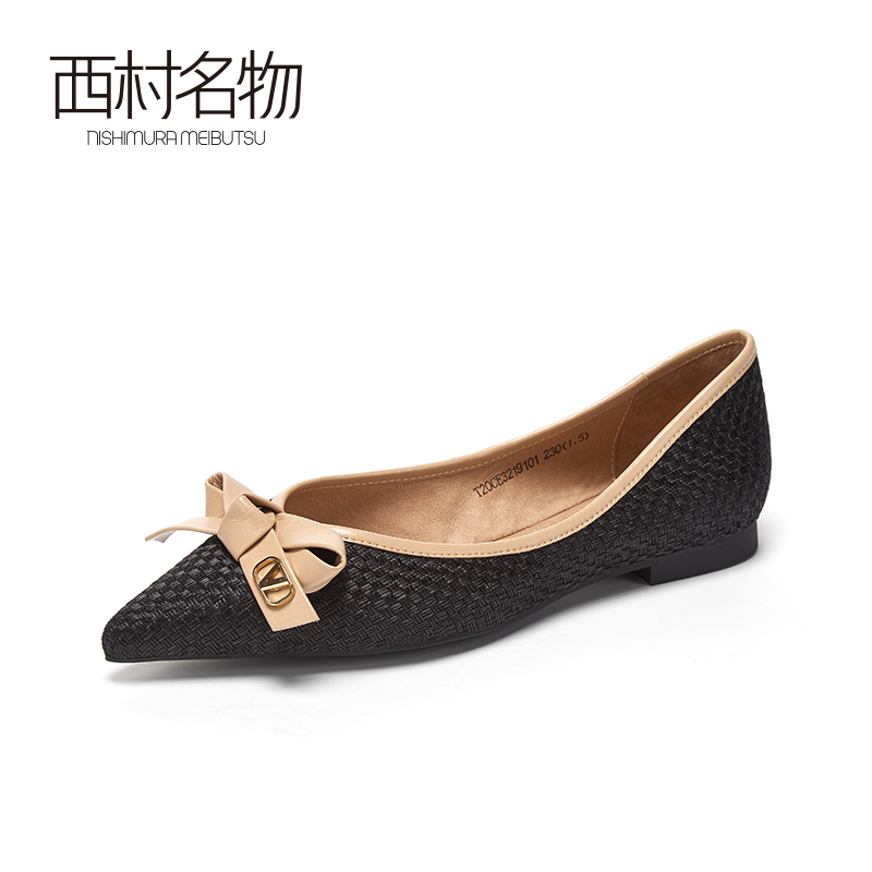 西村名物2020秋季新款奶奶鞋尖头低跟蝴蝶结一脚蹬舒适单鞋T20CE32191