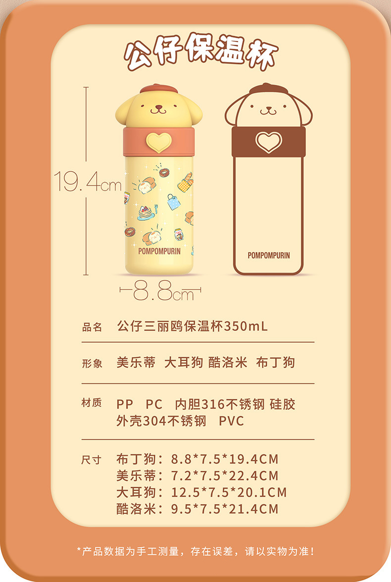 三丽鸥公仔库洛米玉桂狗保温杯高颜值可爱儿童女生316学生水杯子