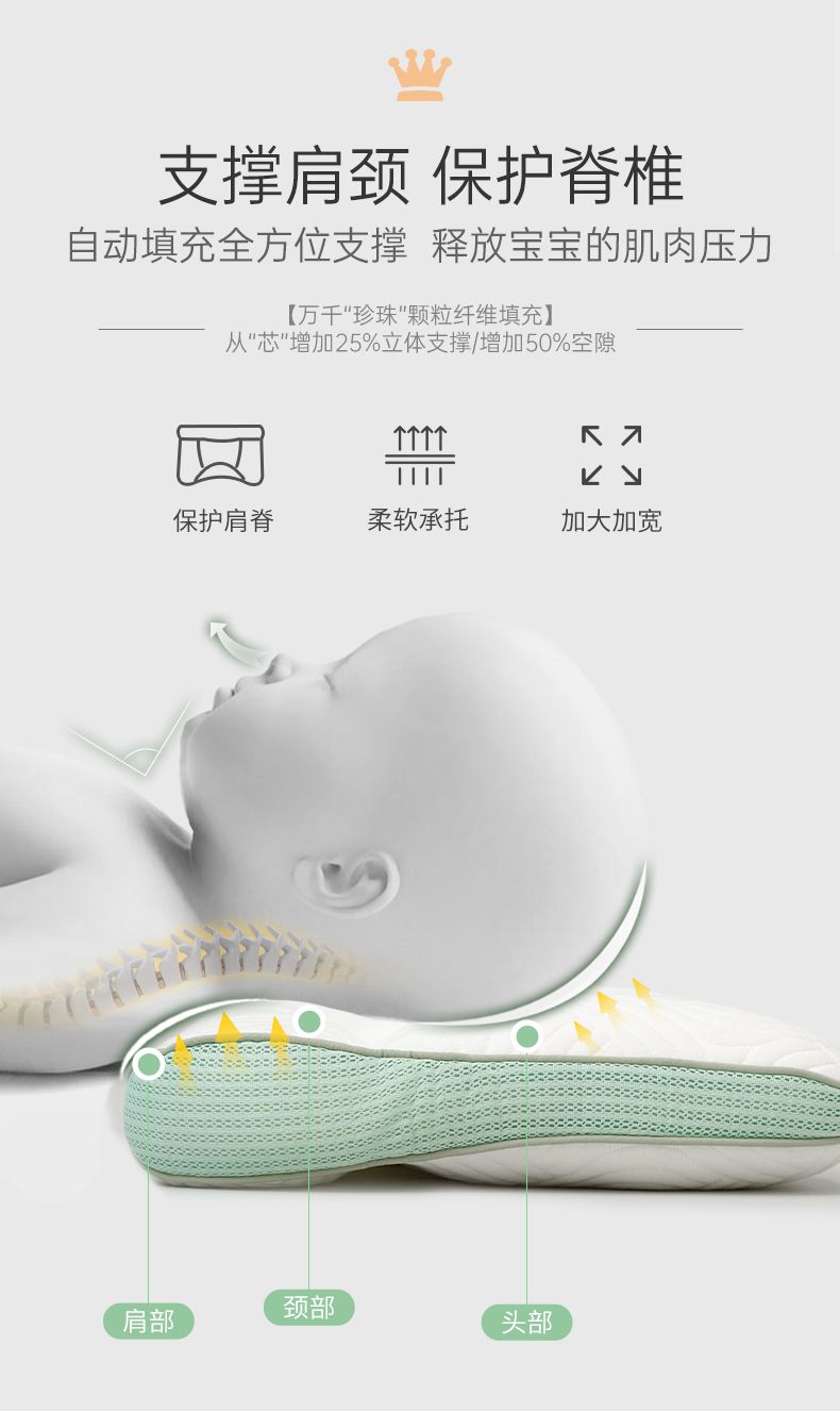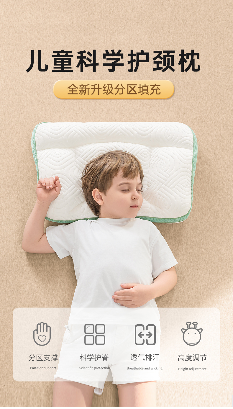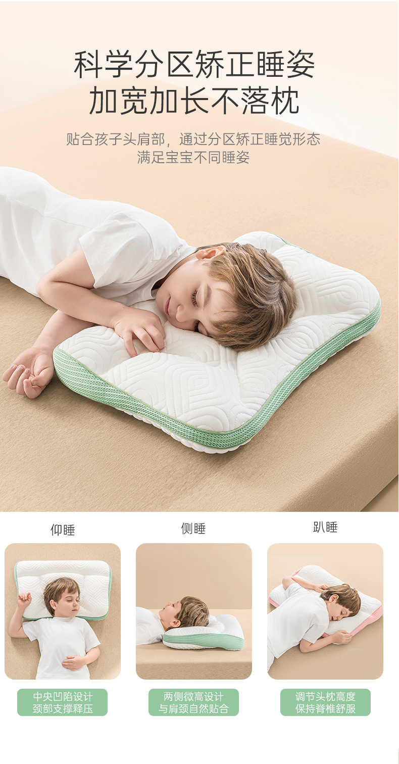 *【伴心】儿童吸汗分区枕头护脊枕透气可裸睡可机洗抑菌凉爽