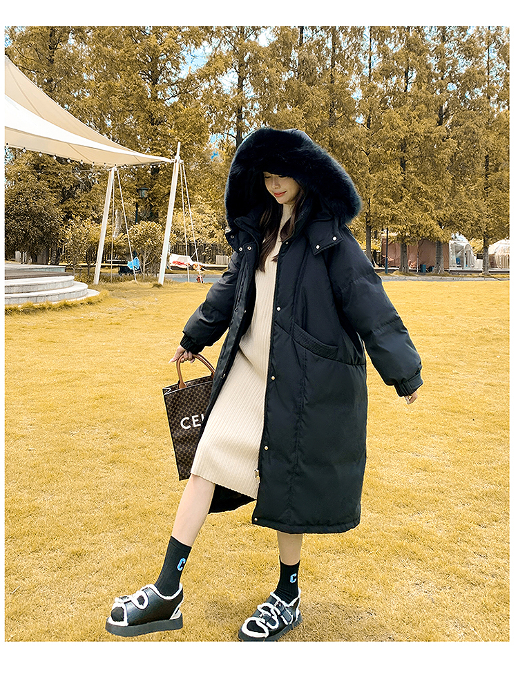 奢姿2025年冬季新款大码女装时尚保暖拼接羽绒服胖妹妹连帽外套
