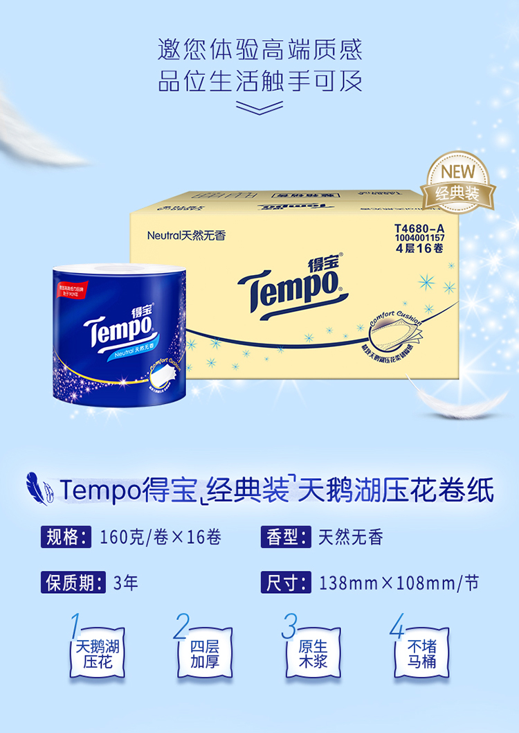 【官方直营】[爆款组合]得宝经典无香90抽18包+卫生卷纸160gx16卷 抽卷组合四层加厚