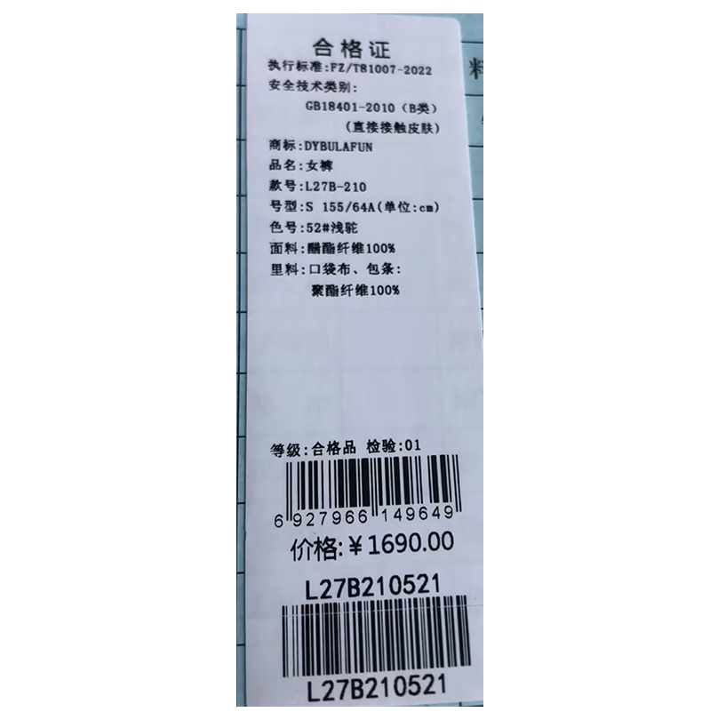 戴布拉芬长裤L27B210