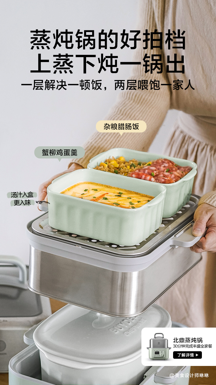 北鼎多功能猪猪盒学生便当盒上班族陶瓷饭盒大容量汤碗可微波加热