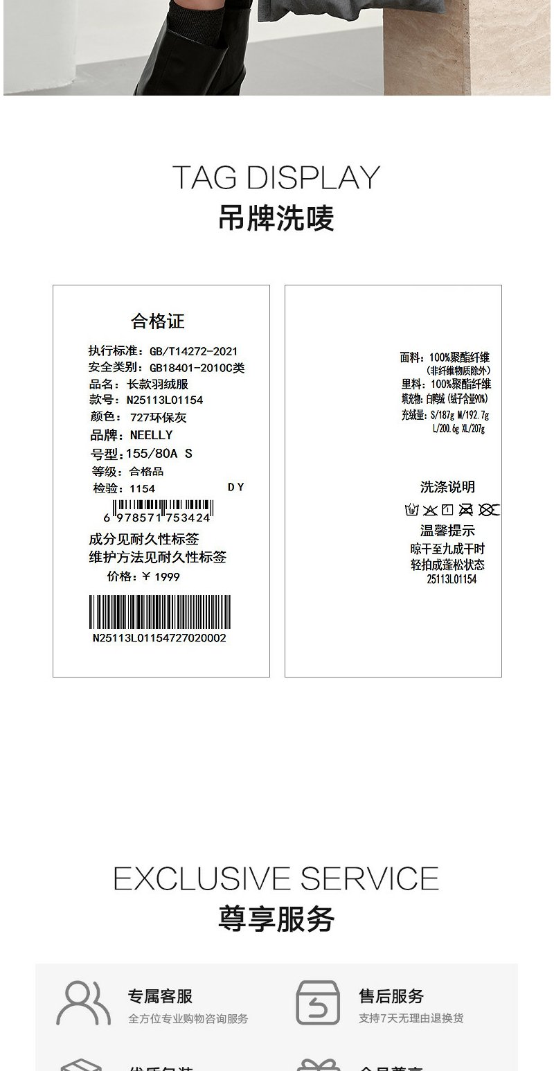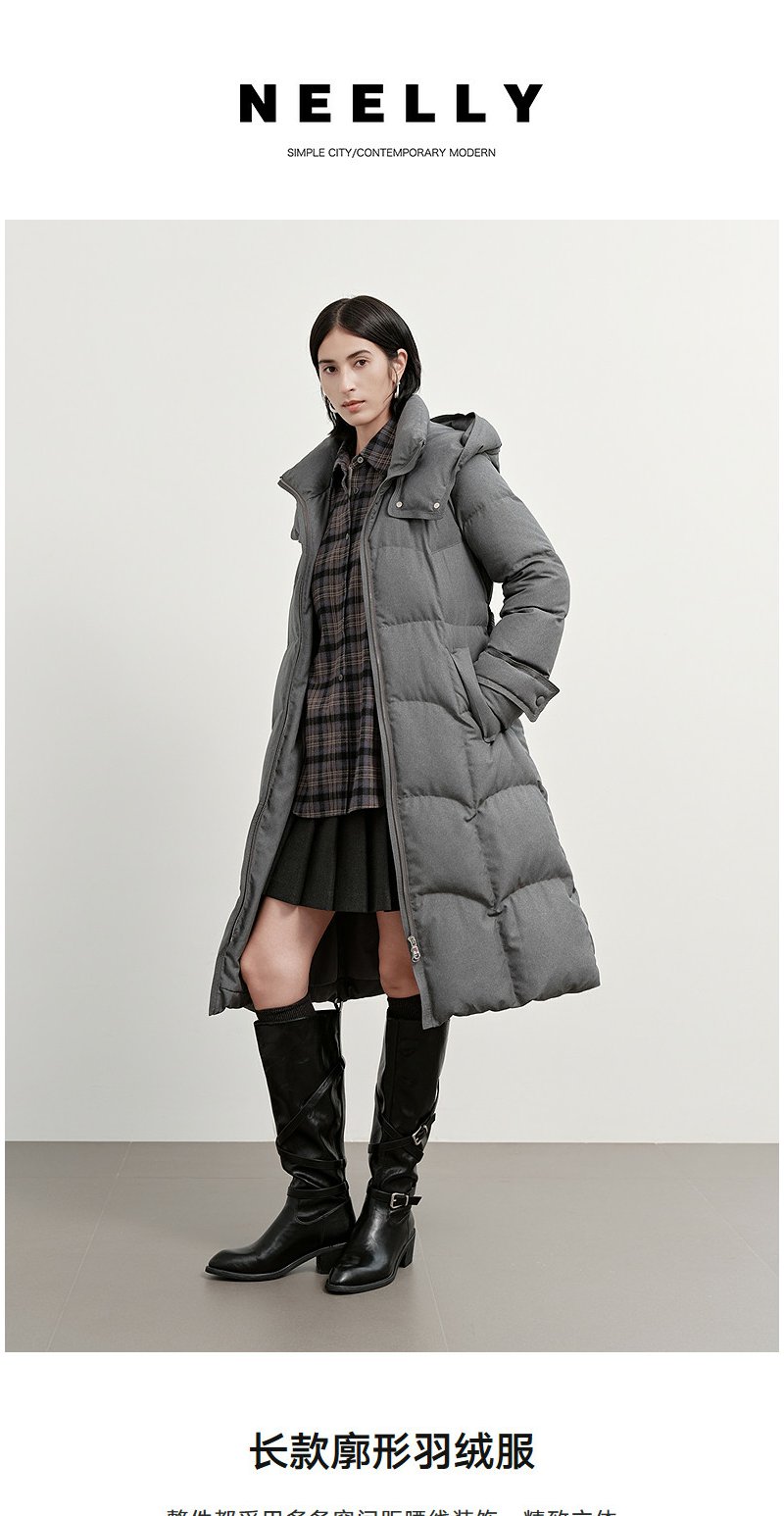 NEELLY纳俪商场同款冬新款时尚休闲长款收腰羽绒服女90白鸭绒外套N25113L01154