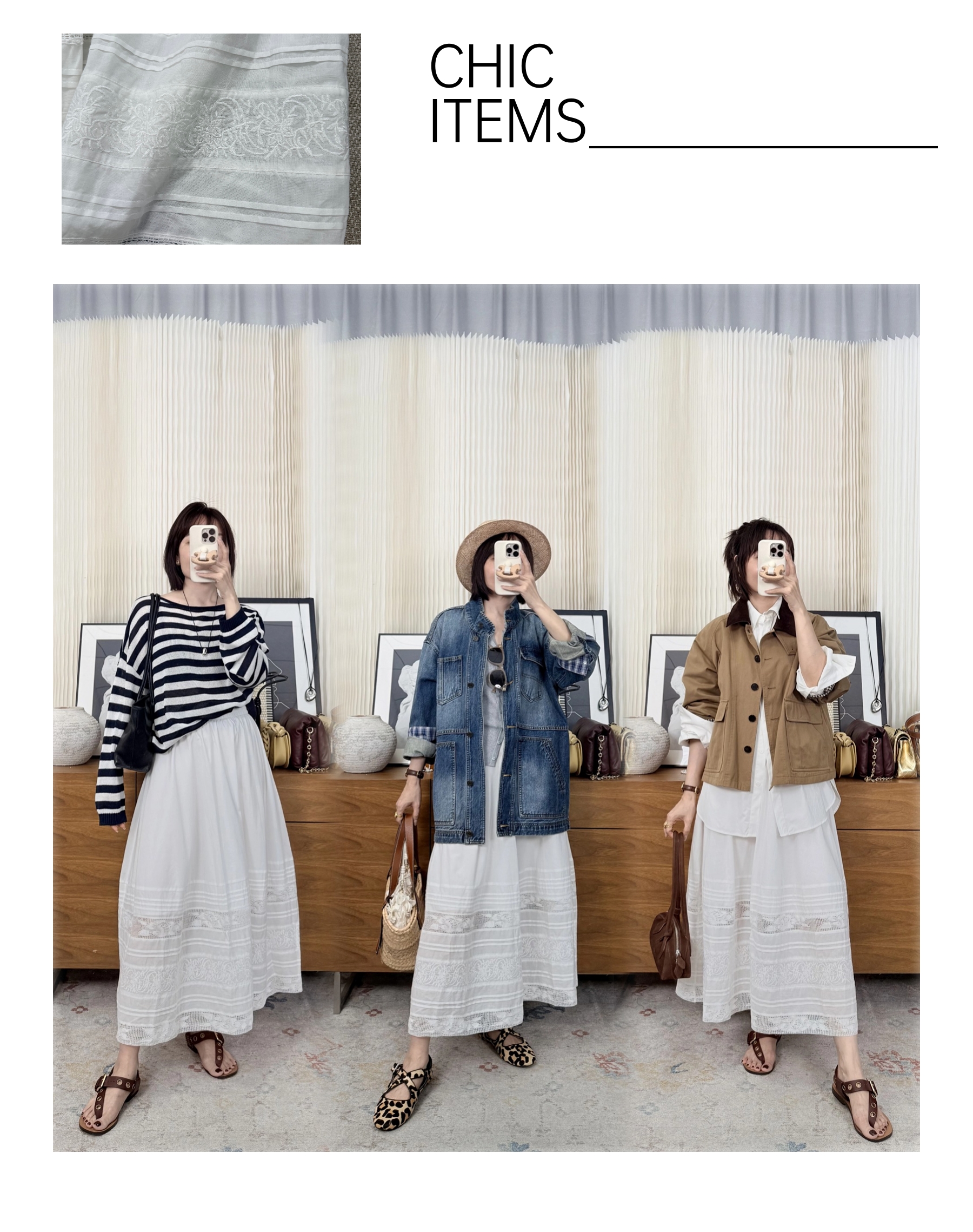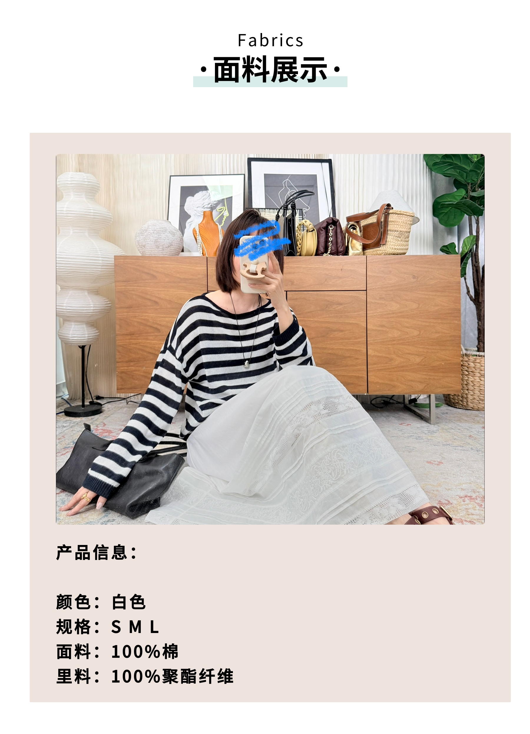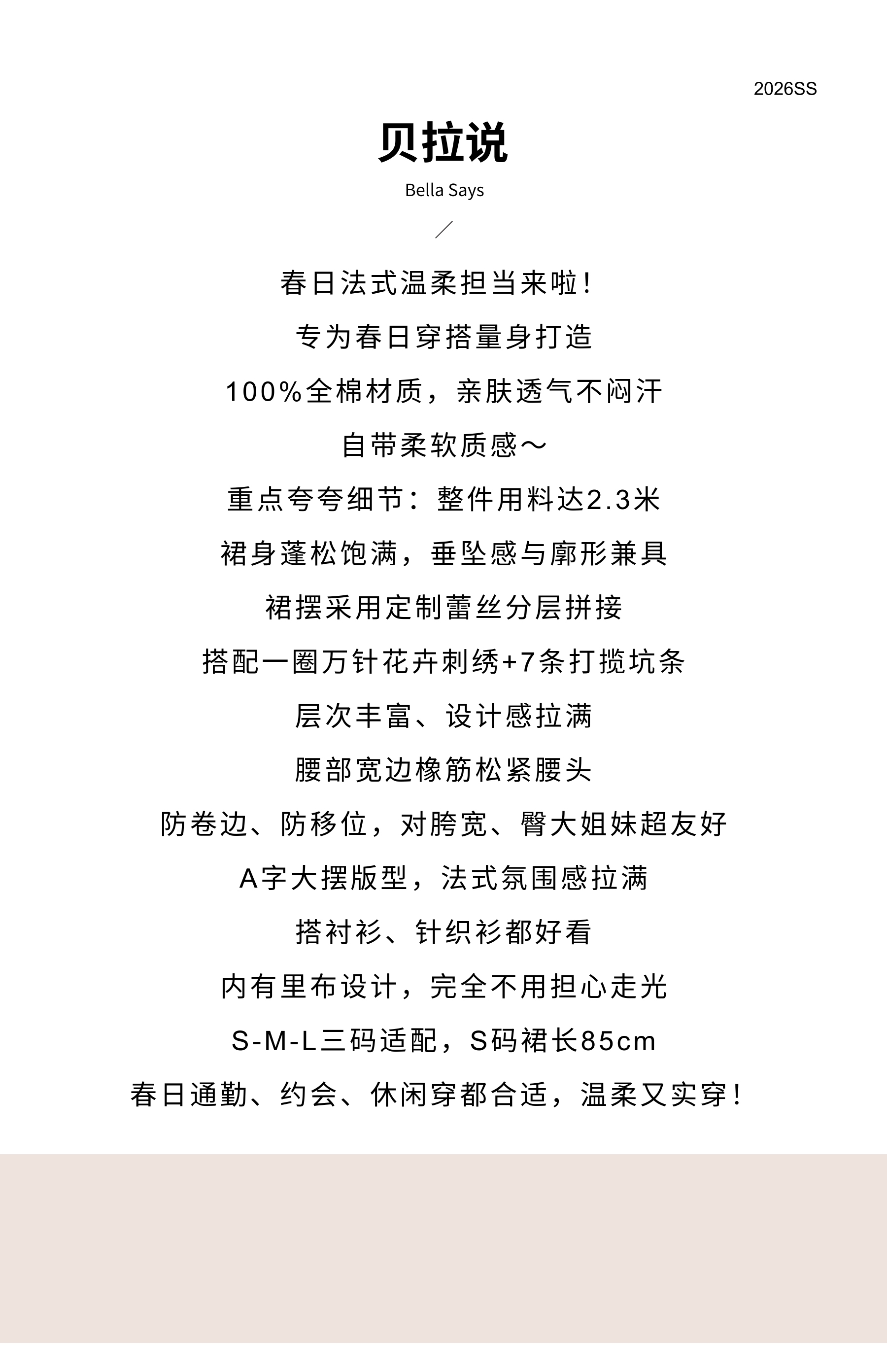 【贝拉推荐】灵魂契合 100%全棉白色A字半裙 蕾丝刺绣法式混搭 波西米亚风格度假日常都合适 橡筋腰头不挑身材