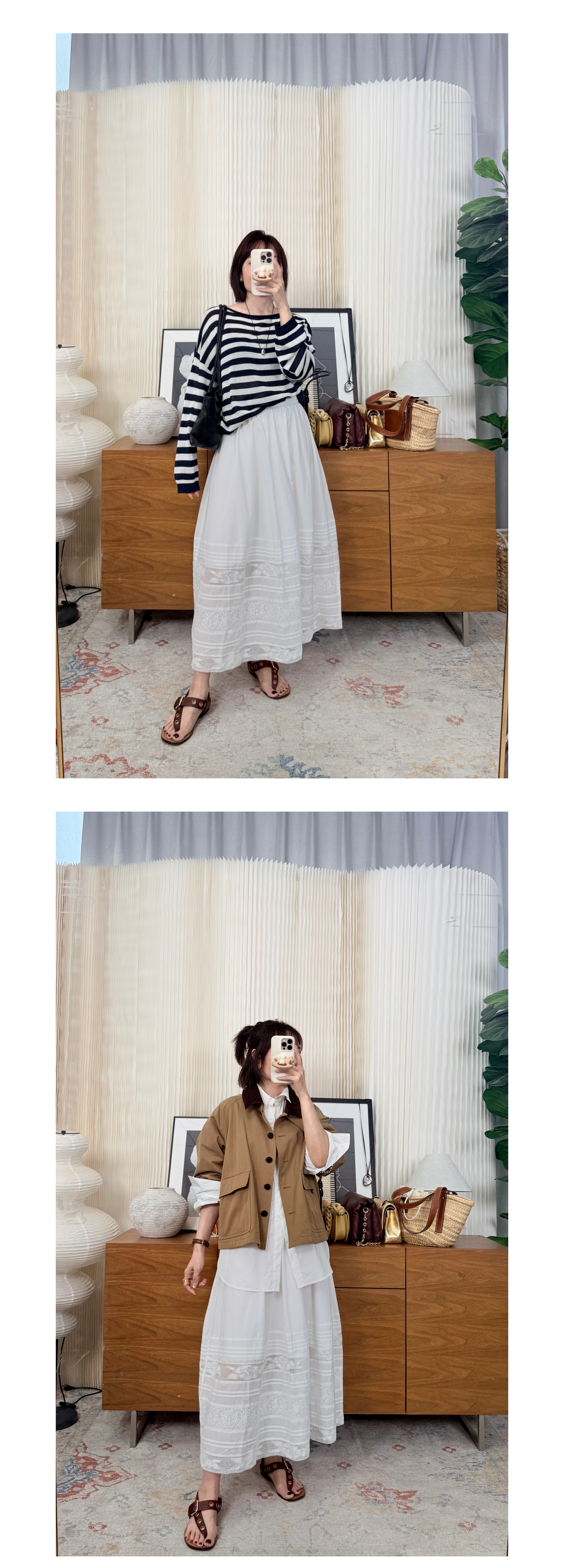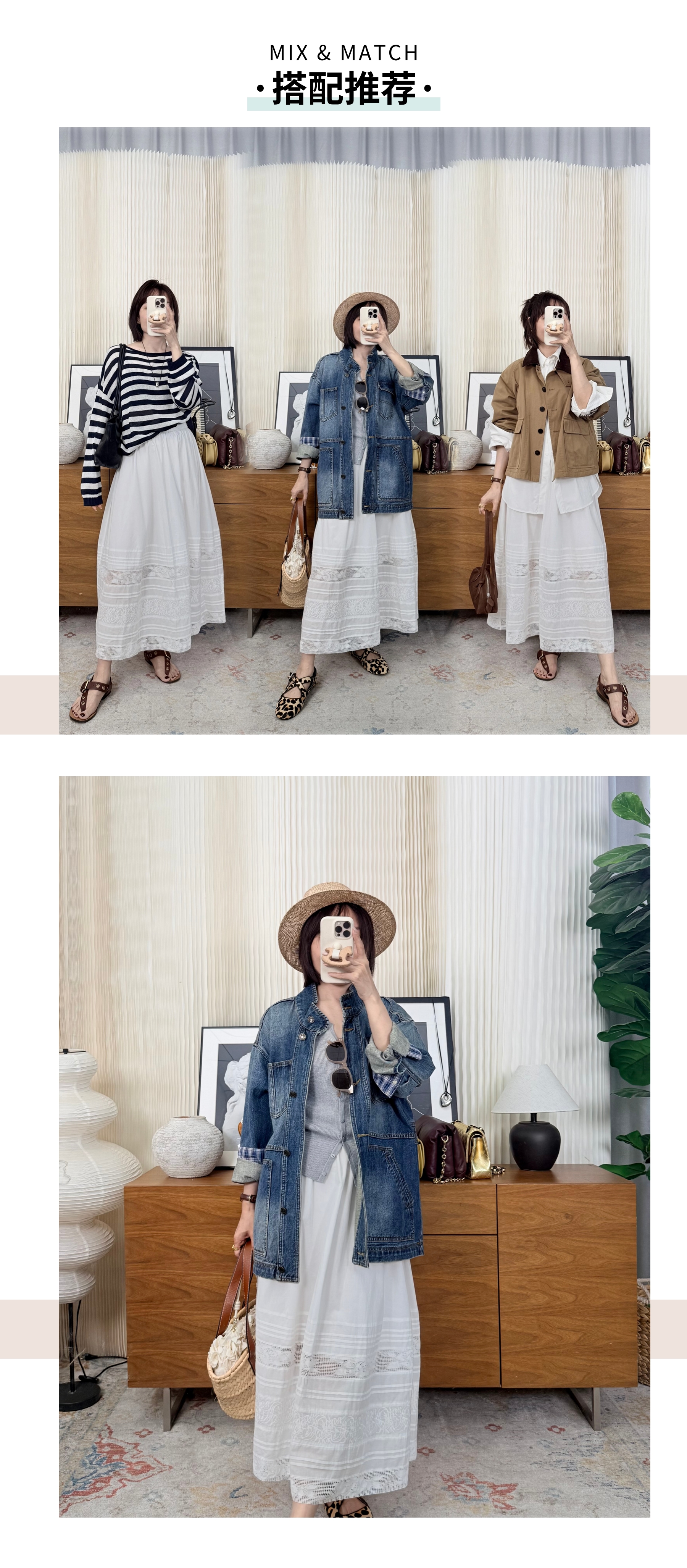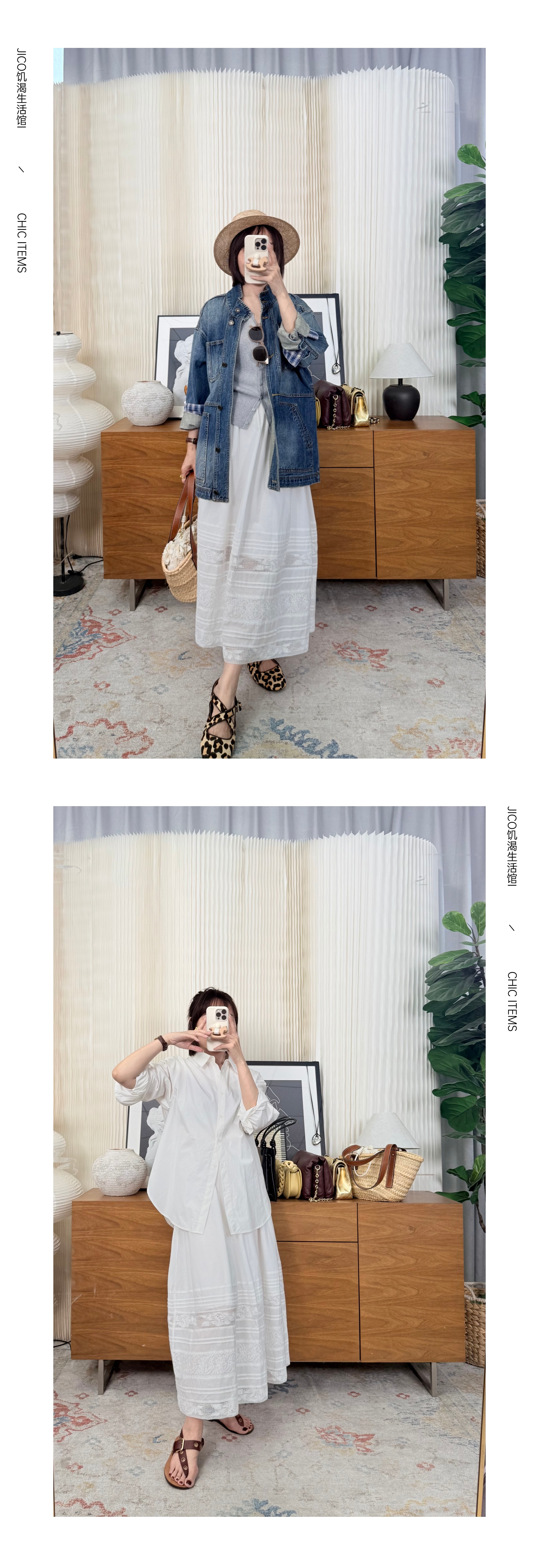 【贝拉推荐】灵魂契合 100%全棉白色A字半裙 蕾丝刺绣法式混搭 波西米亚风格度假日常都合适 橡筋腰头不挑身材