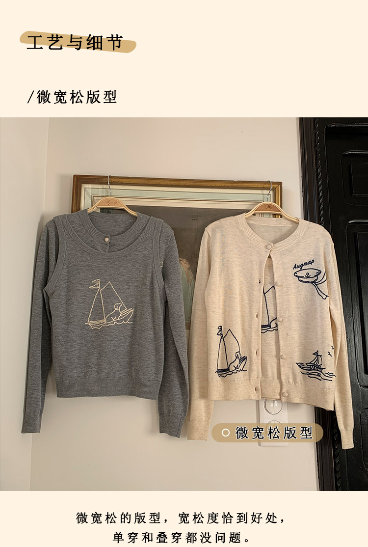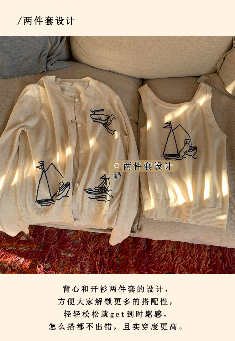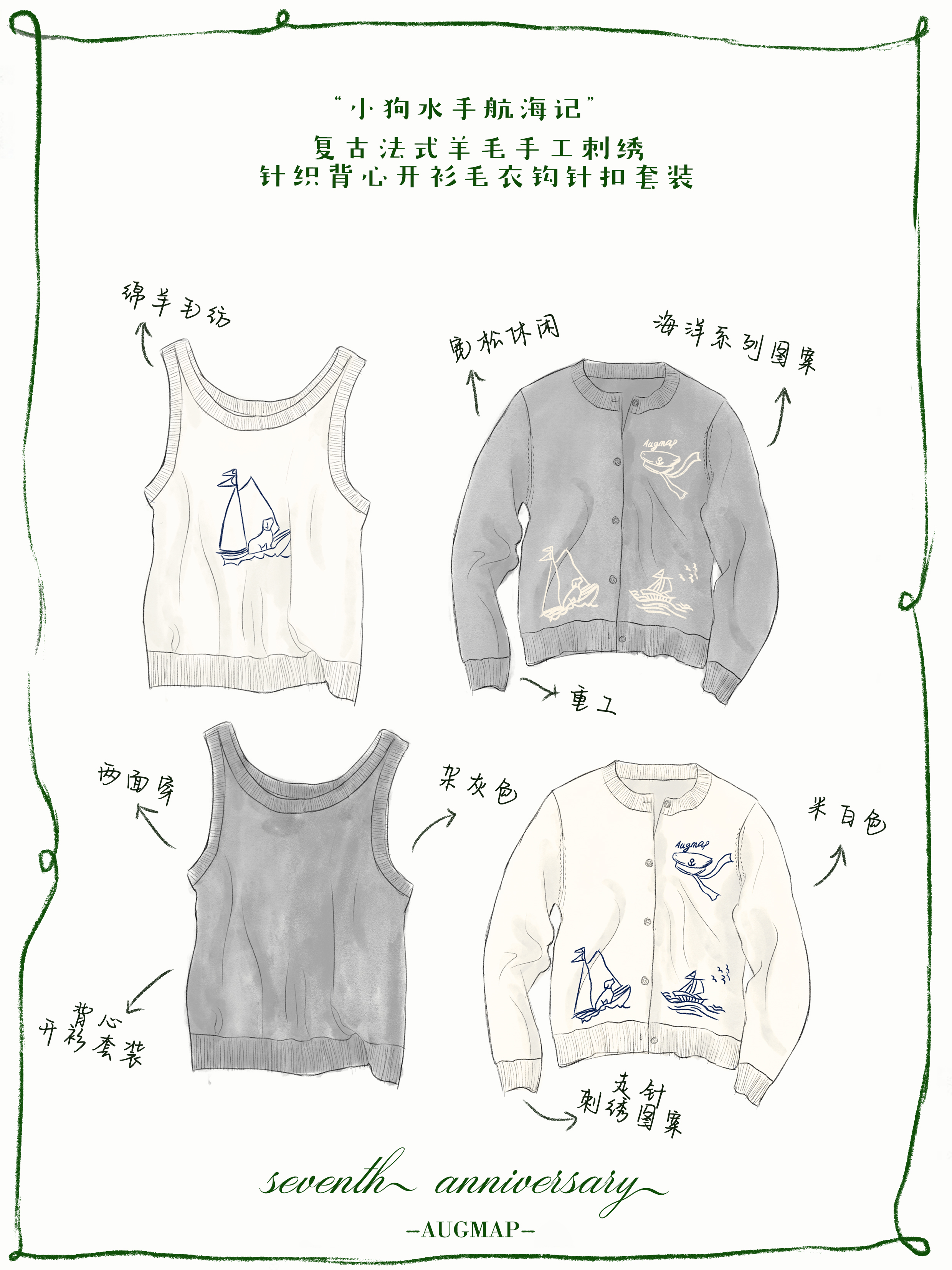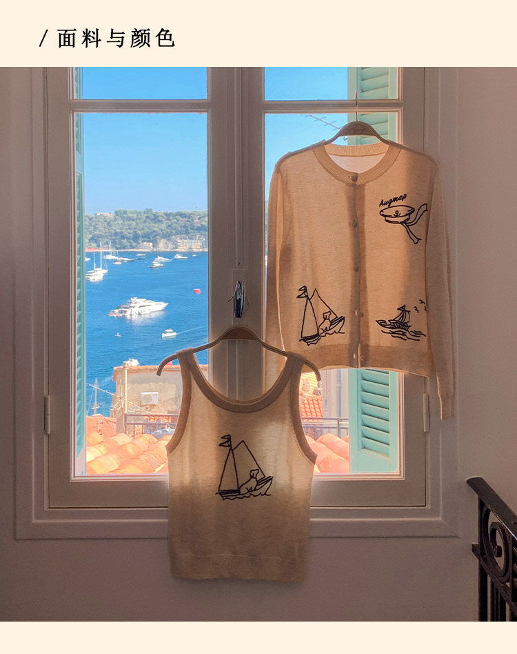 浮生八记/25C118/25C119/“小狗水手航海记”法式针织背心开衫