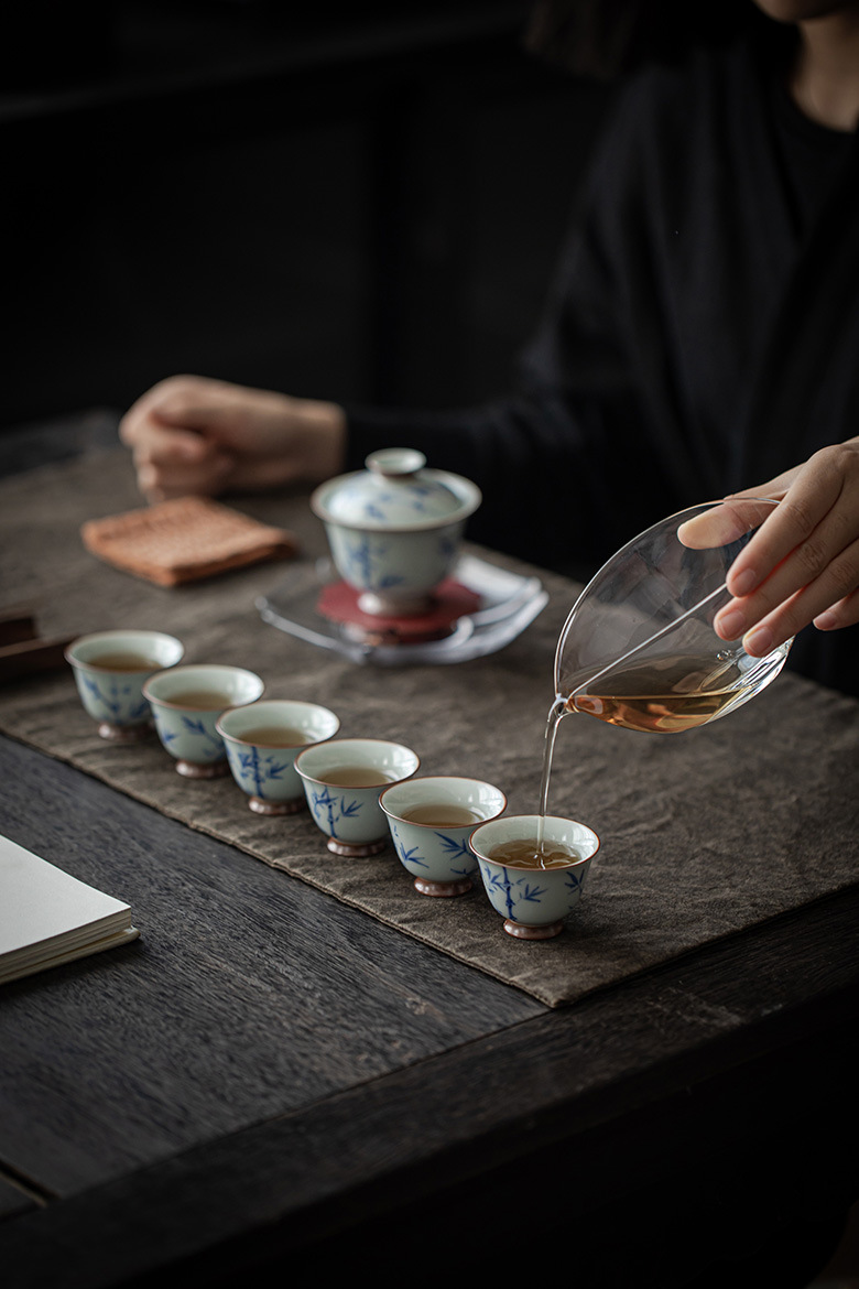 墨已 | 古青仿古手绘青花竹子 盖碗 品茗杯
