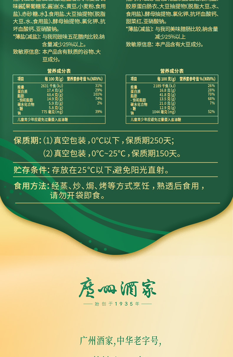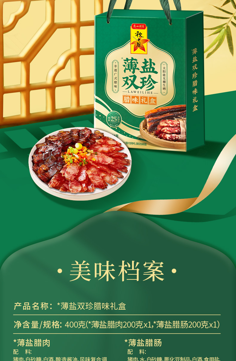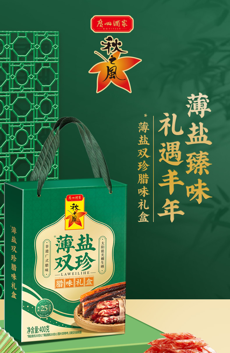 广州酒家 薄盐双珍腊味礼盒广式腊肠香肠广东腊肉煲仔饭特产送礼