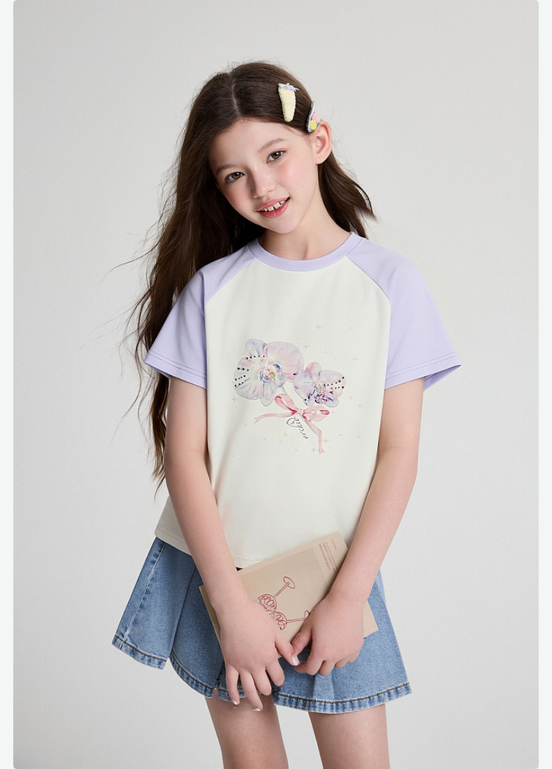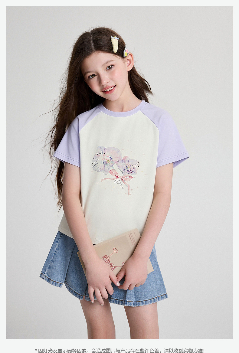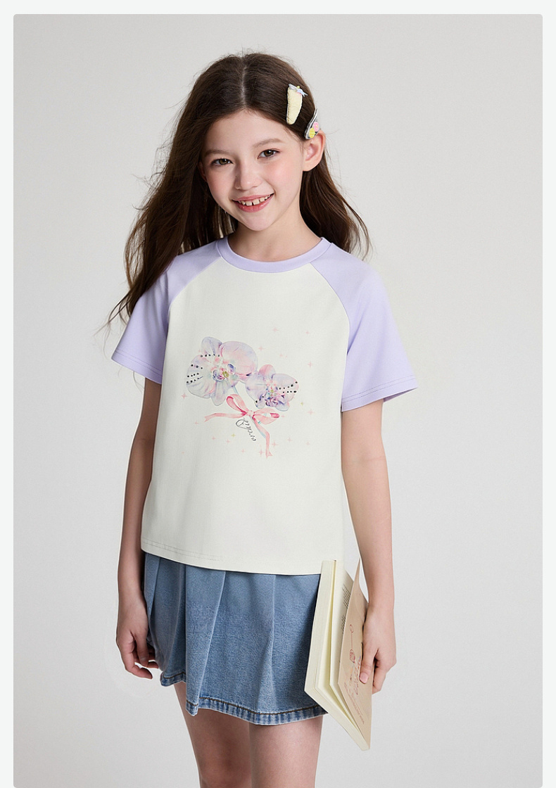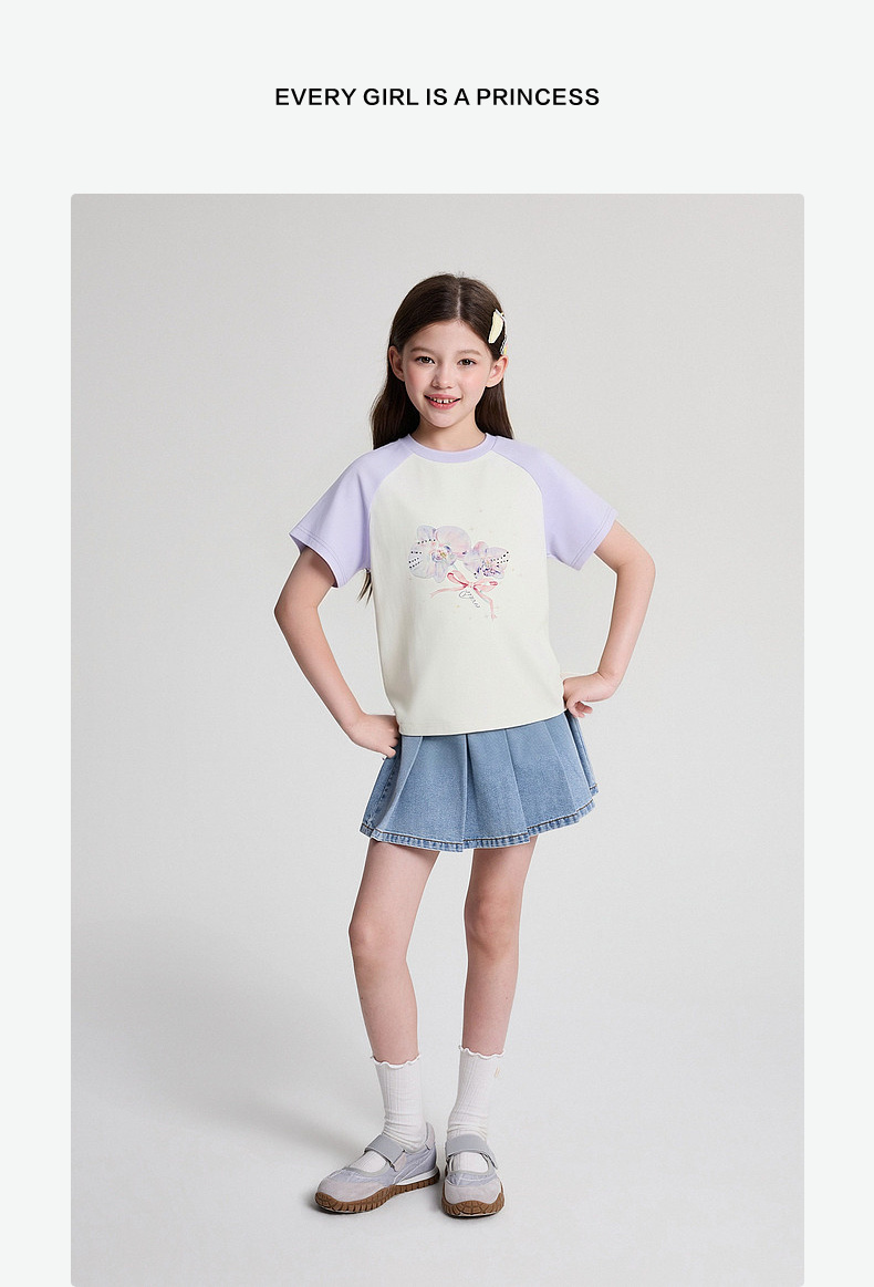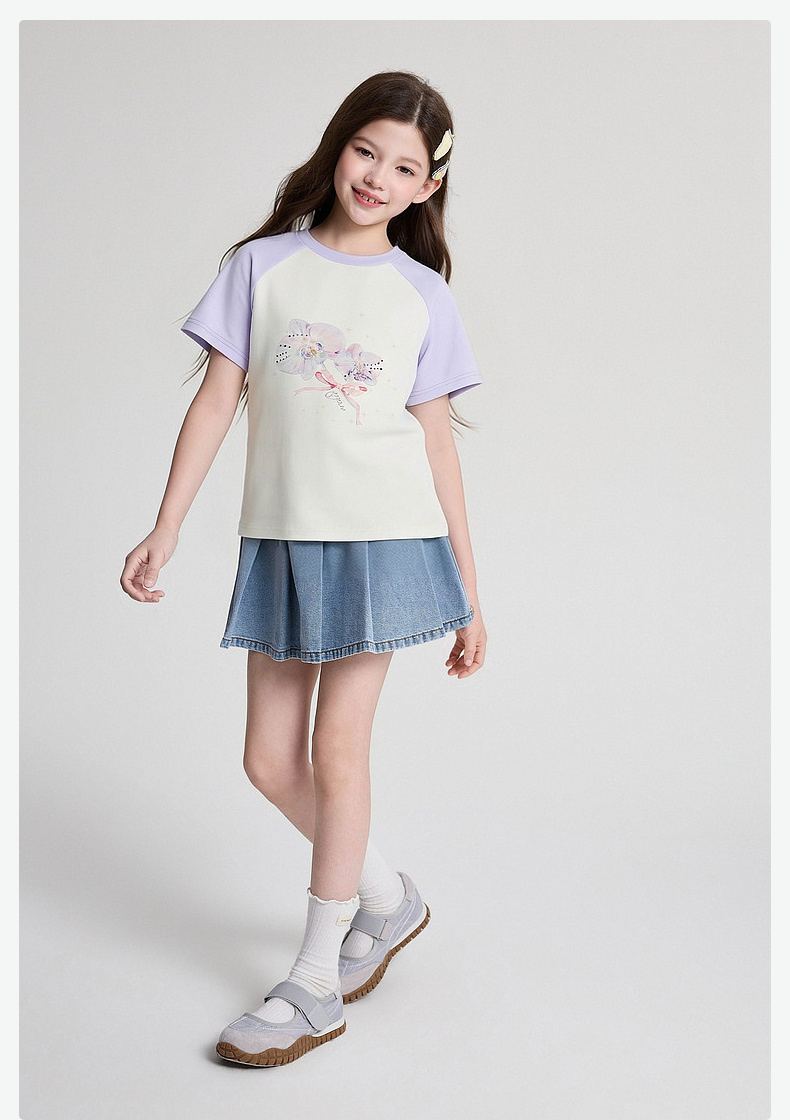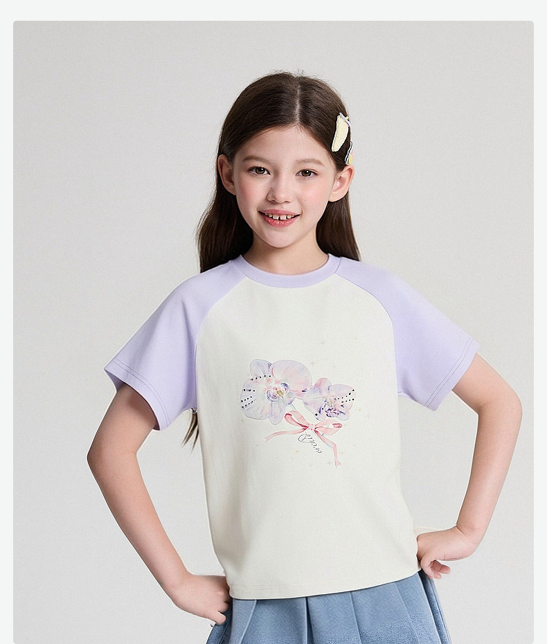 笛莎/Deesha 2026年夏季新款女童中大童插肩袖撞色T恤