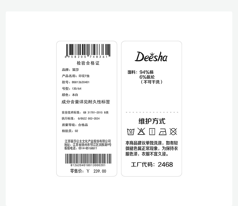 笛莎Deesha 2026年夏季新款青少年索罗娜刺绣小标T恤