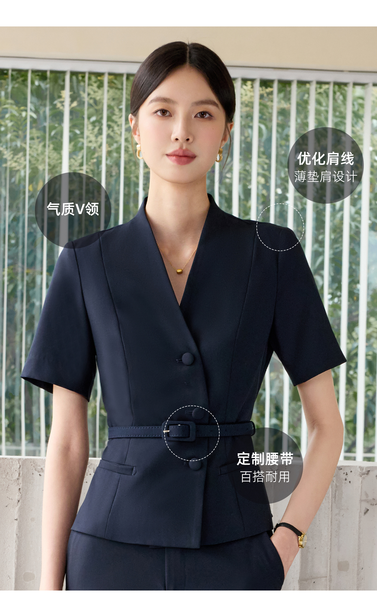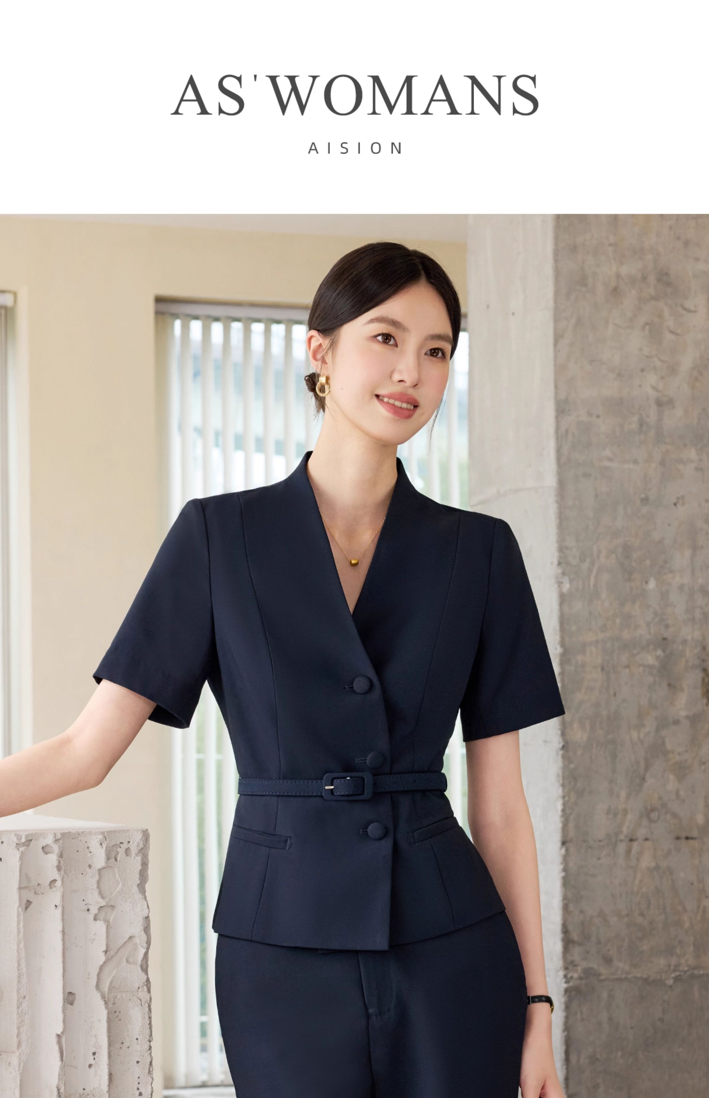 IWY/藏青色西装套装女夏季短袖薄款销售工作服高端职业装25CP578