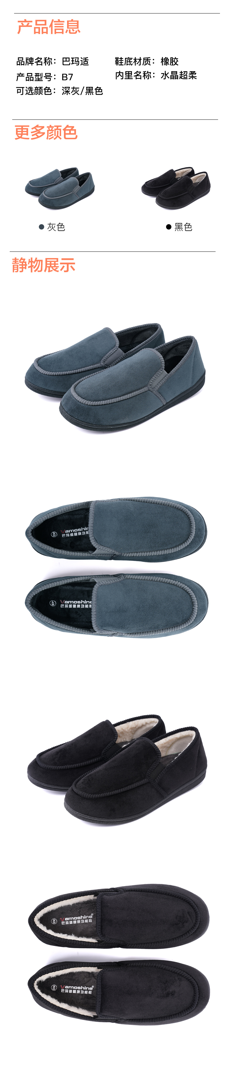 巴玛适春秋中老年爸爸鞋加肥宽松老人鞋休闲鞋脚肿易穿脱一脚蹬男鞋B7