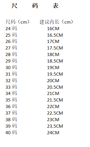 | 尺码: | 24-40详见尺码表 | |