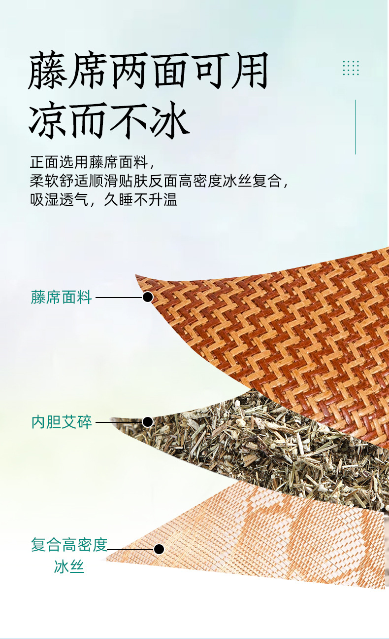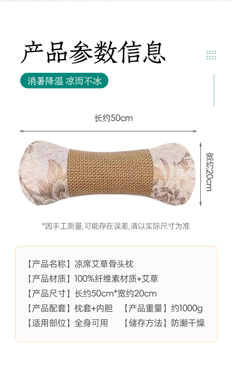 【凉席艾草枕】夏季藤席枕冰丝凉席枕艾灸枕骨头枕头 艾草凉席枕,藤席两面可用,凉而不冰。ry