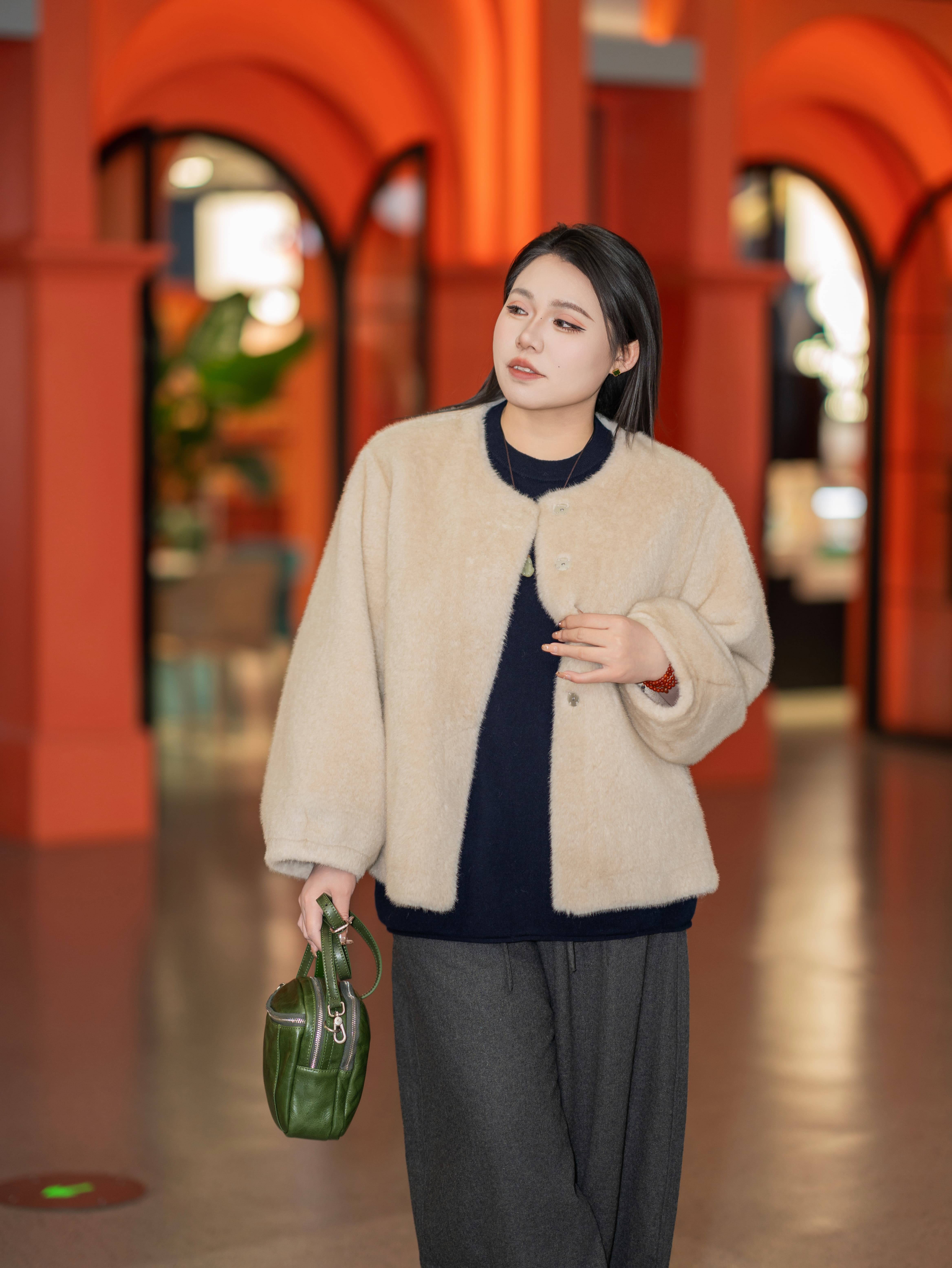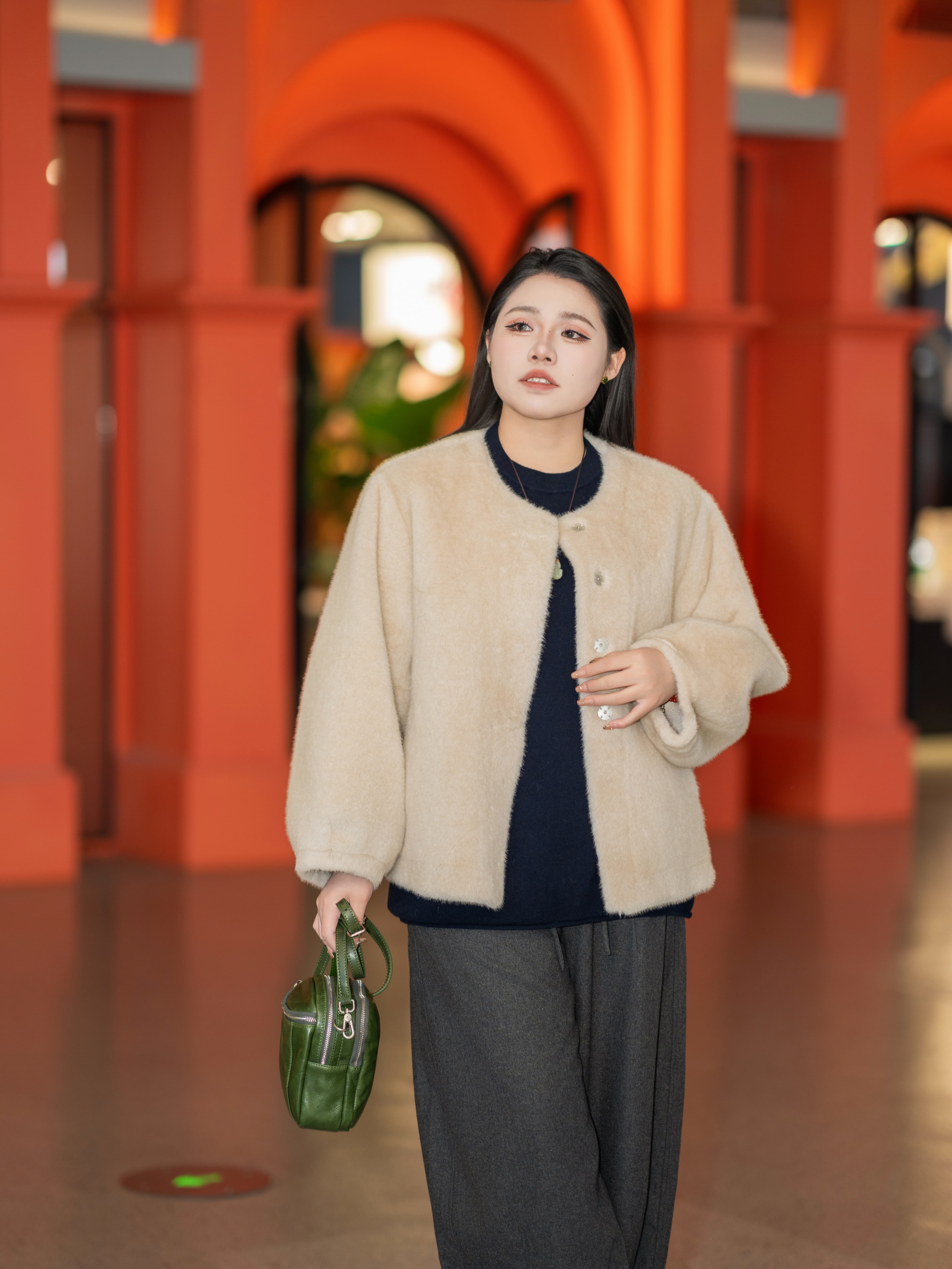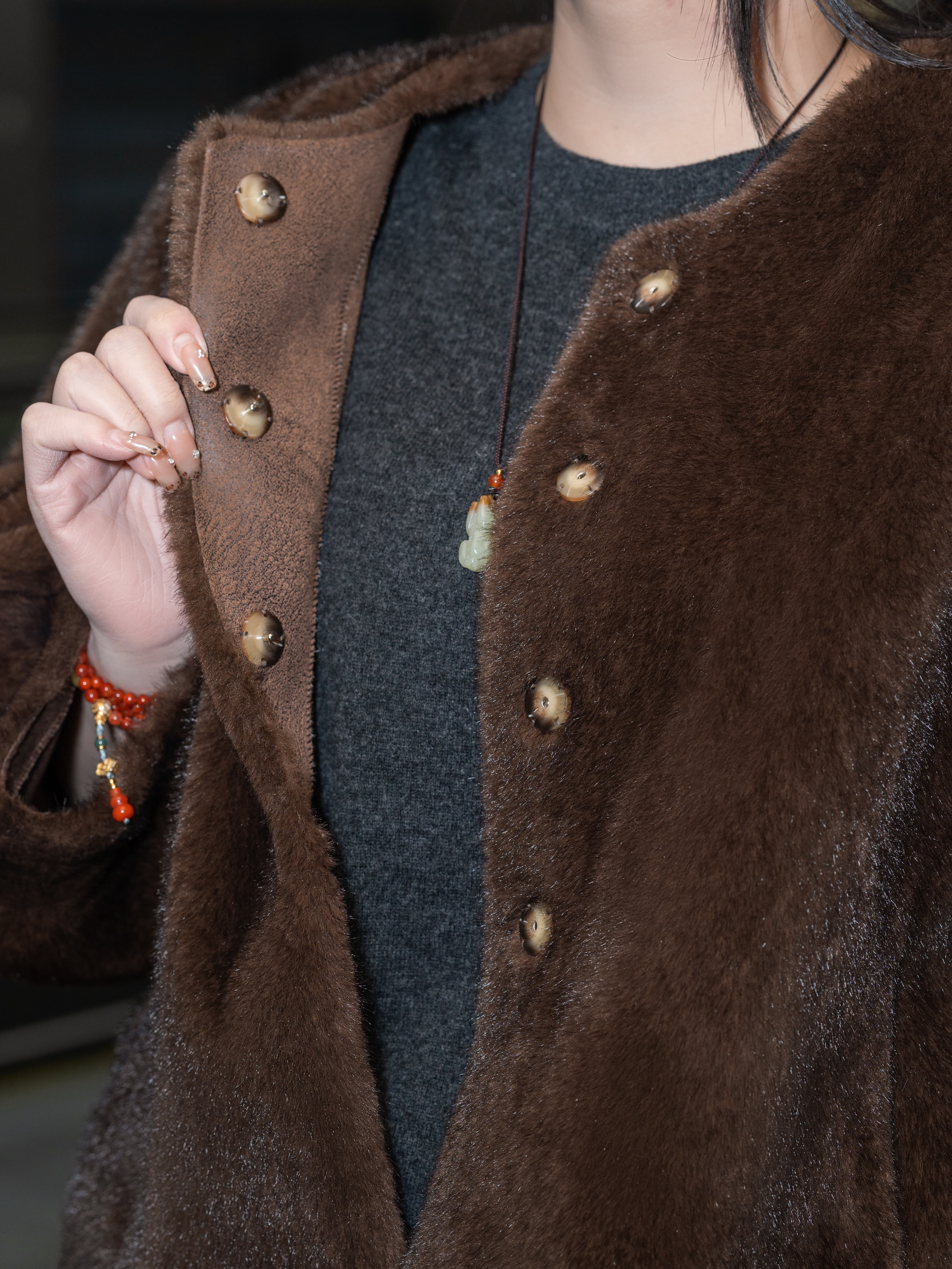 一周发货【环保皮草】【正码正拍】【不掉毛】仿貂环保皮草,冬季小母貂千金中古风~气质显瘦,环保皮草外套