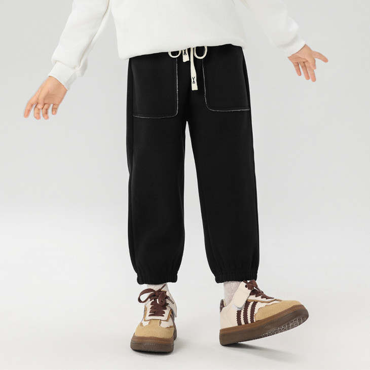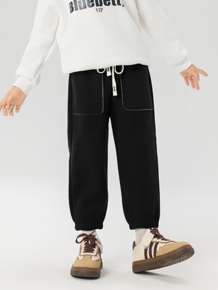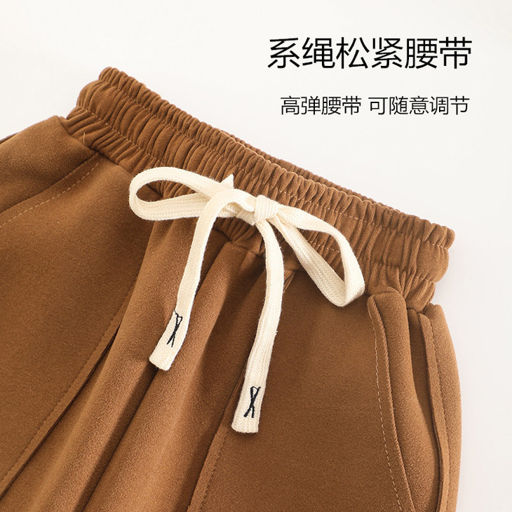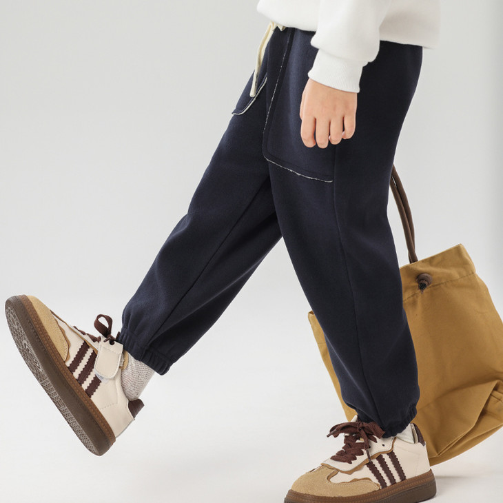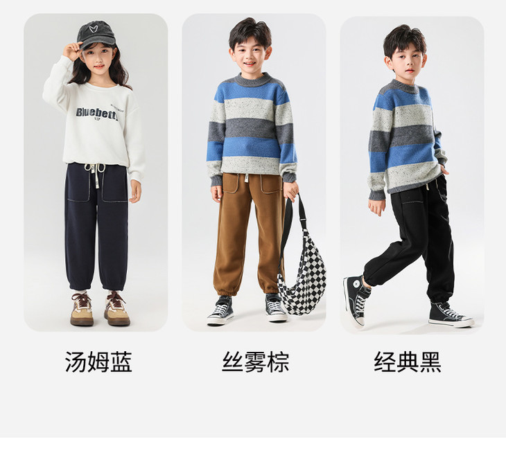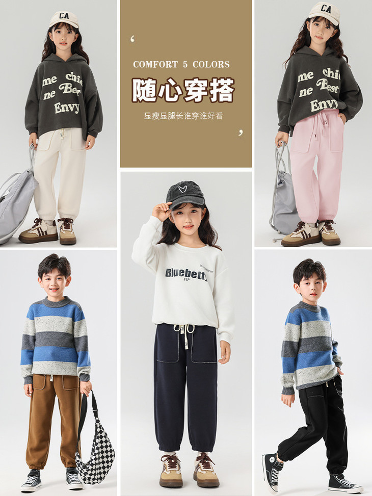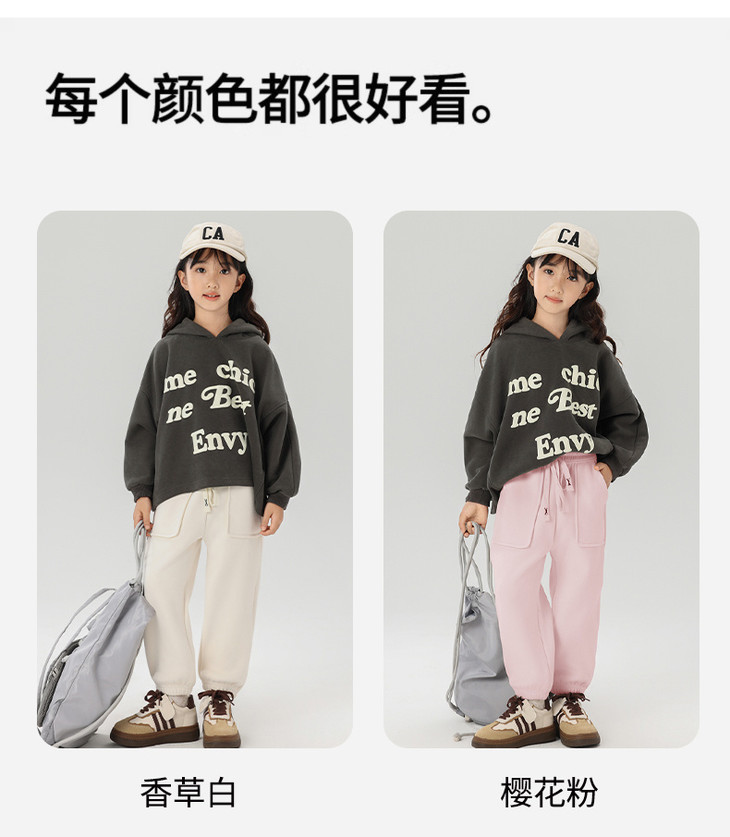 配件辅料都是按照专柜标准给你们定做的😎 内里整身都是更加舒服的超柔绒,特别保暖亲肤! 加宽弹力腰头,小朋友自主穿脱也很方便! 经典束脚卫裤版型,宽松舒适又百搭!闭眼抢啊💥