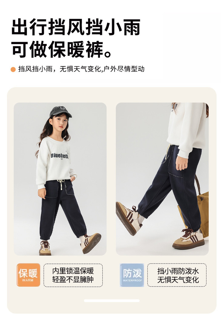 秋风瑟瑟🍂家里“小神兽们”的防风裤都备好了吗⁉️ 一穿即暖❗️舒服到爆的儿童防风裤,保暖又舒适,让娃轻松过冬🥰 🔹双面超柔绒面料,纳米三防专利黑科技面料,防风,防水,防污! 能在低温冷风天强效锁温保暖!同时它还具备单向导湿效果,上身不捂不闷,超透气~