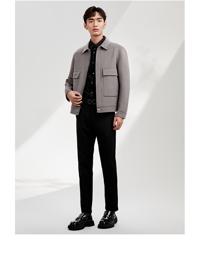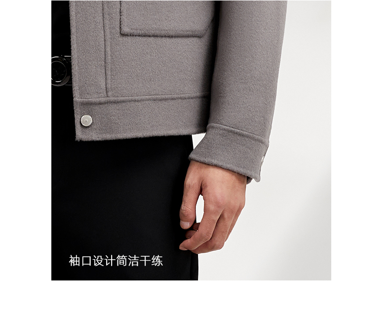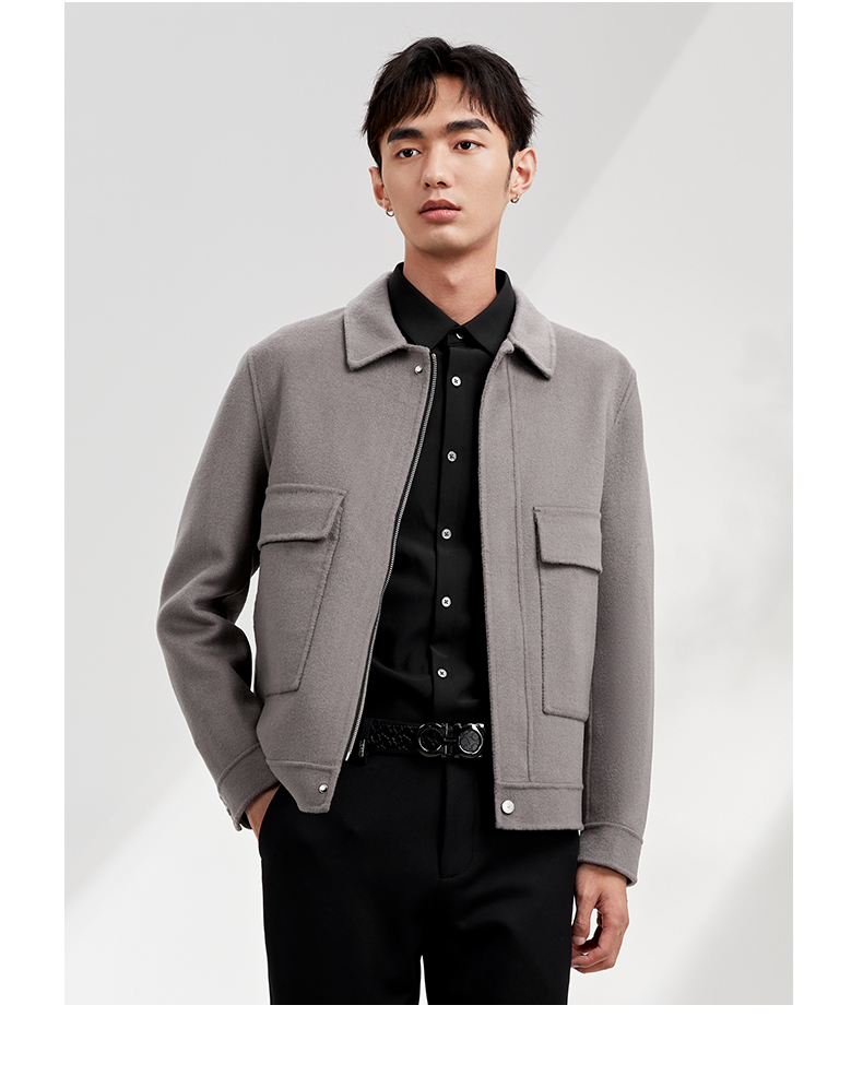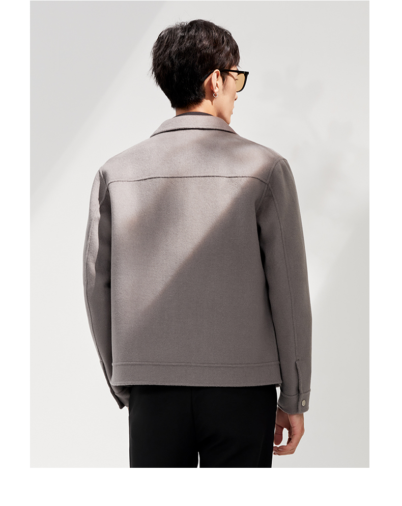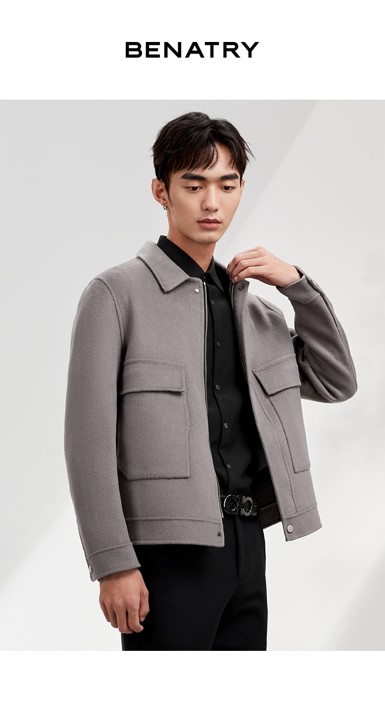 贝纳川男士工装夹克翻领双面呢羊毛短款大衣呢外套ECY300016138