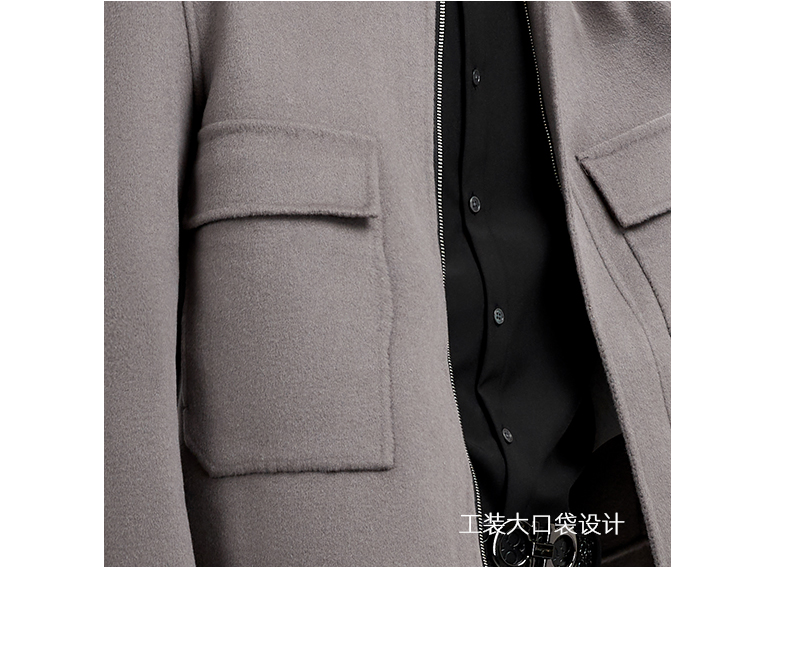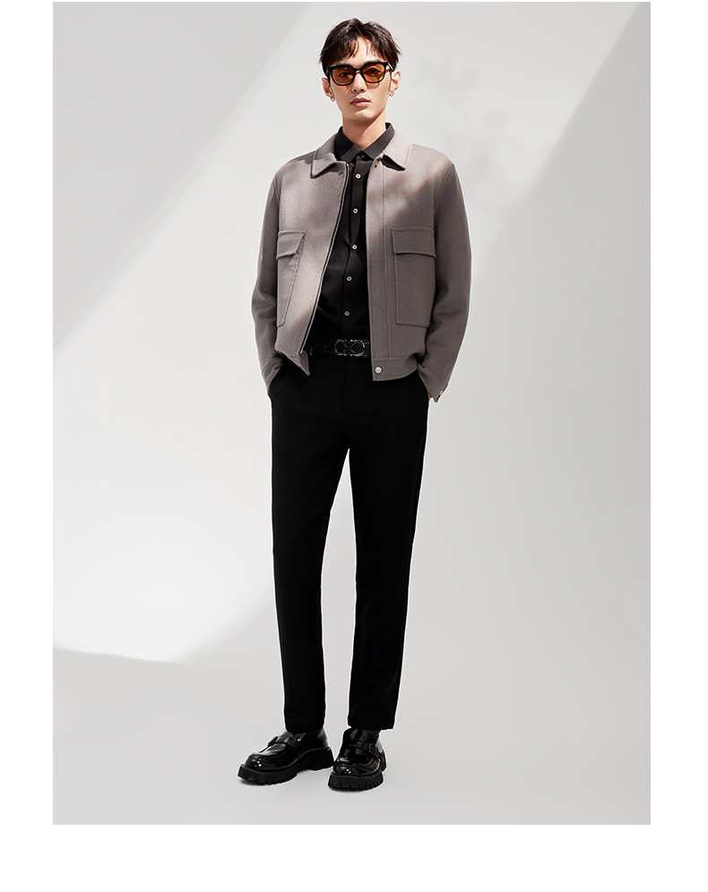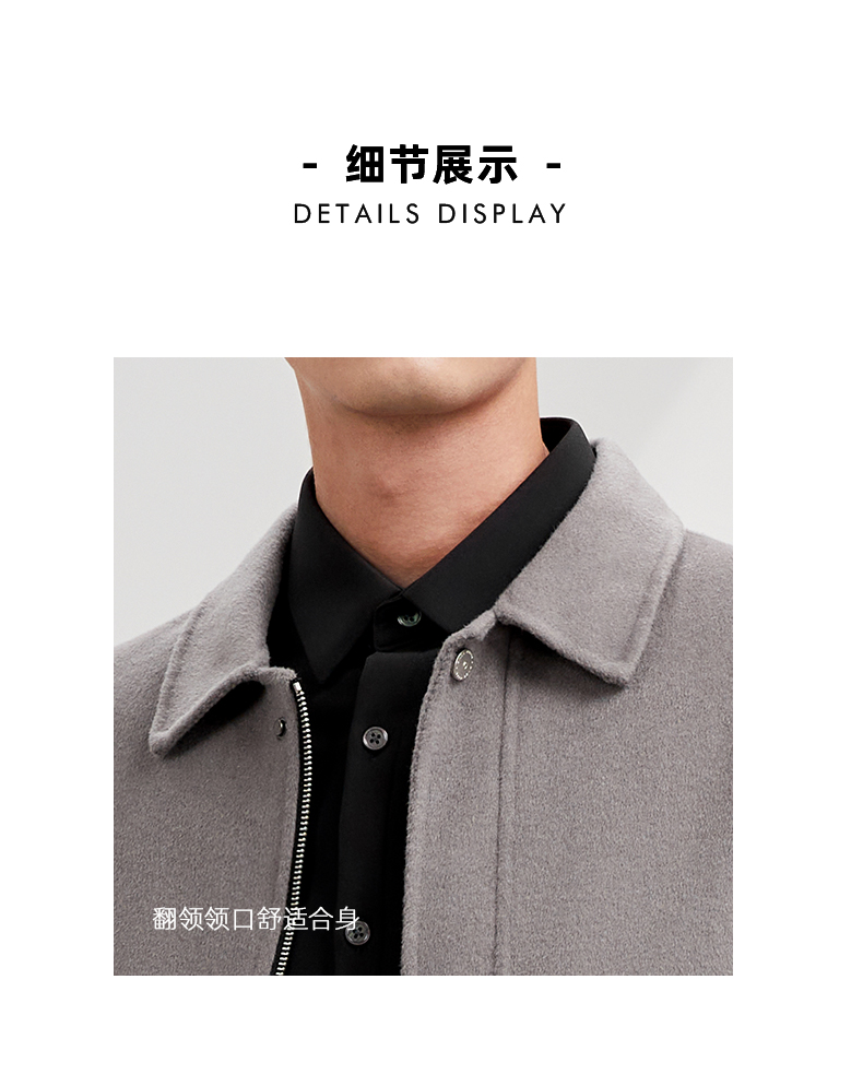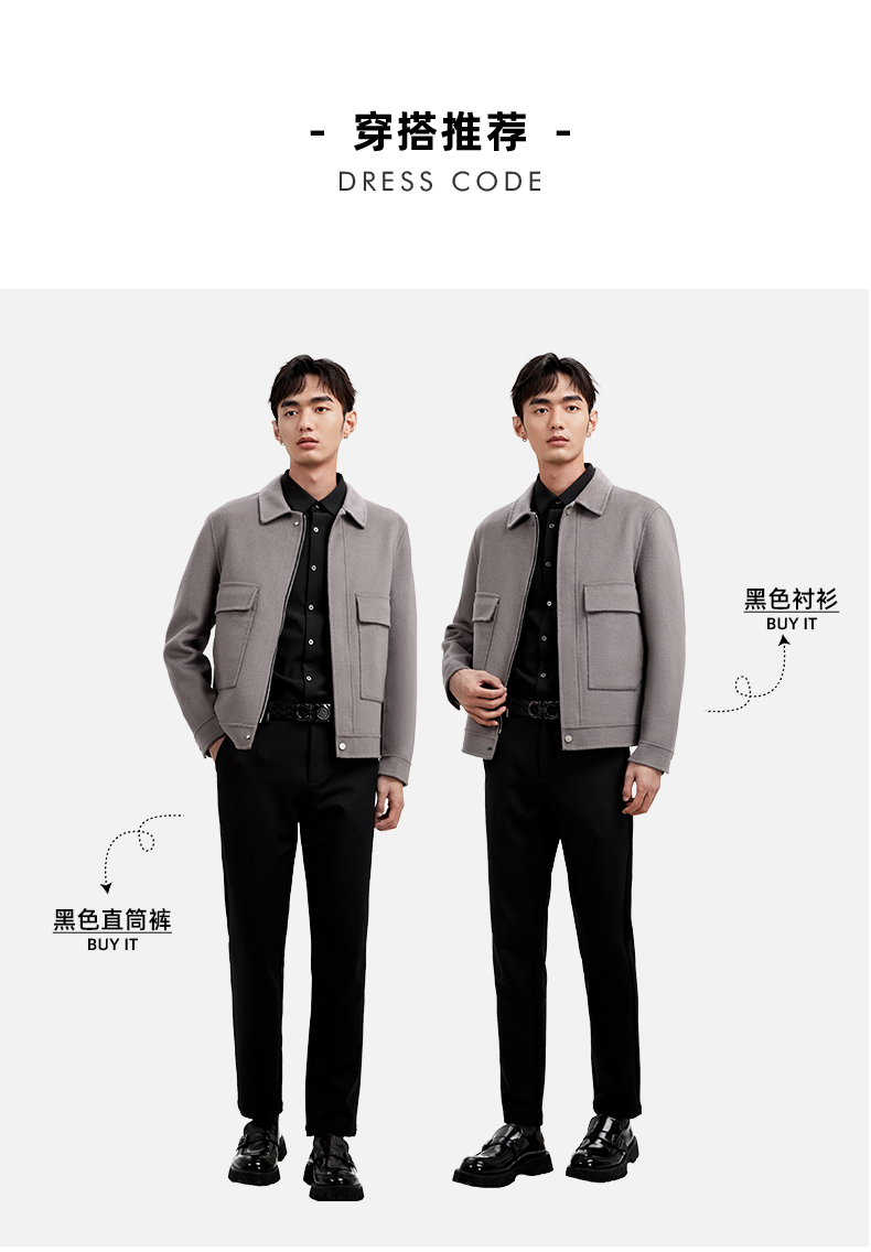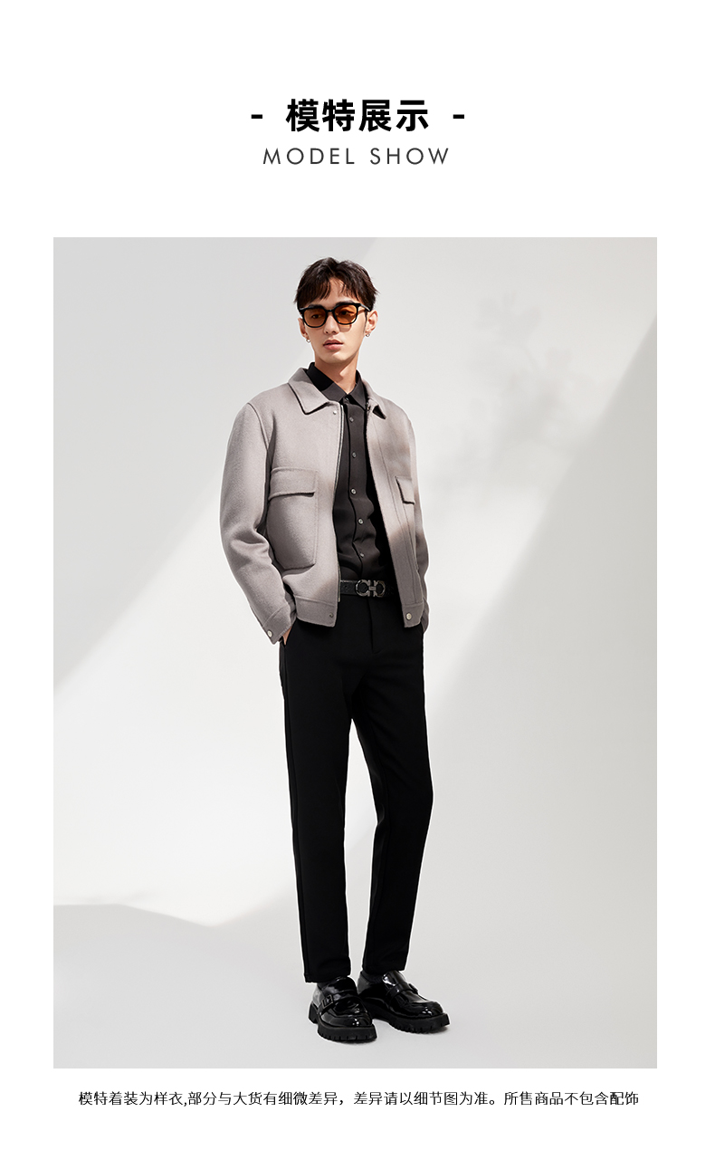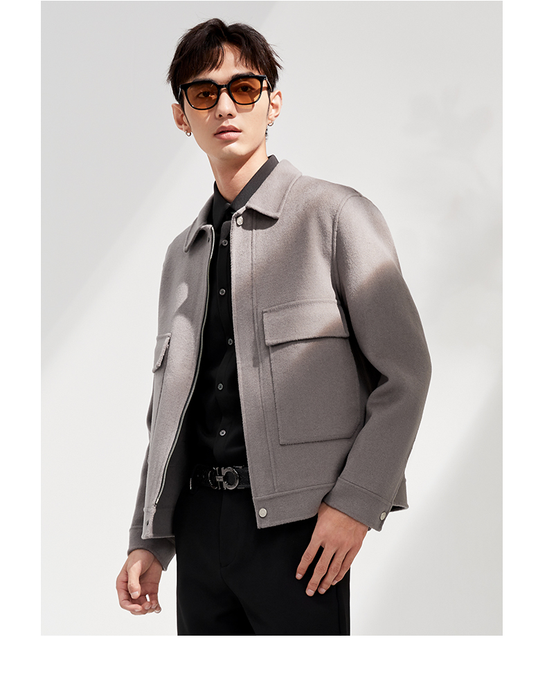 贝纳川男士工装夹克翻领双面呢羊毛短款大衣呢外套ECY300016138