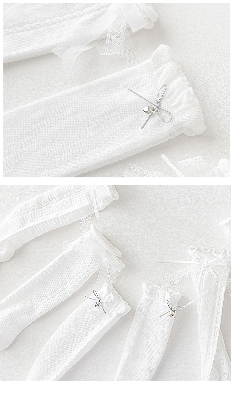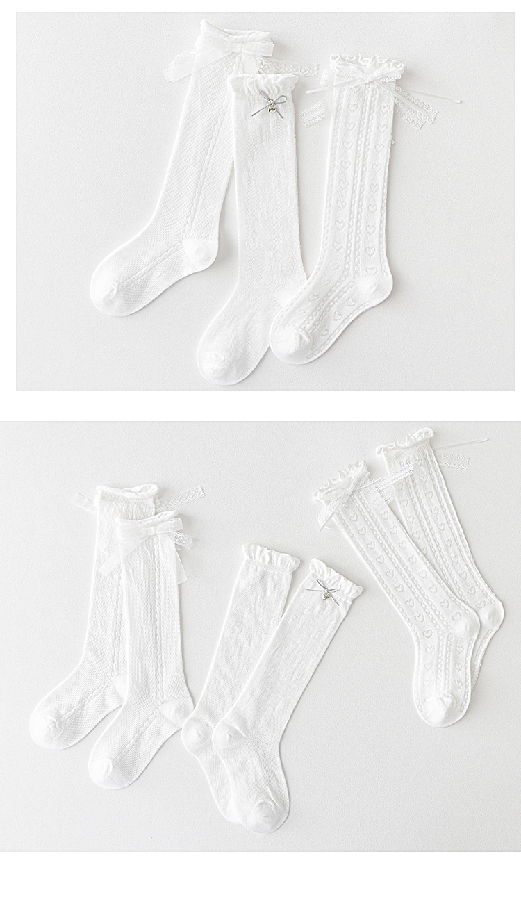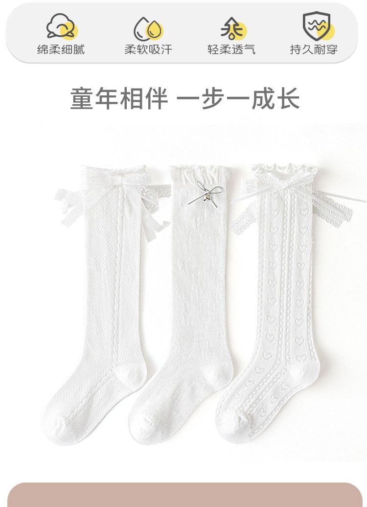 pureshare蓬纱馆 女童袜子白色蝴蝶结公主袜儿童夏季薄款小腿长袜