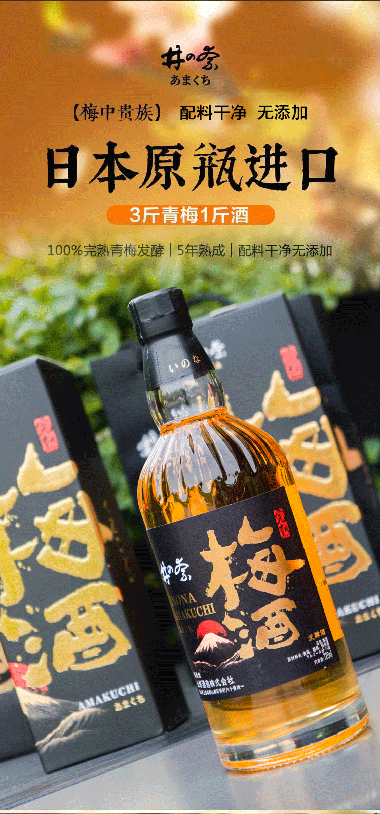 【日本原装进口】井奈·完熟梅酒 11%vol 青梅酒 720ml/瓶 两瓶配礼袋