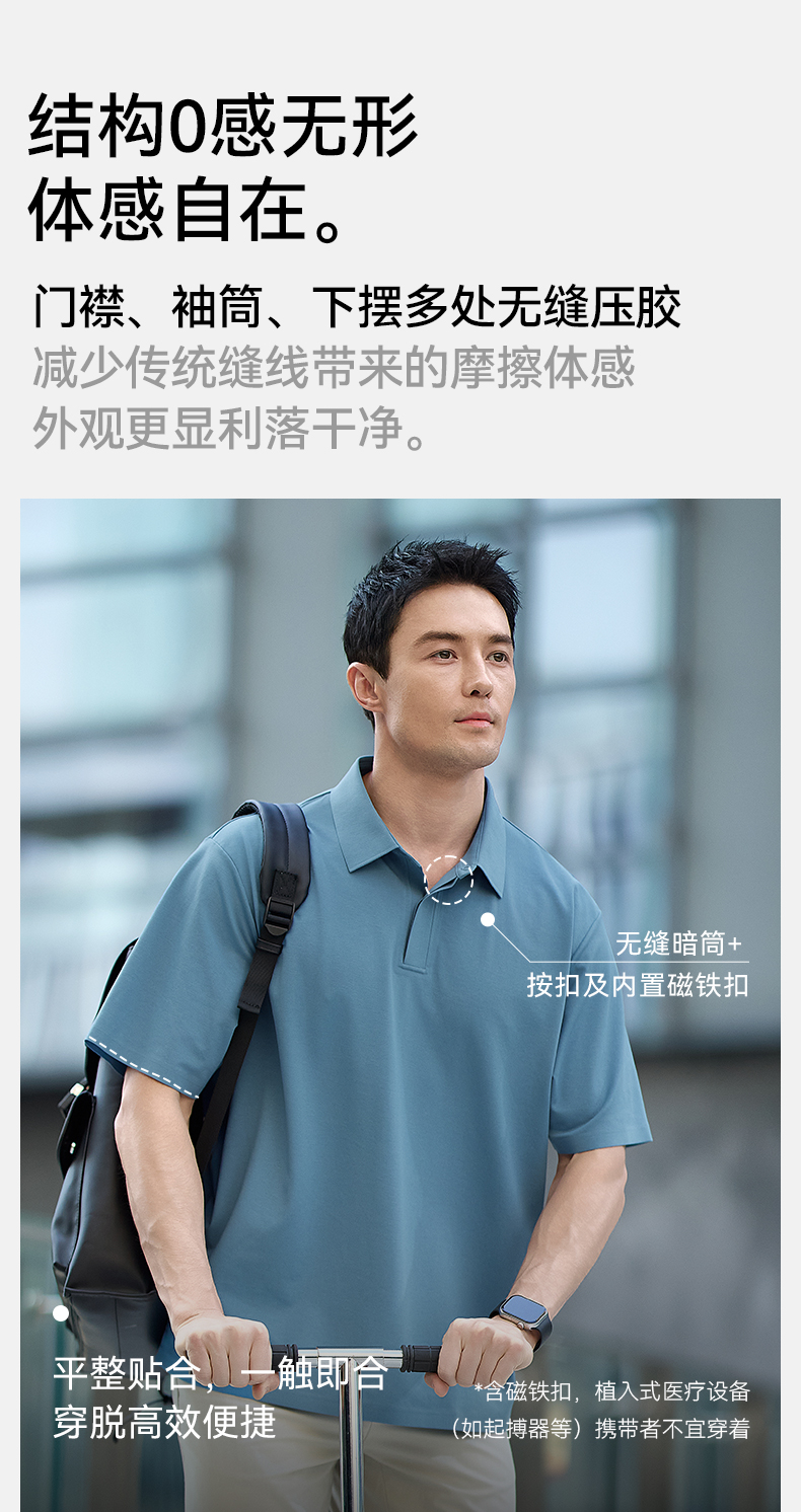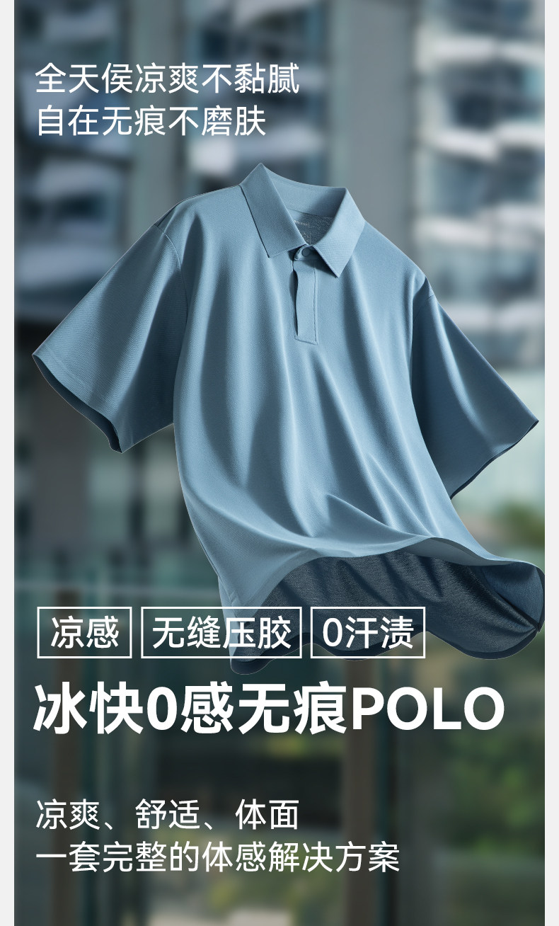 【汗无痕】十如仕冰快凉感高弹无缝暗筒polo衫P11-04