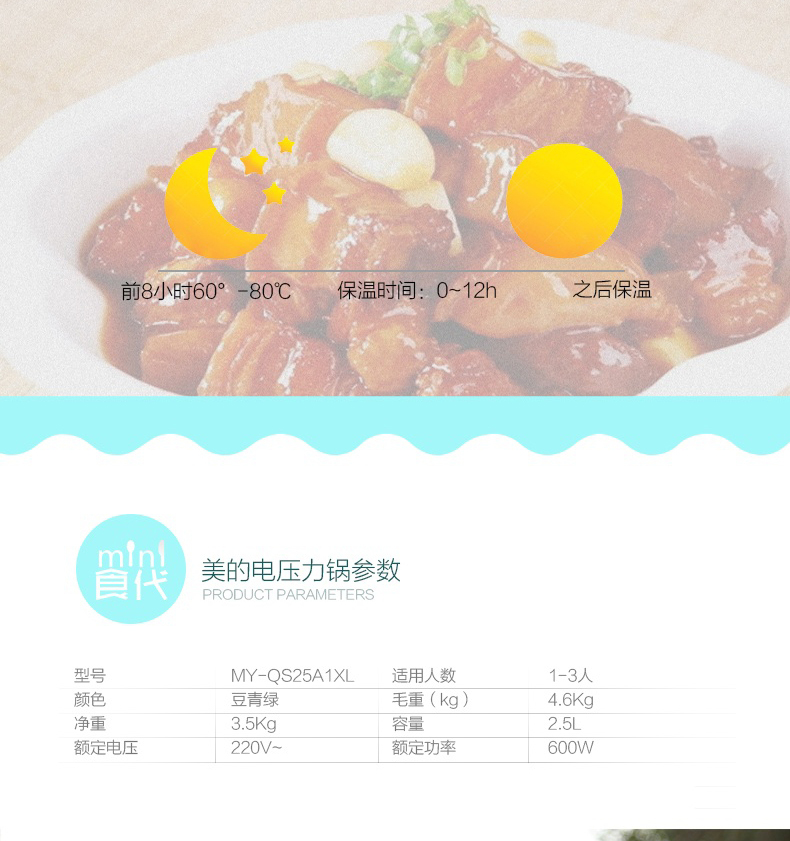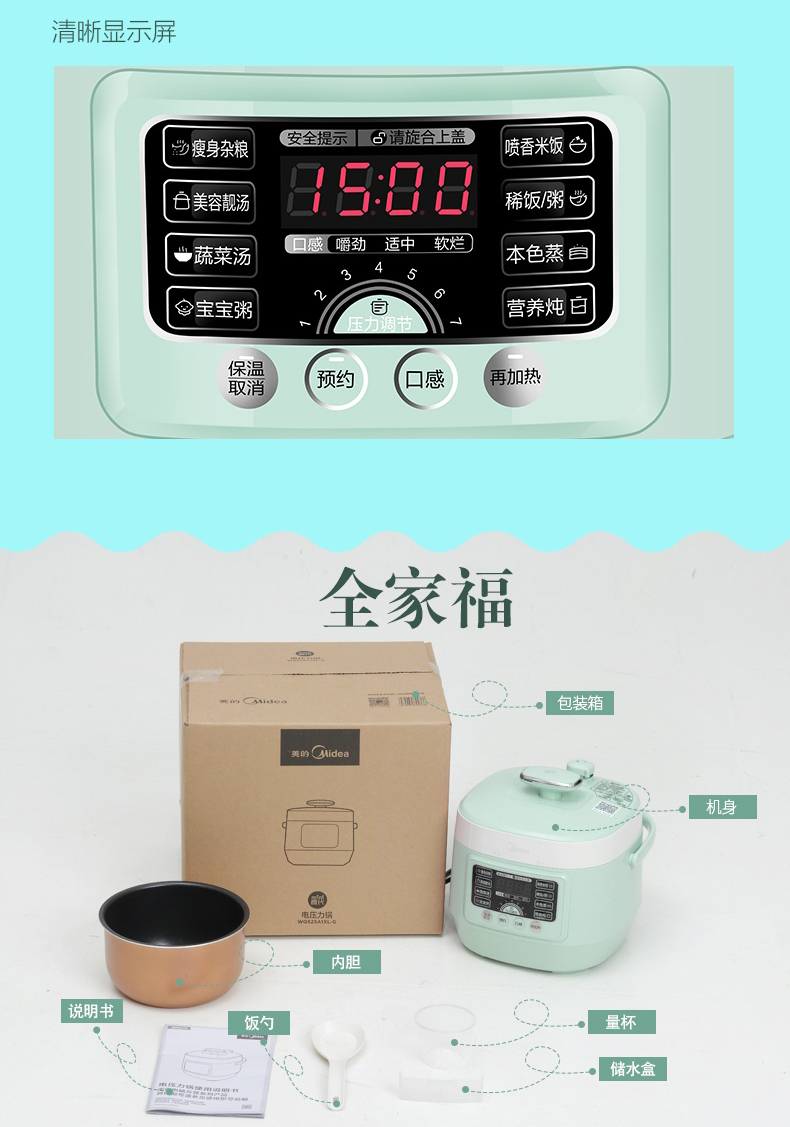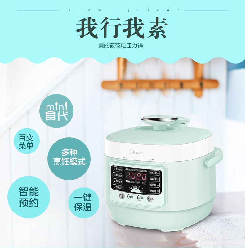 美的(Midea)电压力锅(509984) MY-QS25A1XL 2.5L容量单胆 1-2人 百变菜单 底盘加热 预约功能 压力锅