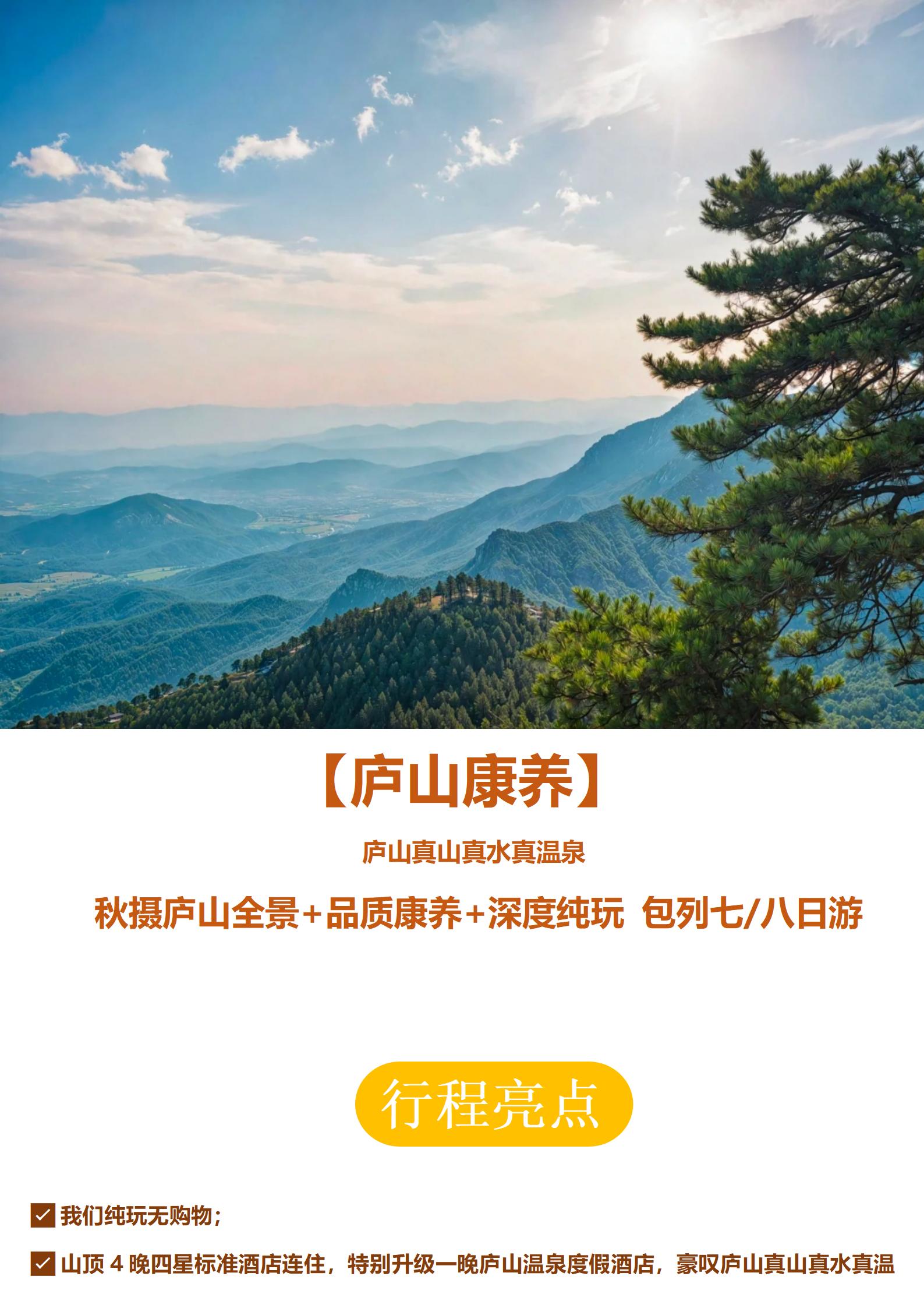 【庐山康养】秋摄庐山全景+品质康养+深度纯玩 包列七/八日游