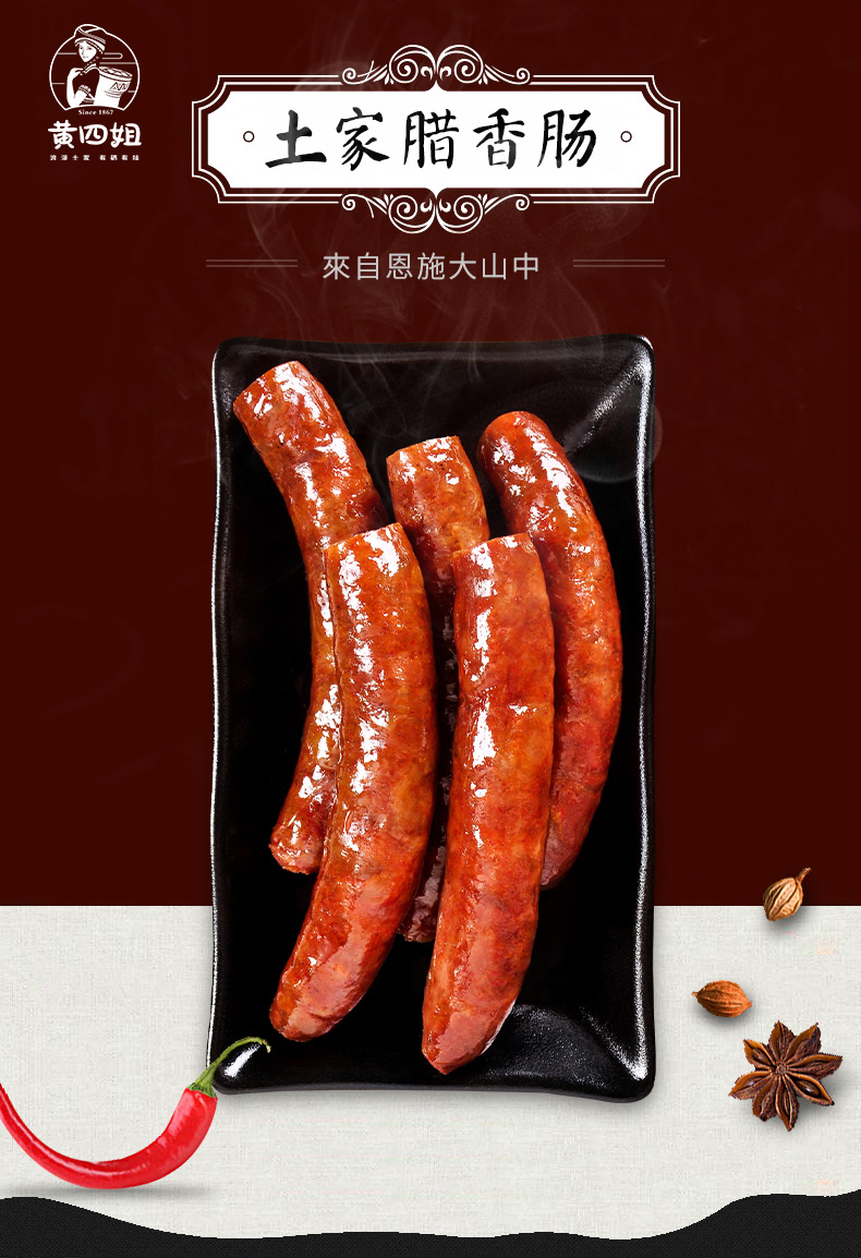 【严选】恩施黄四姐 精制腊香肠500g/袋 (厂家直发)