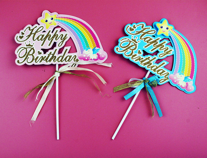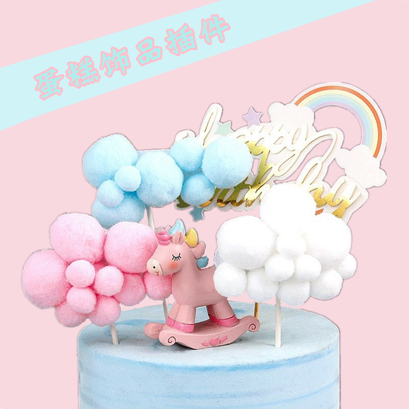 云朵彩虹热气球蛋糕饰品插件 白云彩虹星星月亮竹签插件 蛋糕装饰插件