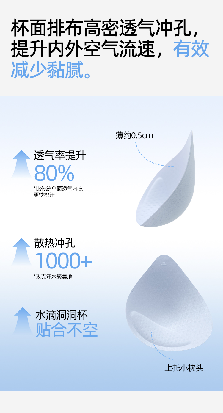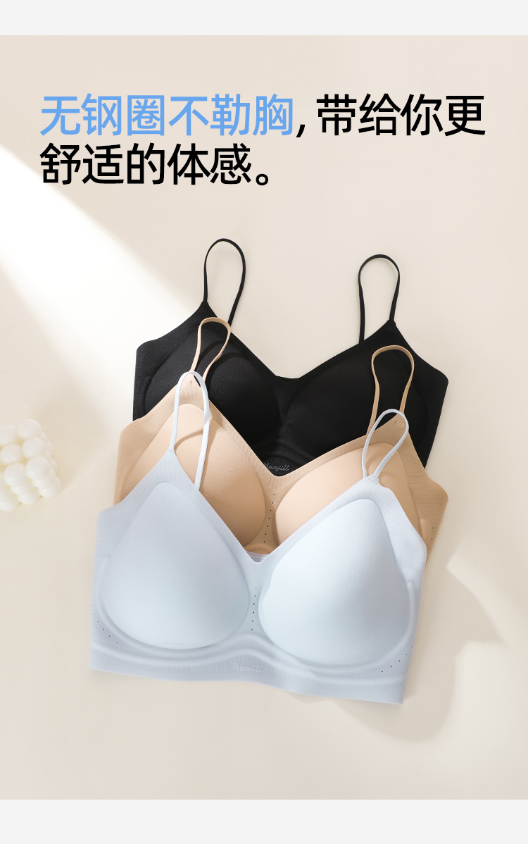 熳洁儿 凉感舒适无痕内衣超薄裸感透气背心式双面洞洞水滴杯细肩带26261515