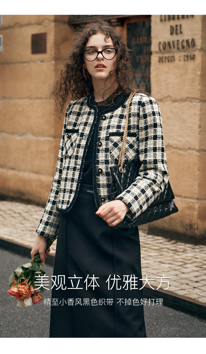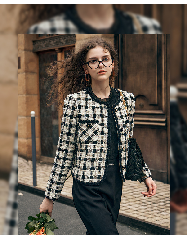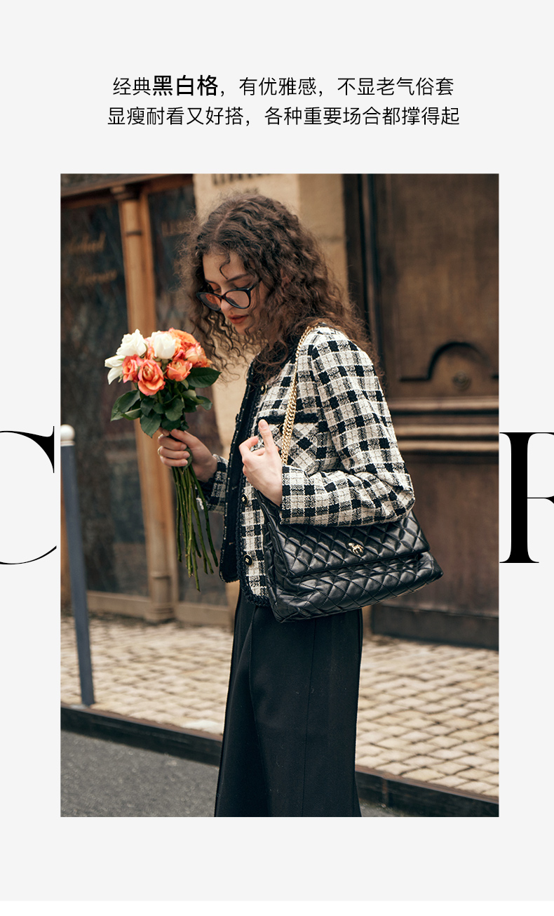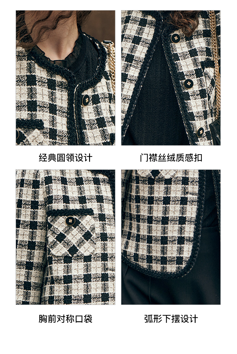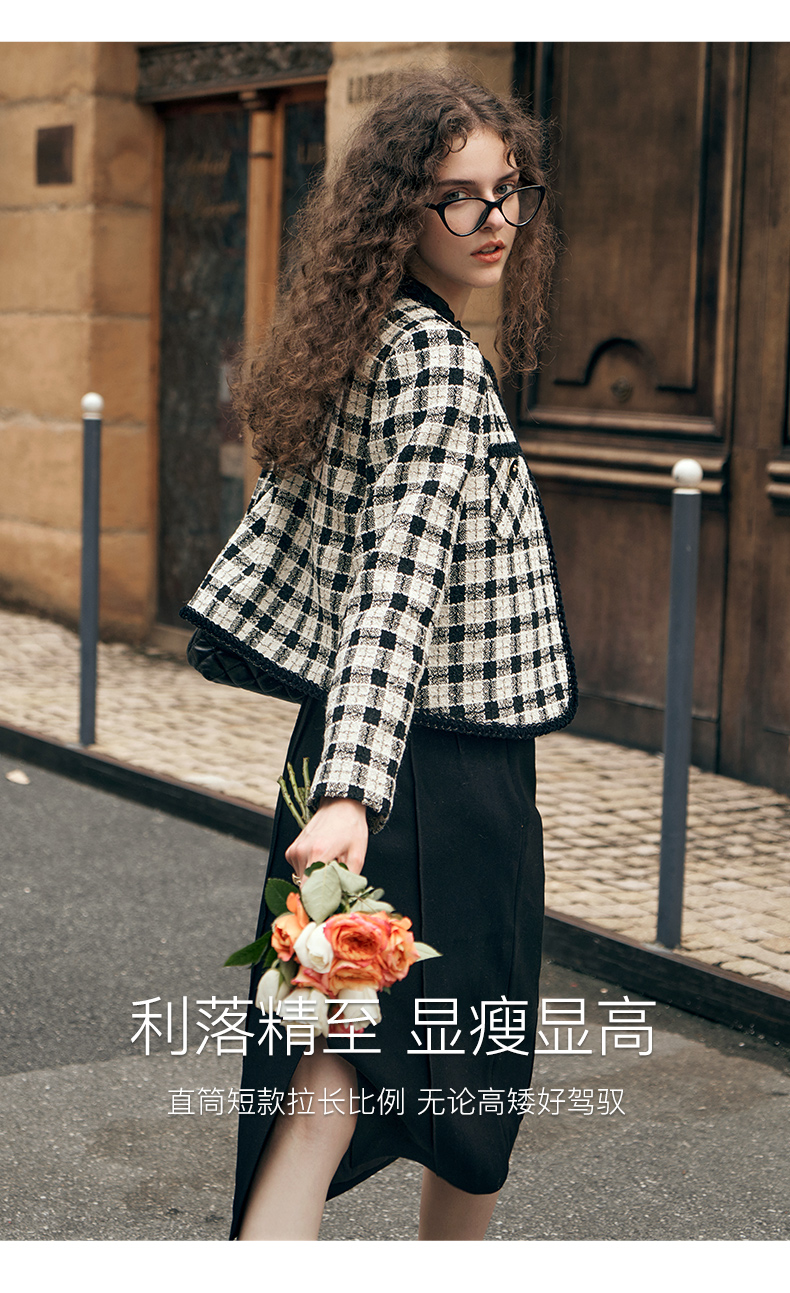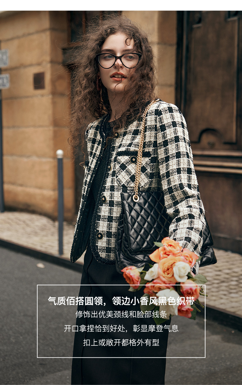 OLrain欧芮儿黑白格小香风短外套女秋装2023新款气质时尚减龄上衣