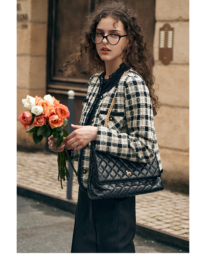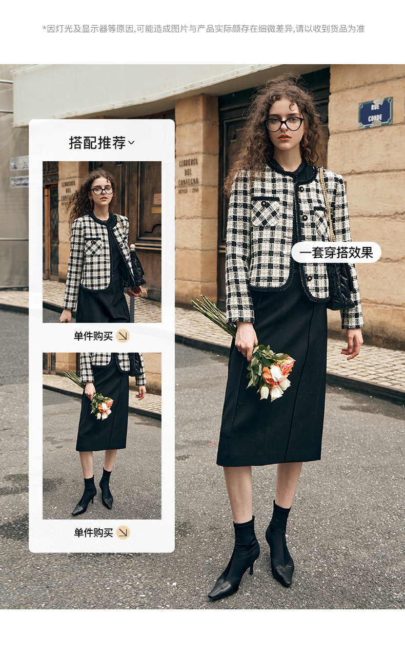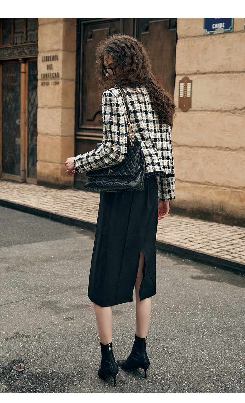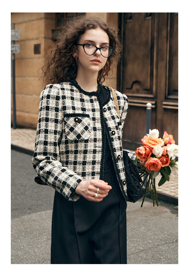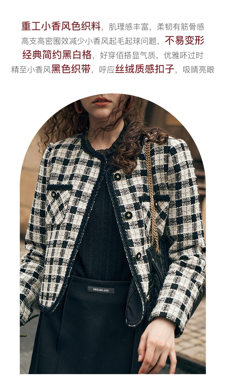 OLrain欧芮儿黑白格小香风短外套女秋装2023新款气质时尚减龄上衣