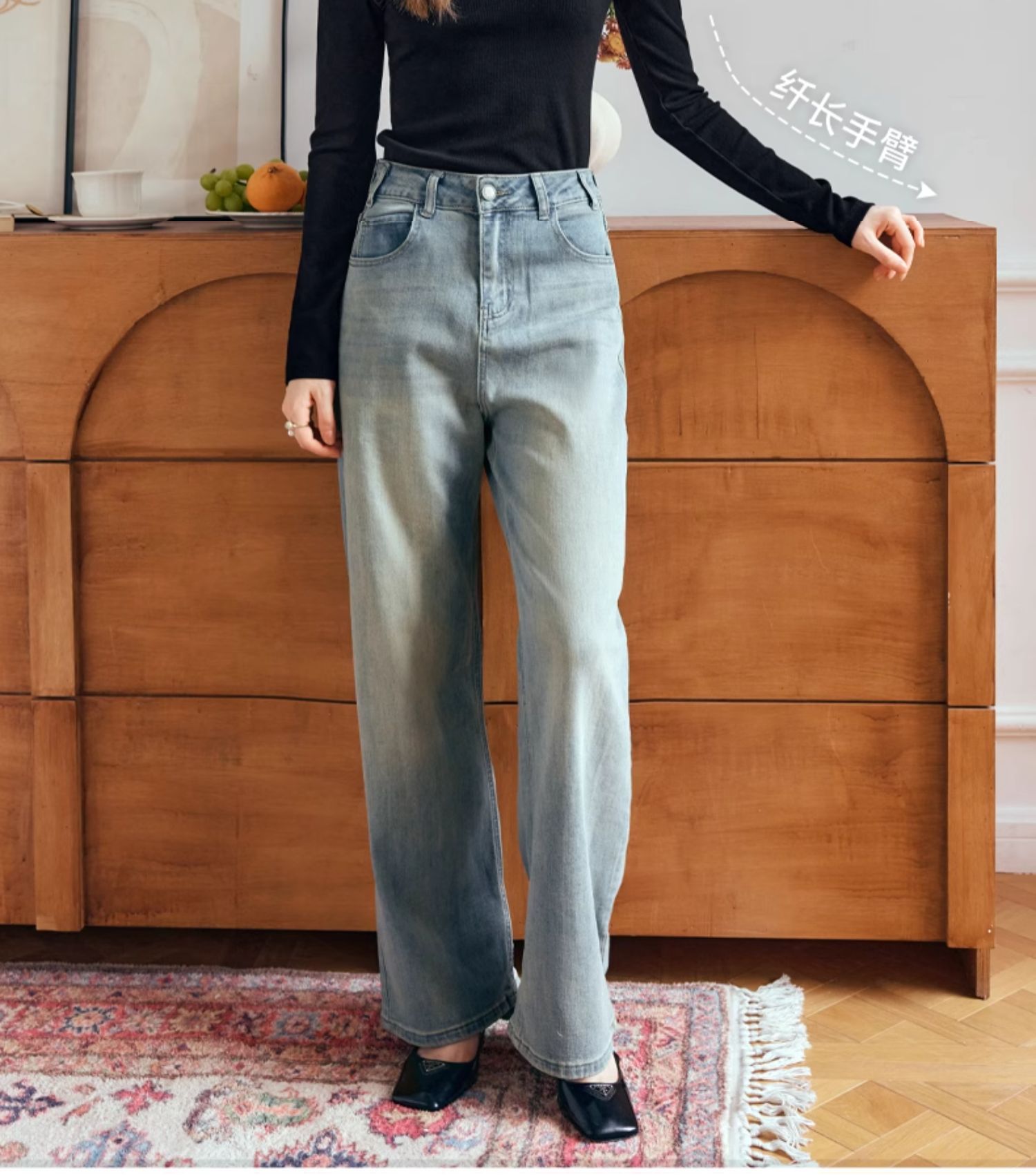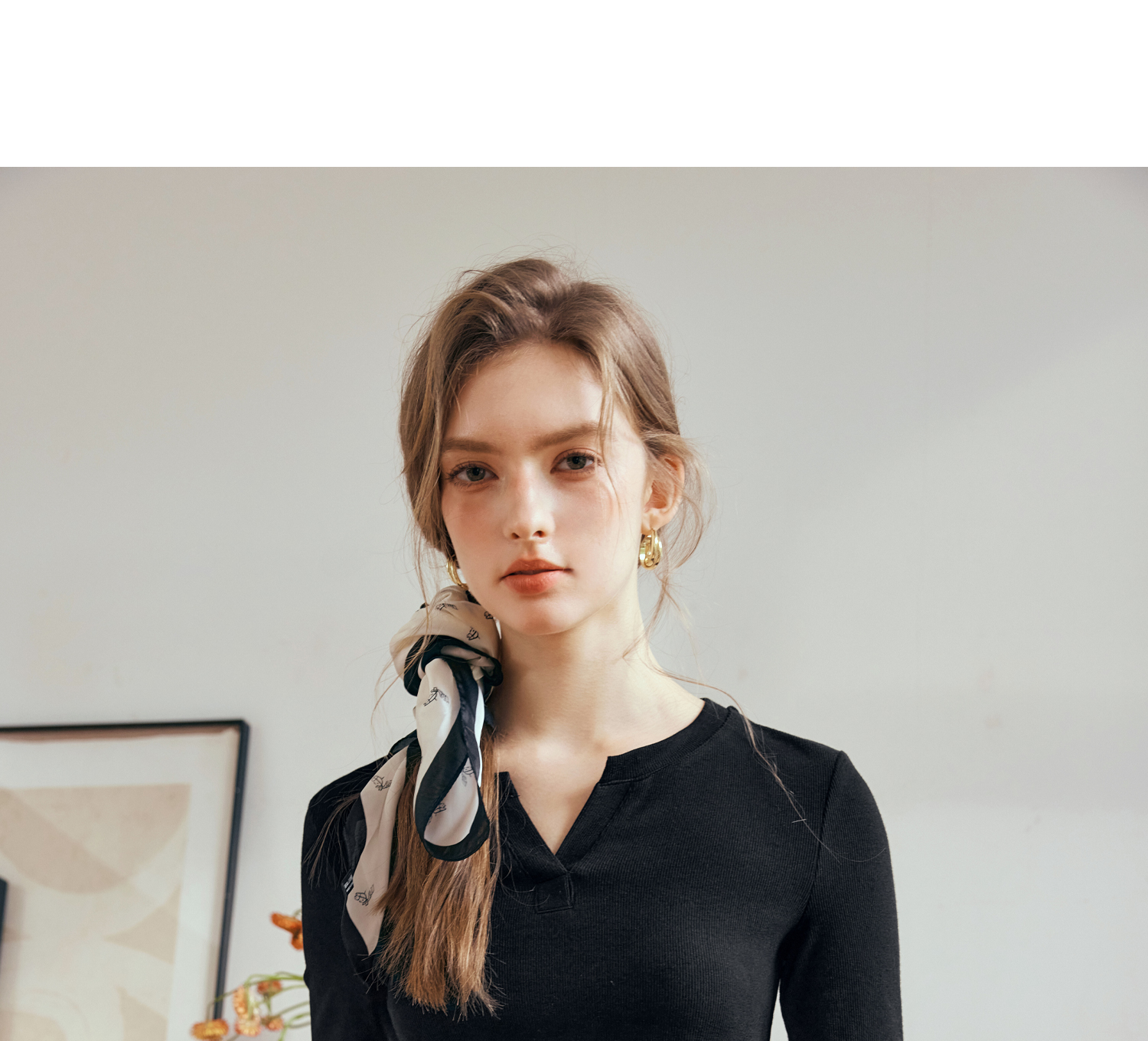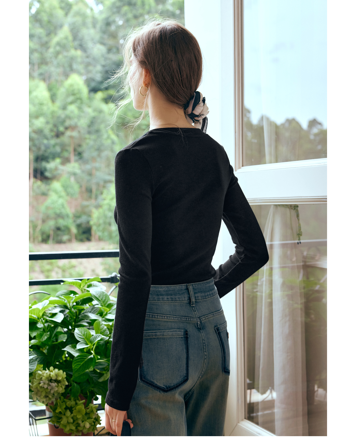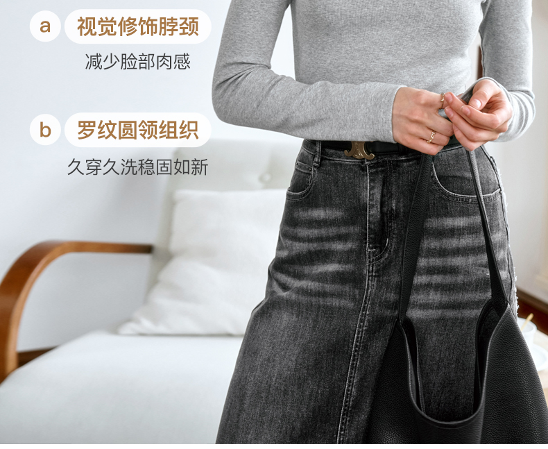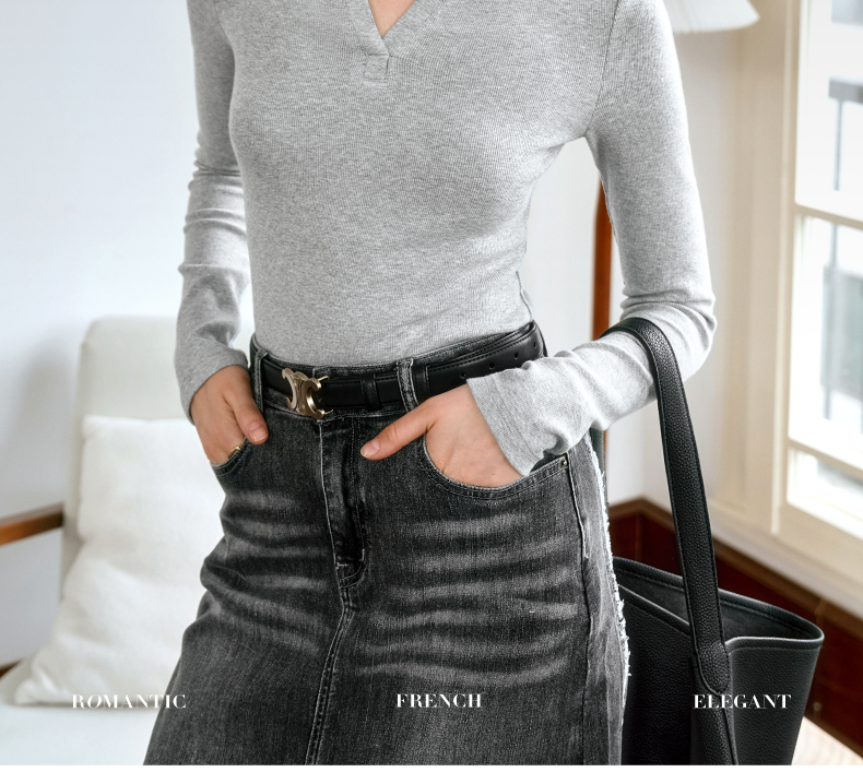 OLrain欧芮儿法式花灰色圆V领T恤女早秋2024新款简约长袖针织上衣