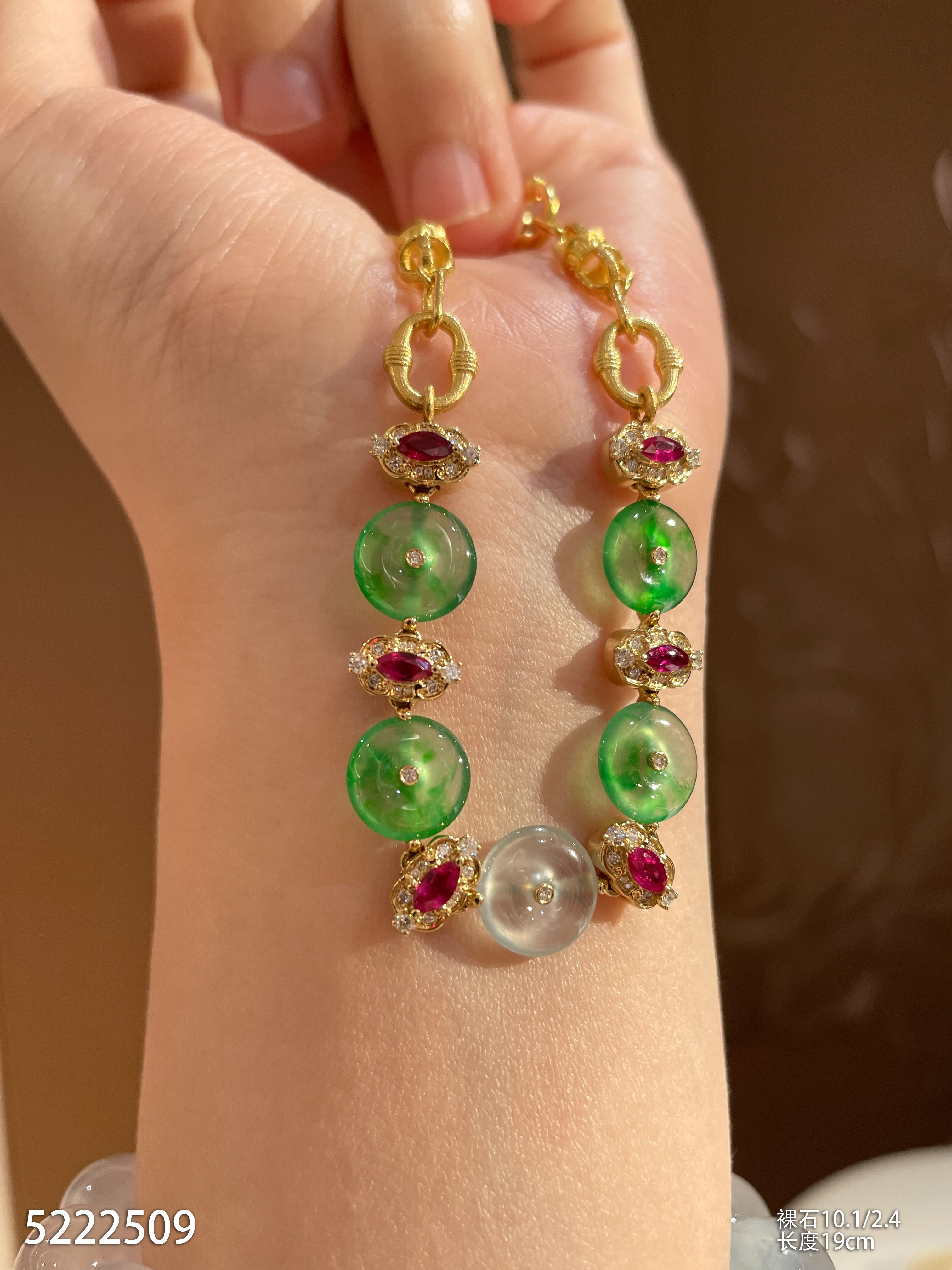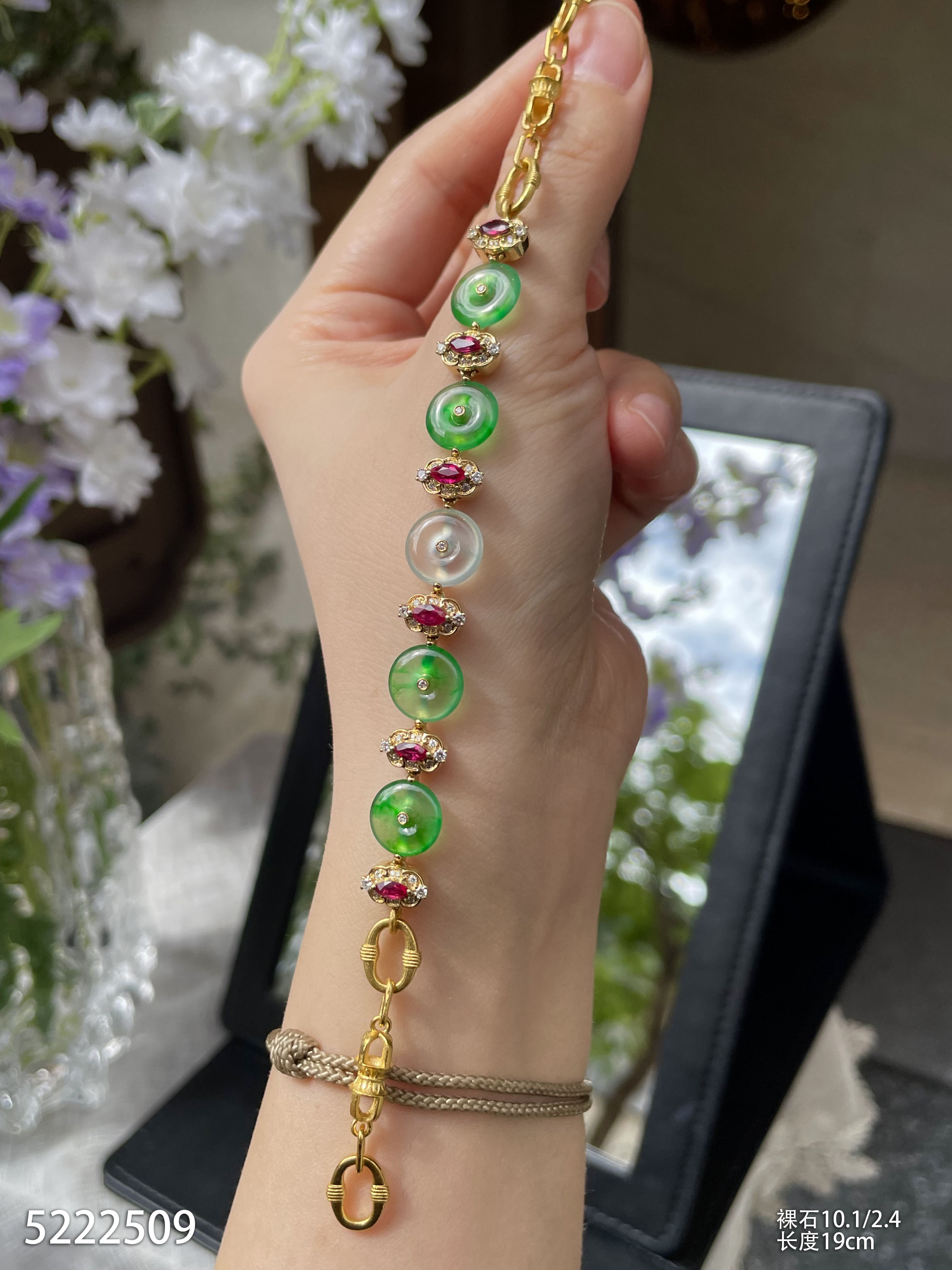 玻璃种扣子黄金手链【5222509】具体价格微信咨询