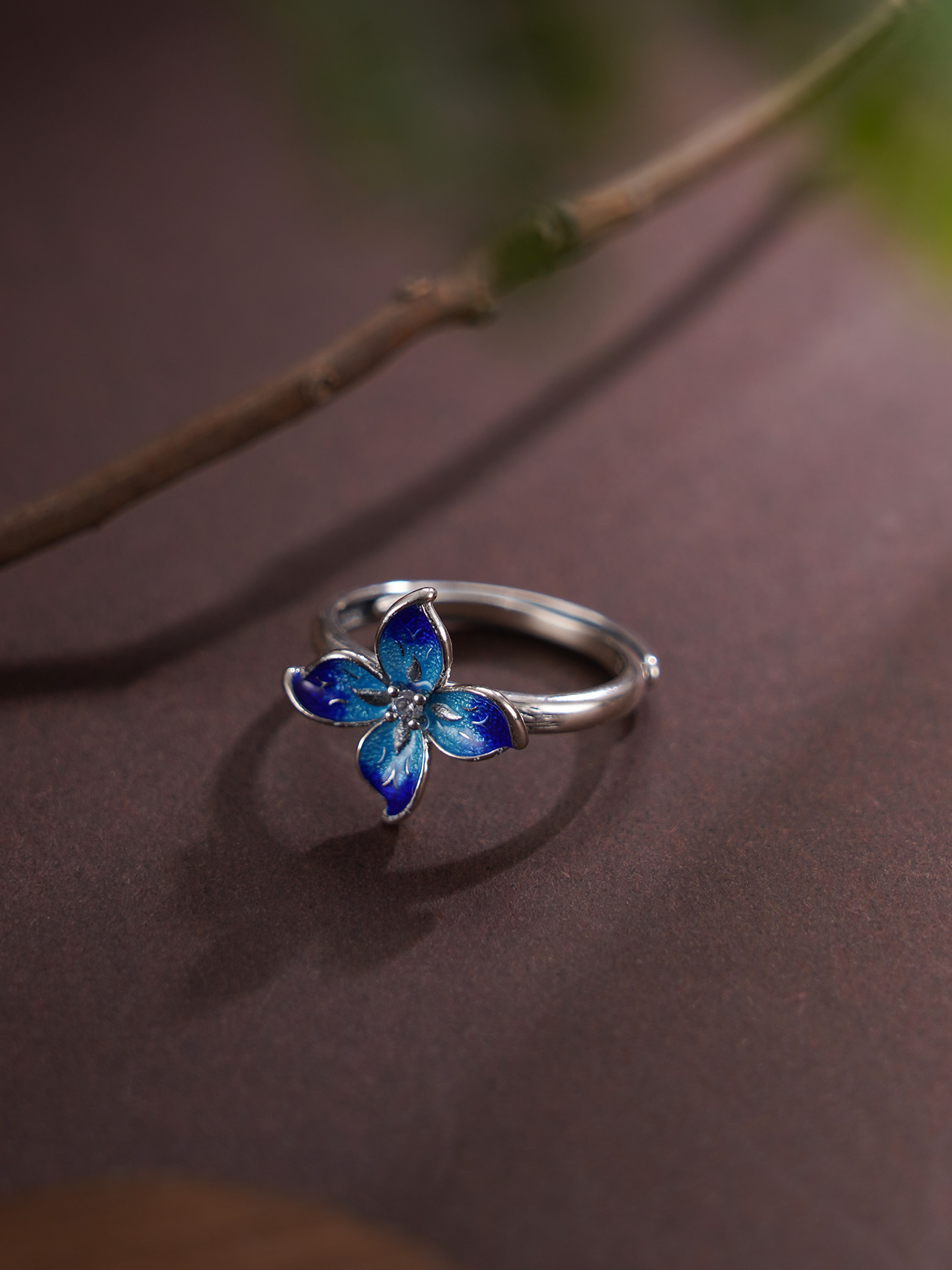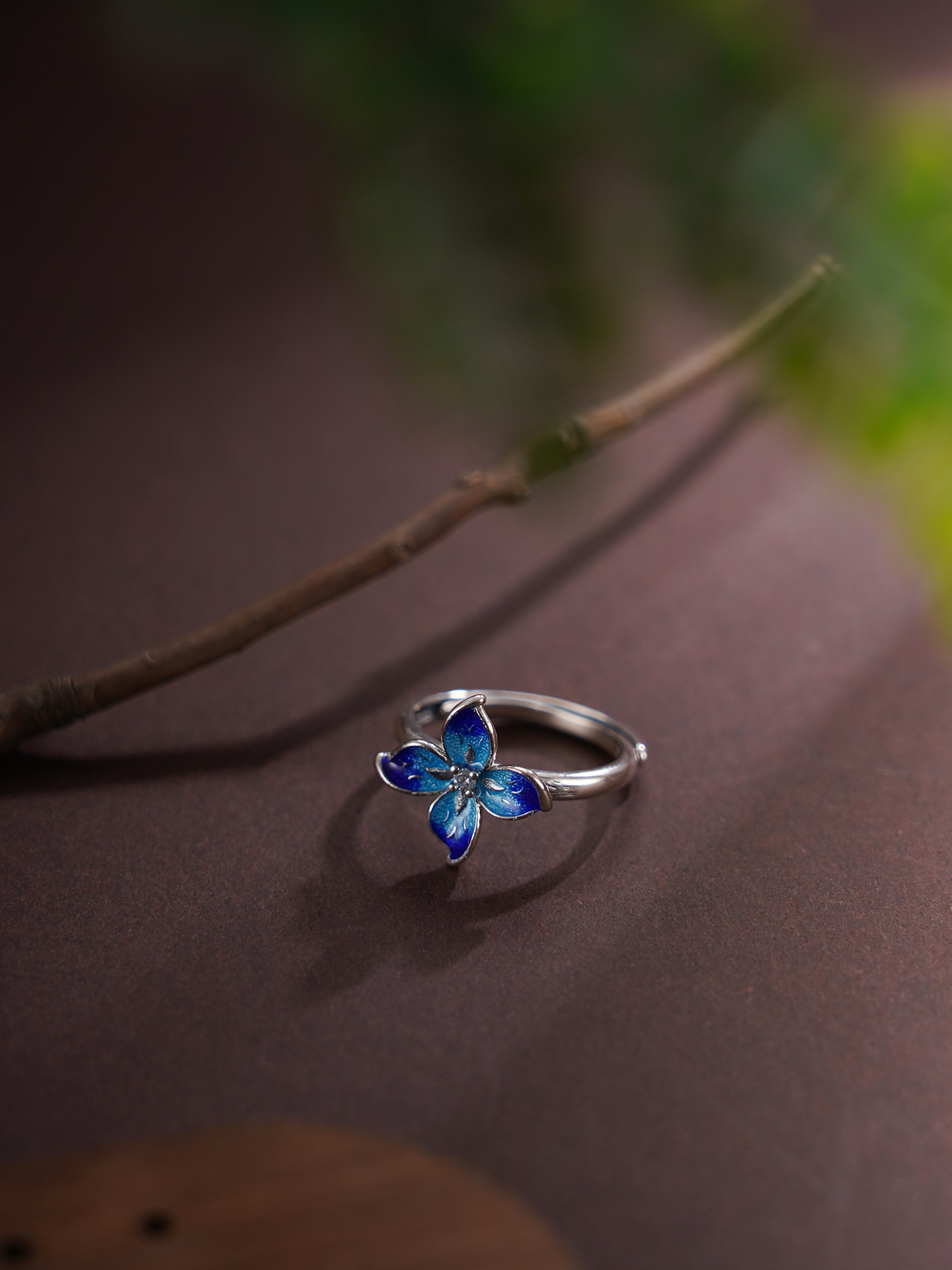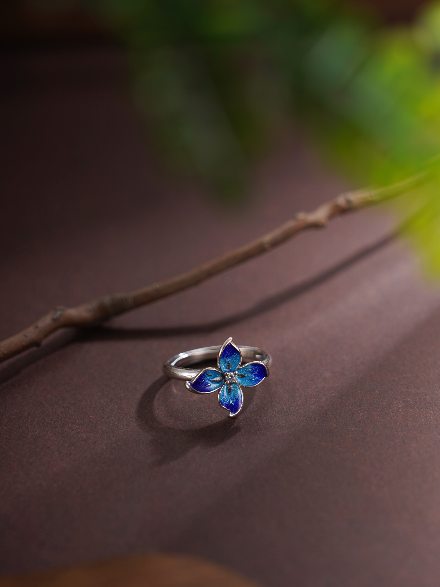 【寓意】:纯银花朵戒指,辅以珐琅工艺着色渲染