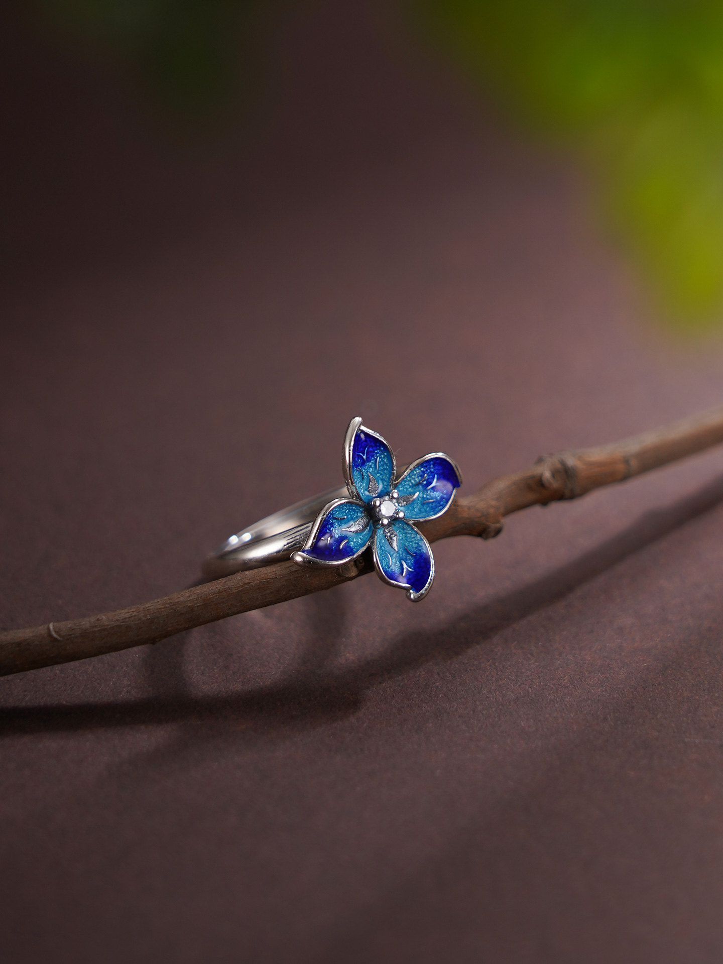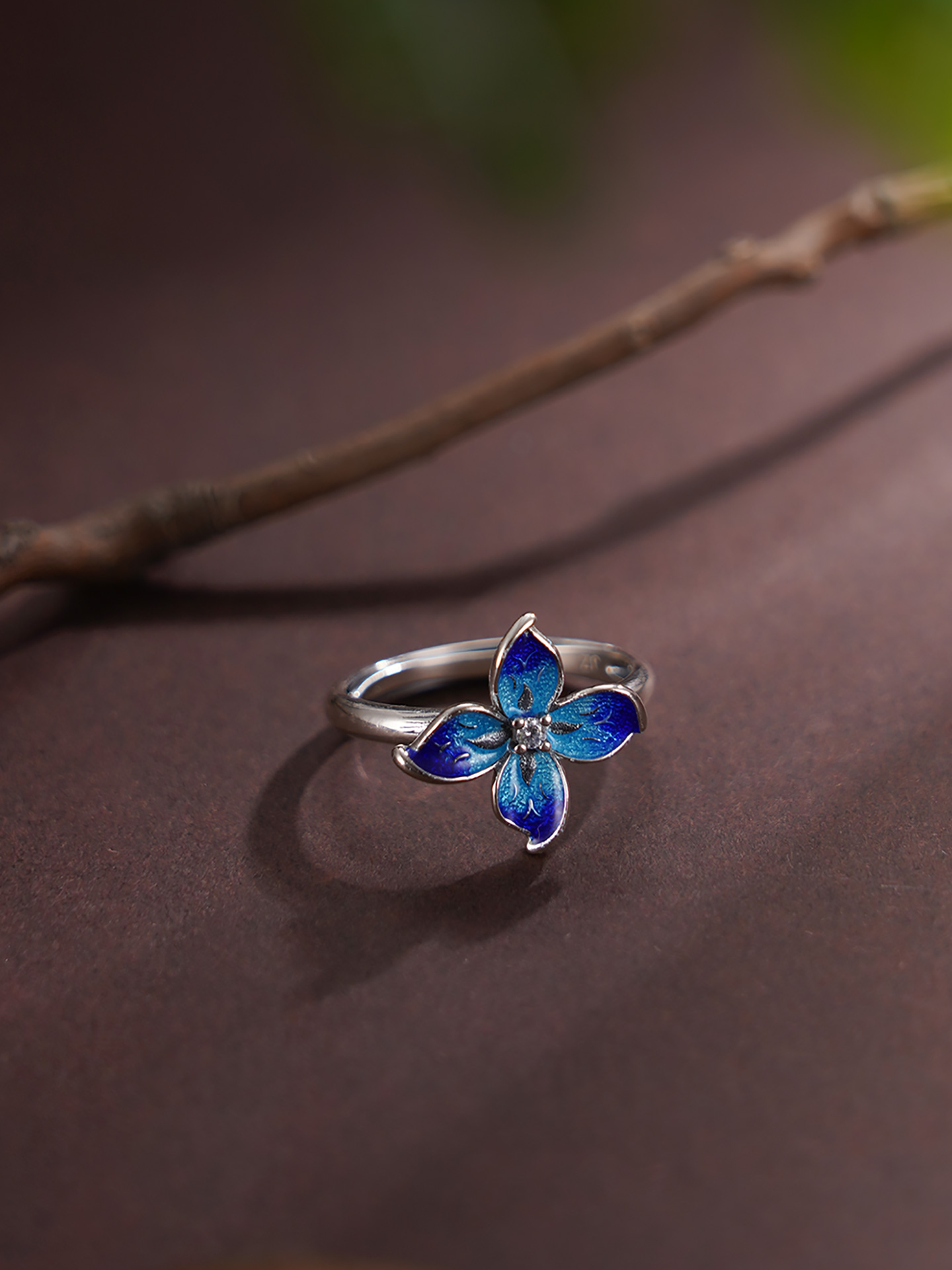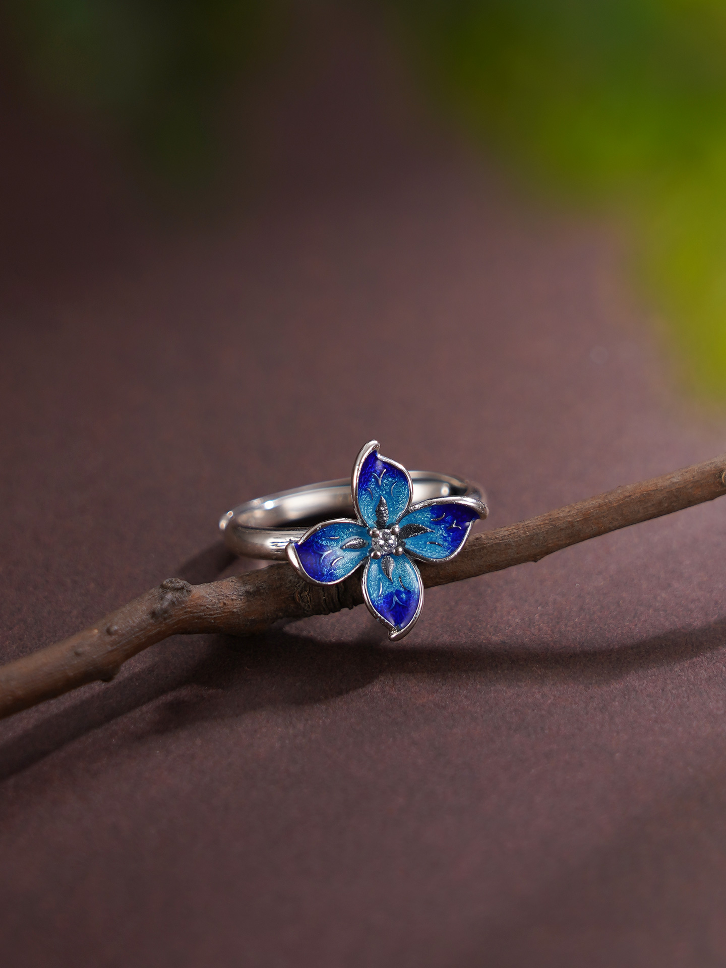 【寓意】:纯银花朵戒指,辅以珐琅工艺着色渲染